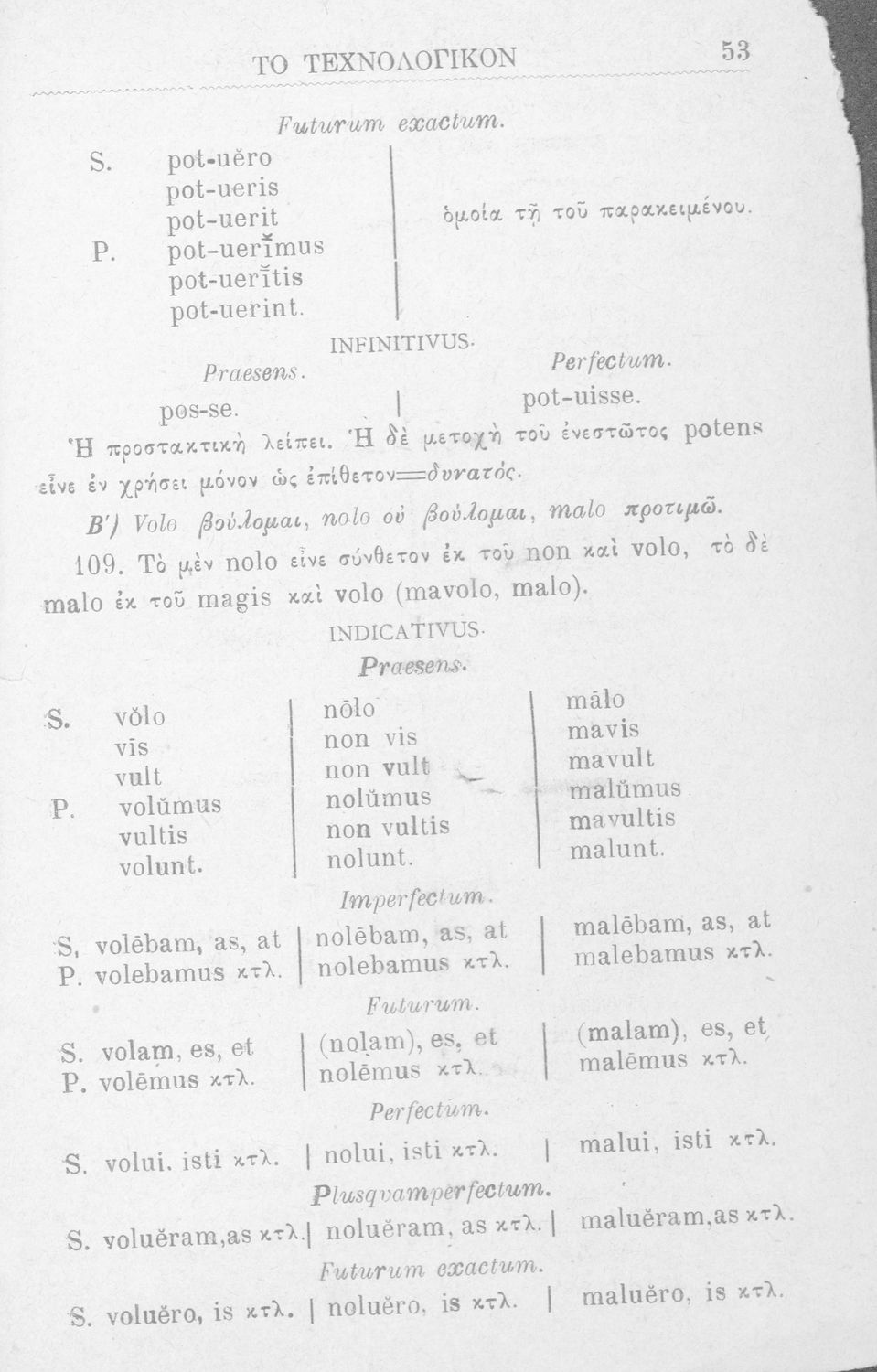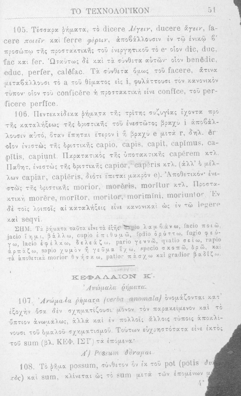 Σχολικό εγχειρίδιο Αρχαίων Ελληνικών για τα Ελληνικά Σχολεία και Παρθεναγωγεία που περιέχει τους κανόνες γραμματικής και είναι χωρισμένο σε φθογγολογικό, τυπολογικό και ετυμολογικό μέρος.
