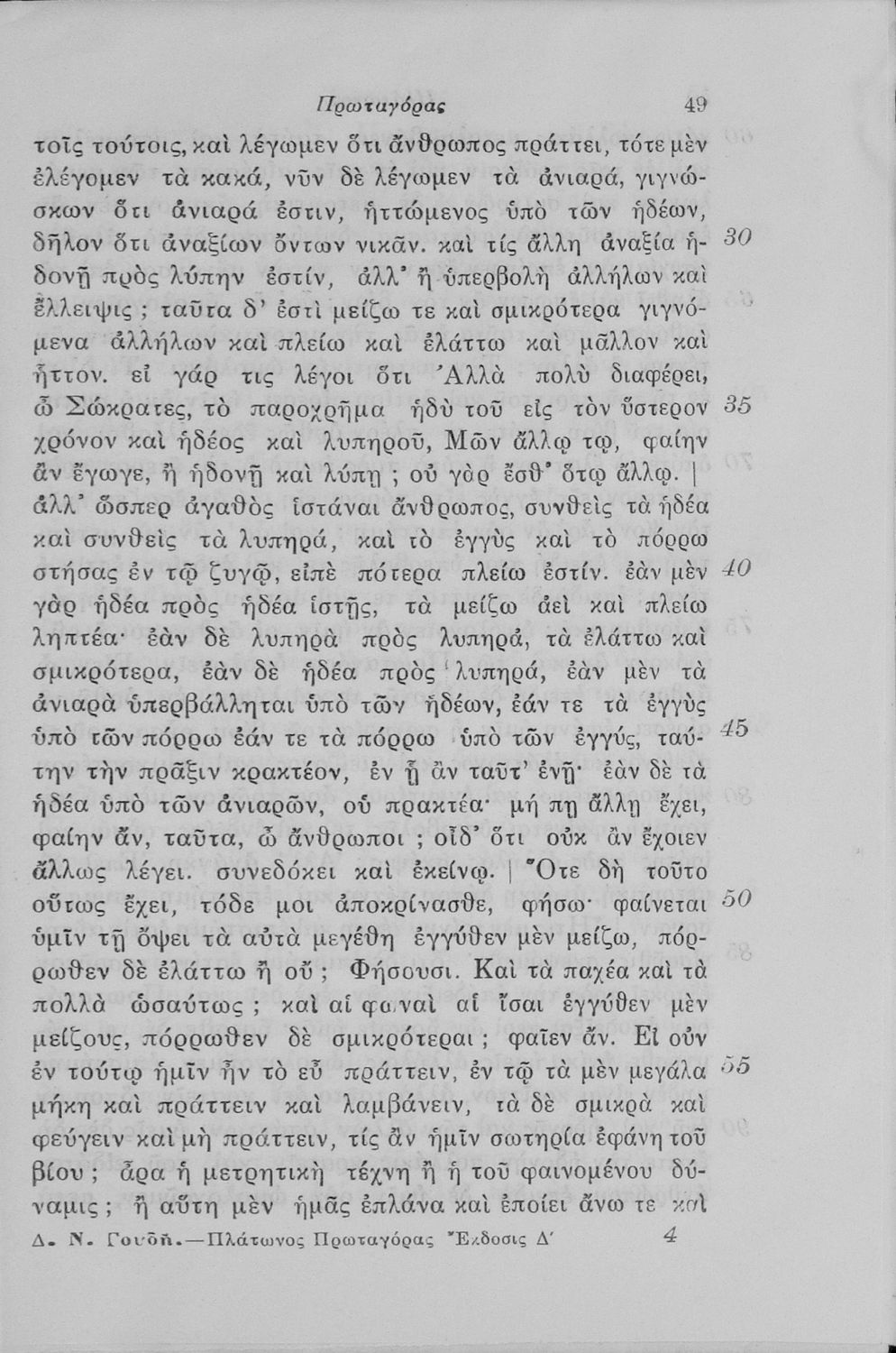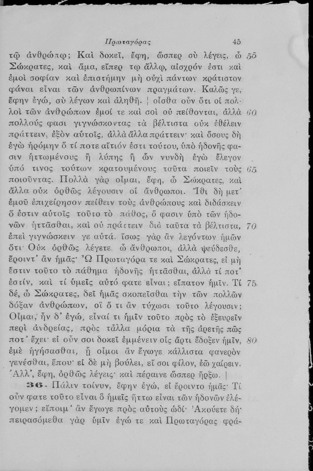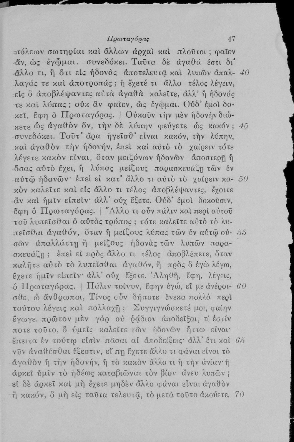 Πλάτωνος Πρωταγόρας. Προς χρήσιν των μαθητών της ΣΤ΄ Τάξεως των Εξατάξιων Γυμνασίων