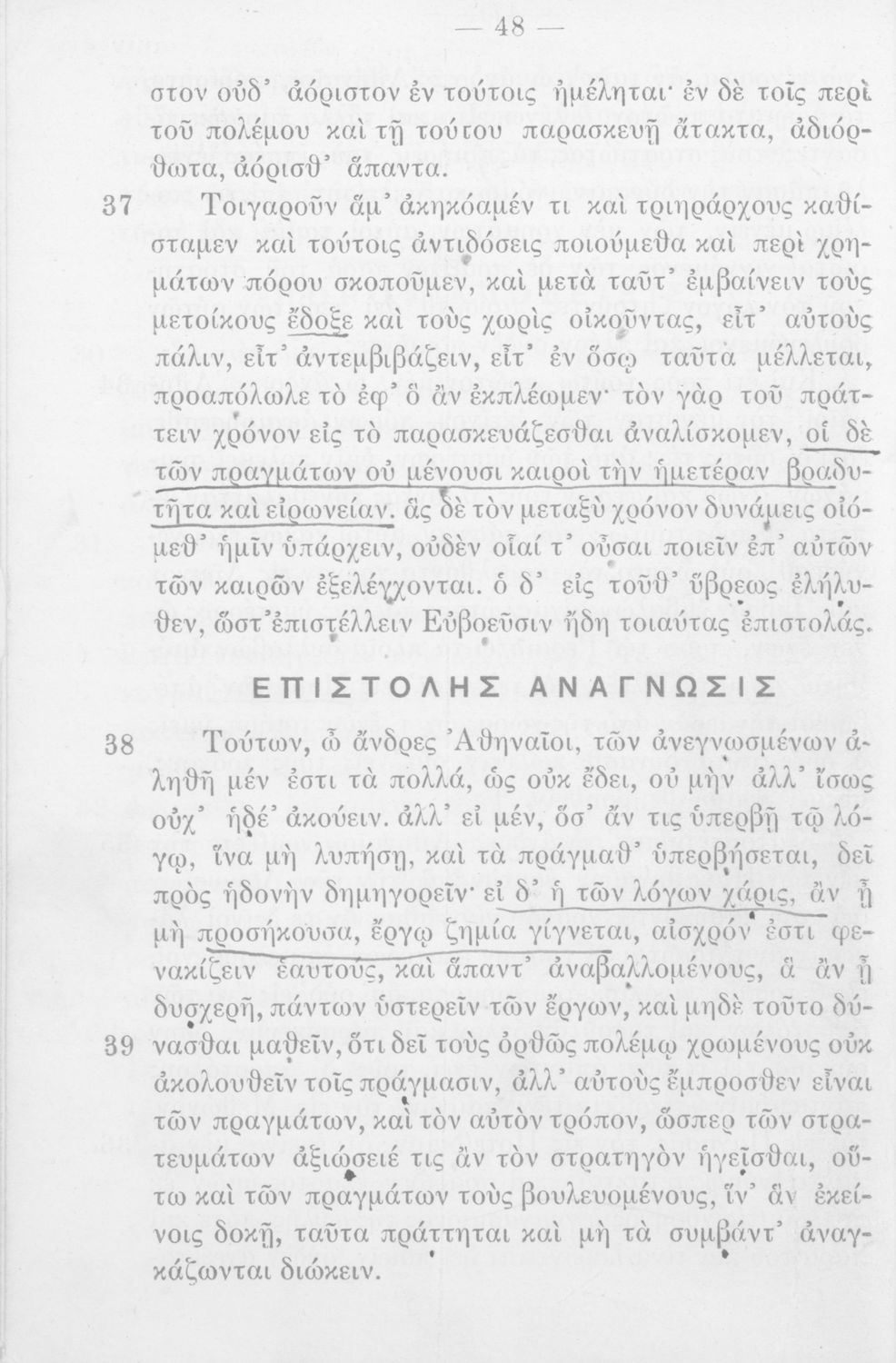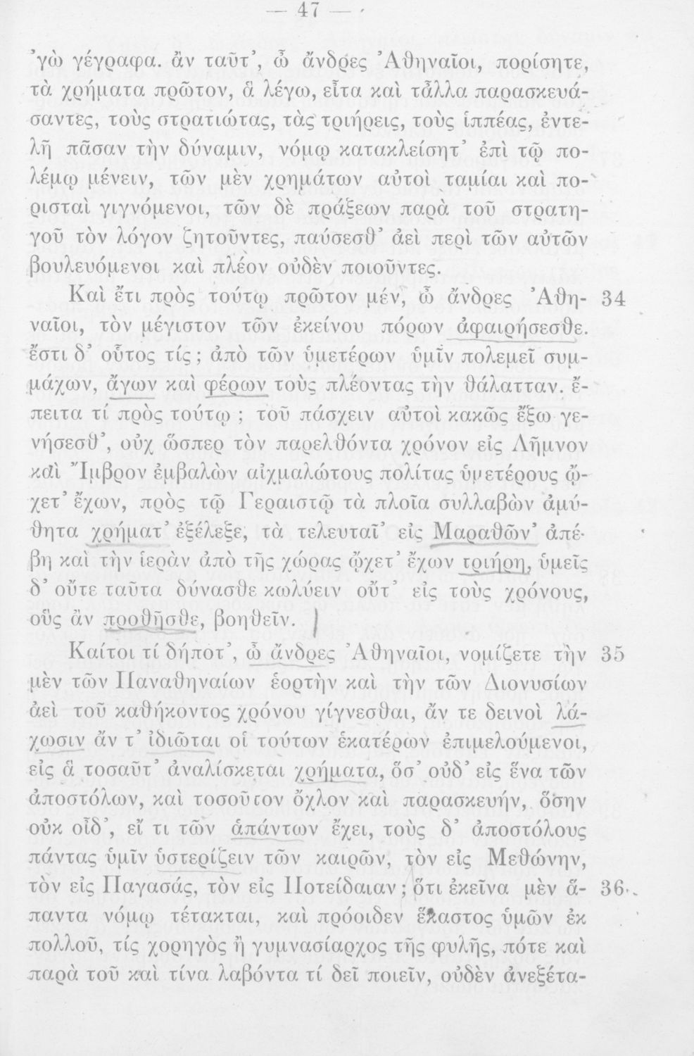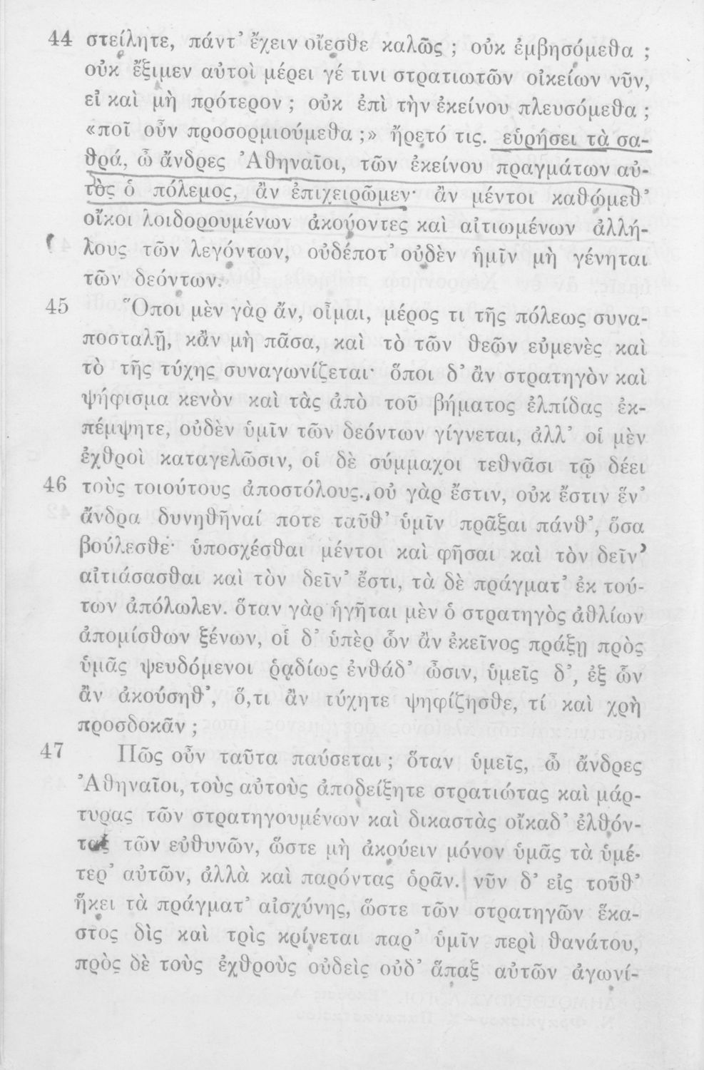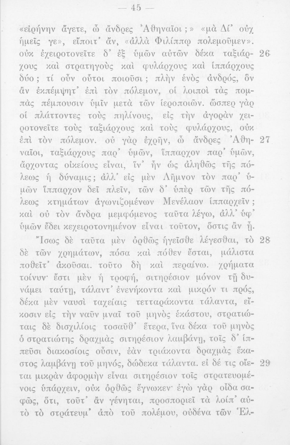 Σχολικό εγχειρίδιο Αρχαίων Ελληνικών Δ΄ Γυμνασίου που περιλαμβάνει εισαγωγή στη ζωή και στο έργο του Δημοσθένη, τον Α΄ κατά Φιλίππου, και τους Α΄ και Β΄ Ολυνθιακούς και ερμηνευτικά και ετυμολογικά σχόλια.
