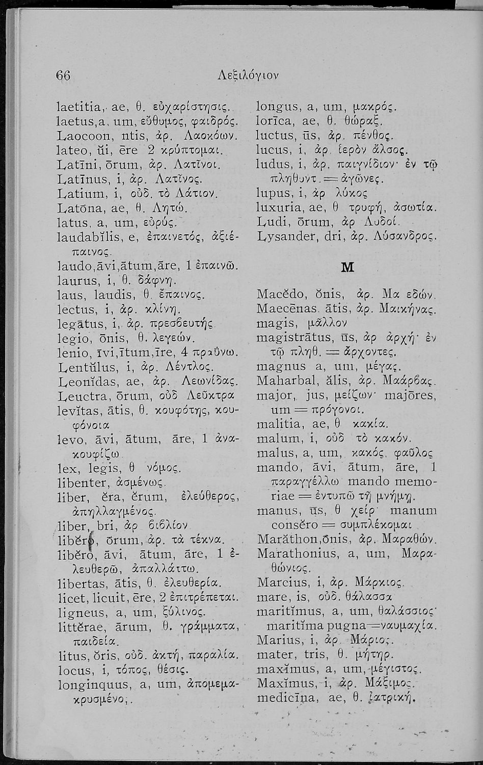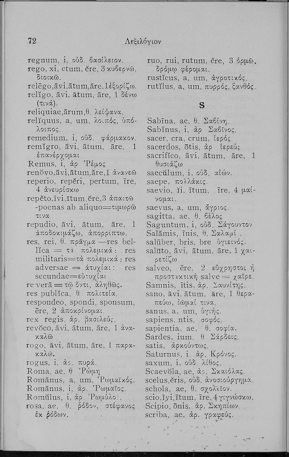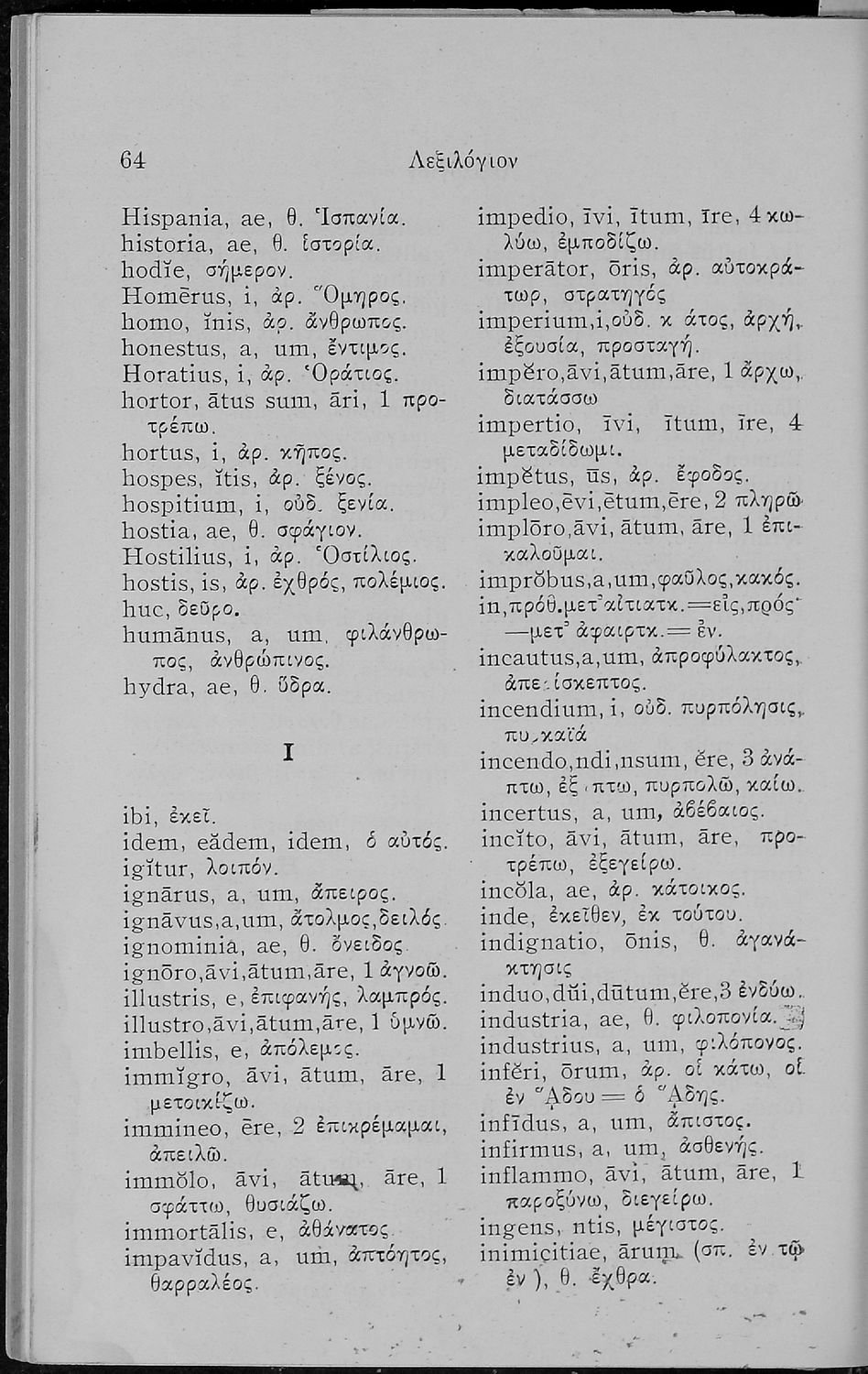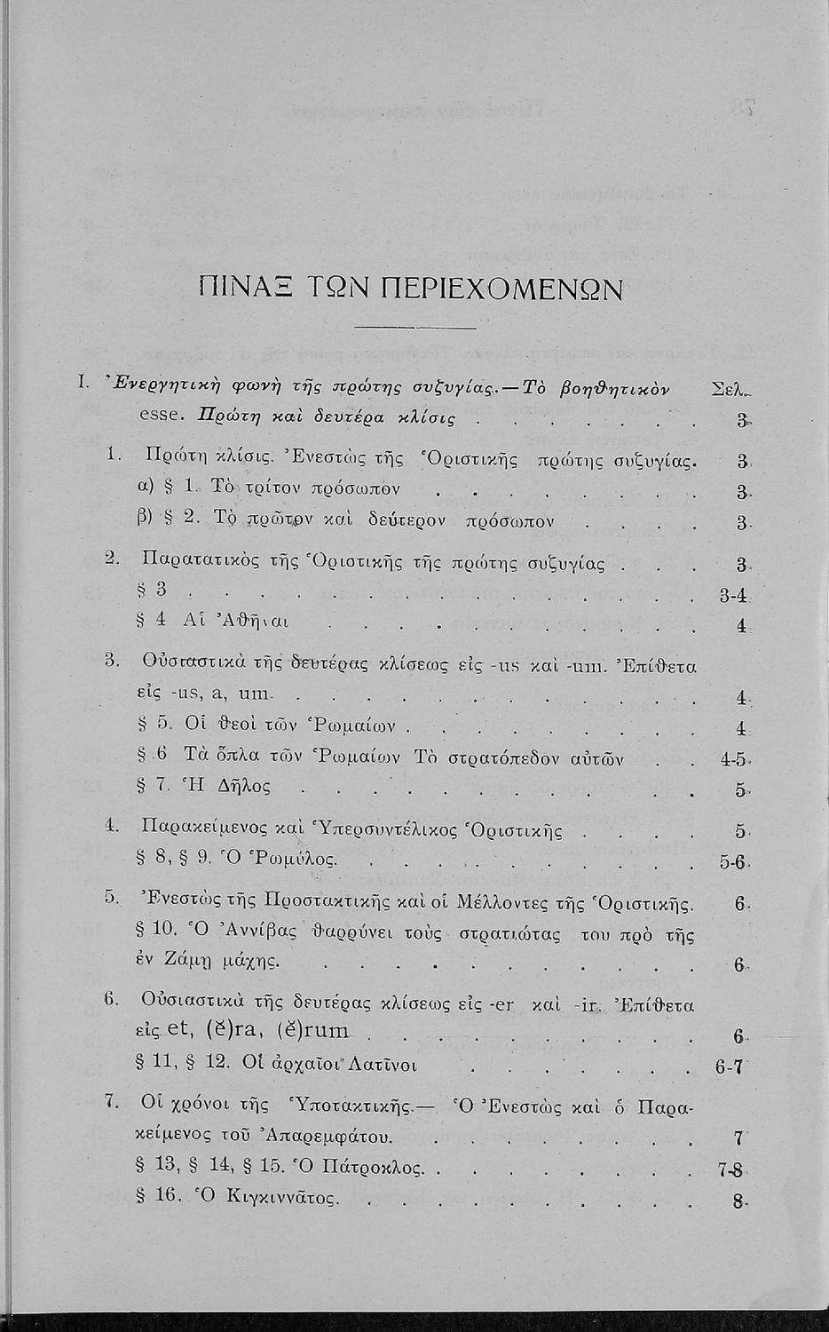 Σχολικό εγχειρίδιο Λατινικών για τη Γ΄ Γυμνασίου που περιέχει 54 κείμενα/περικοπές στα λατινικά, ερμηνευτικά υπομνήματα, λεξιλόγιο και κατάλογο με τα συντακτικά φαινόμενα (αφαιρετική, προθέσεις, σύνδεσμοι) που