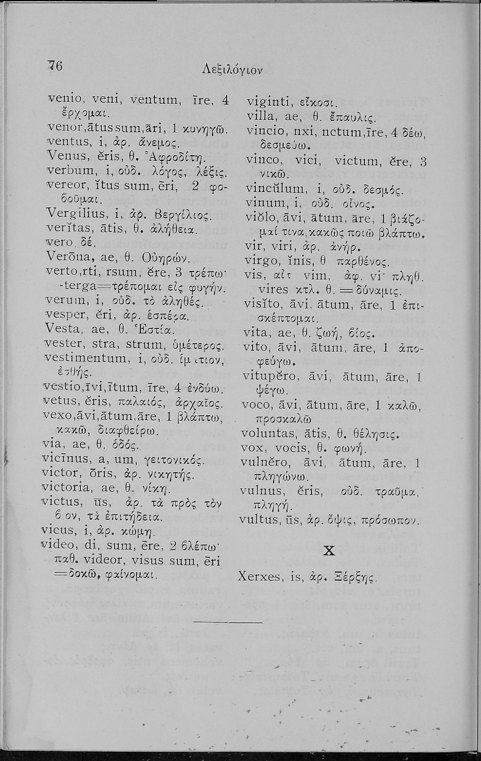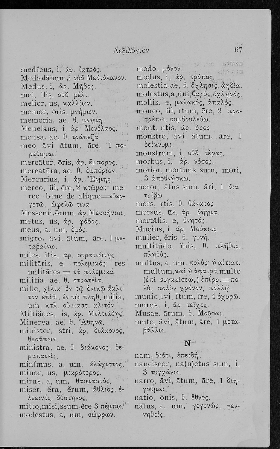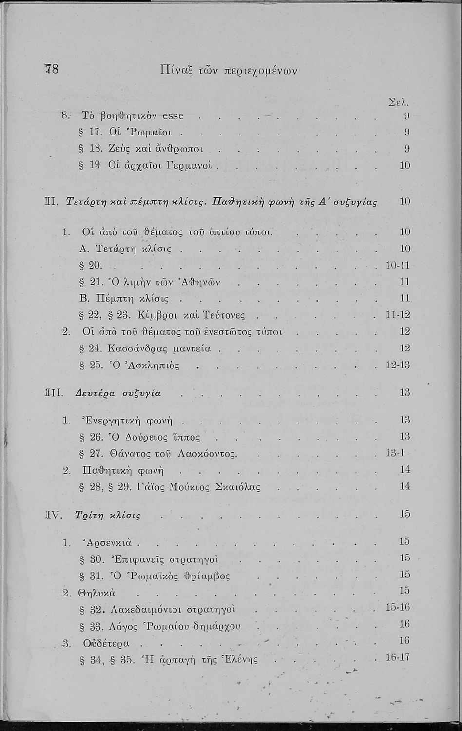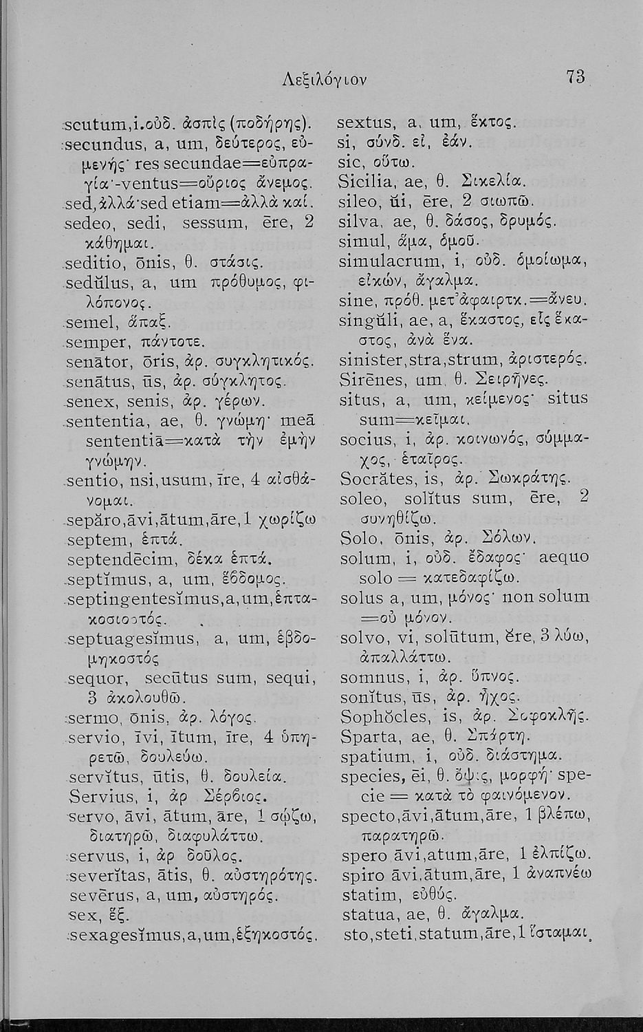 Σχολικό εγχειρίδιο Λατινικών για τη Γ΄ Γυμνασίου που περιέχει 54 κείμενα/περικοπές στα λατινικά, ερμηνευτικά υπομνήματα, λεξιλόγιο και κατάλογο με τα συντακτικά φαινόμενα (αφαιρετική, προθέσεις, σύνδεσμοι) που