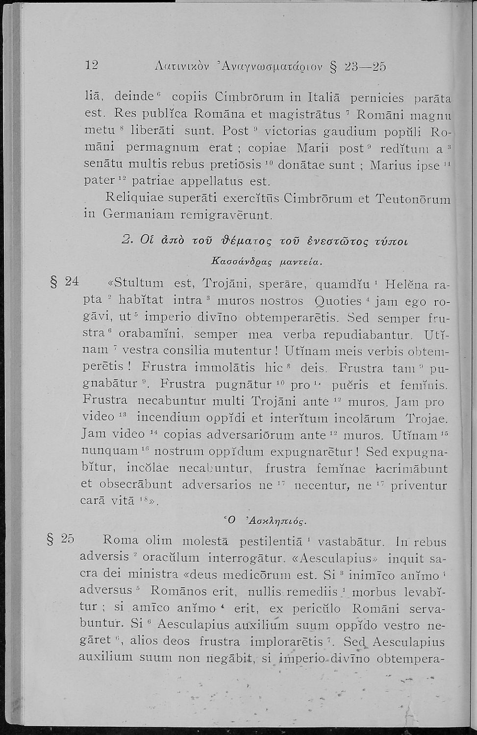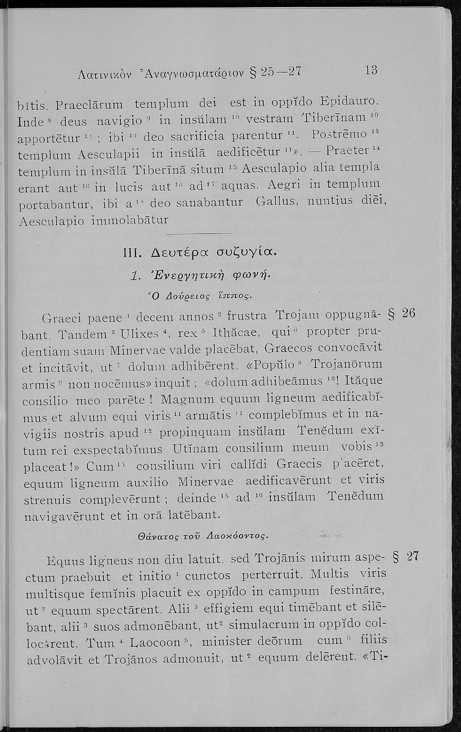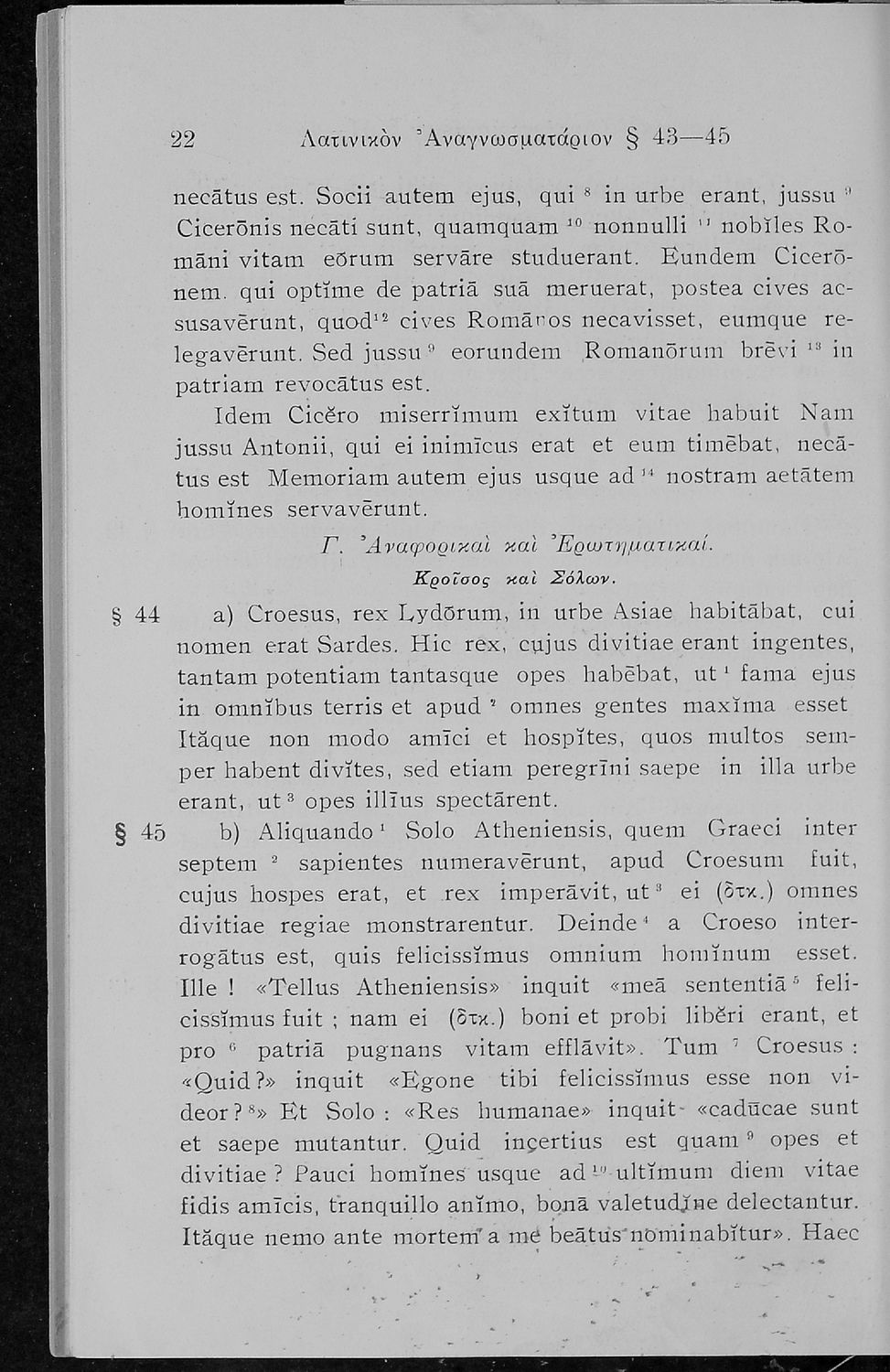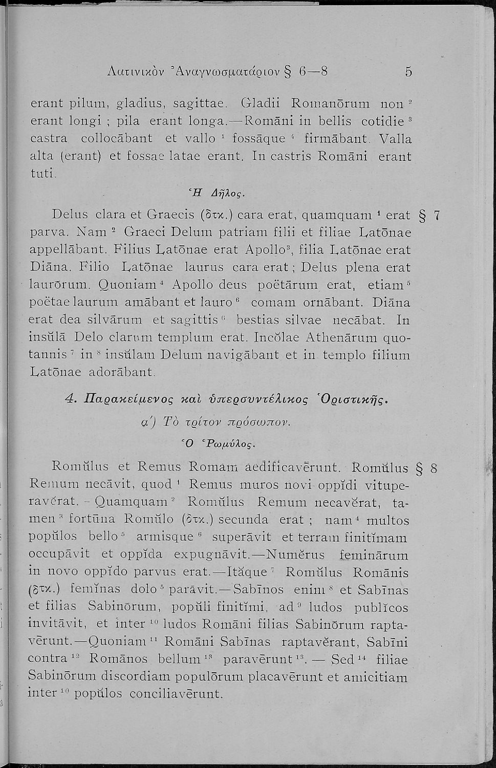 Σχολικό εγχειρίδιο Λατινικών Γ΄ Γυμνασίου που περιλαμβάνει κείμενα για τη διδασκαλία των γραμματικών και συντακτικών φαινομένων, ερμηνευτικά και πραγματολογικά σχόλια και λεξιλόγιο.