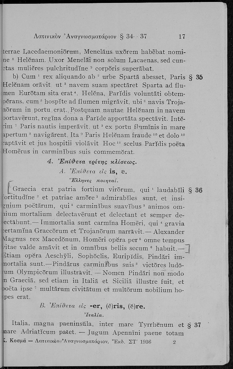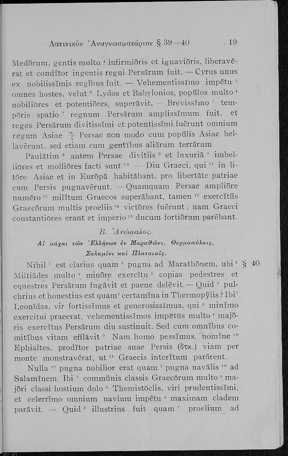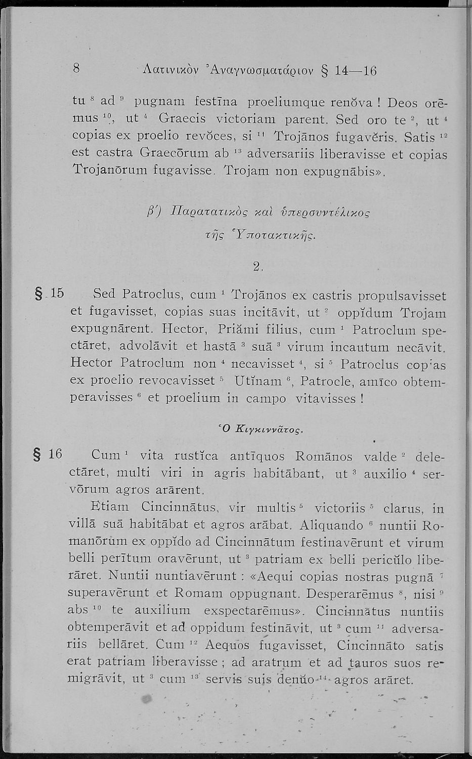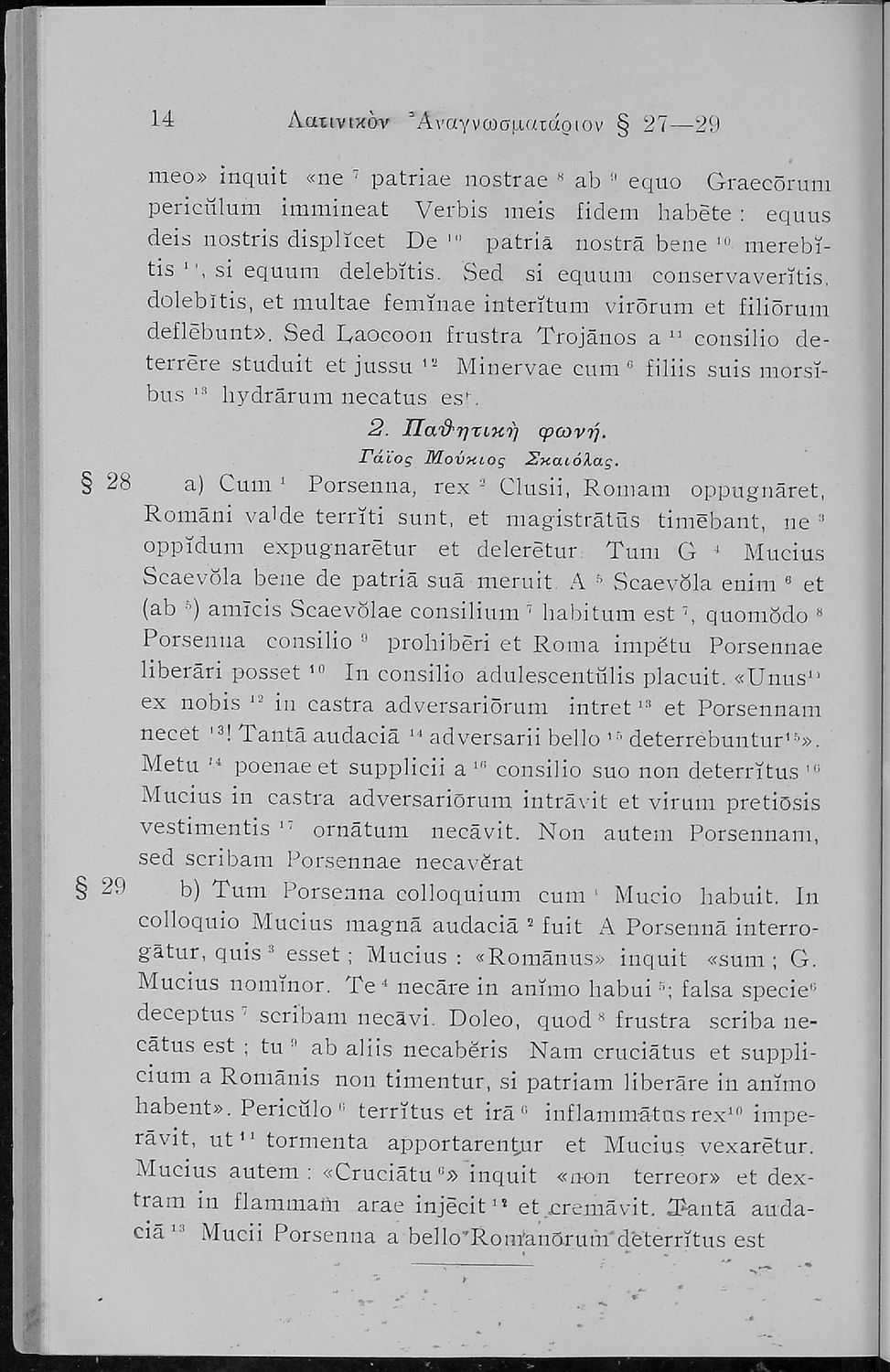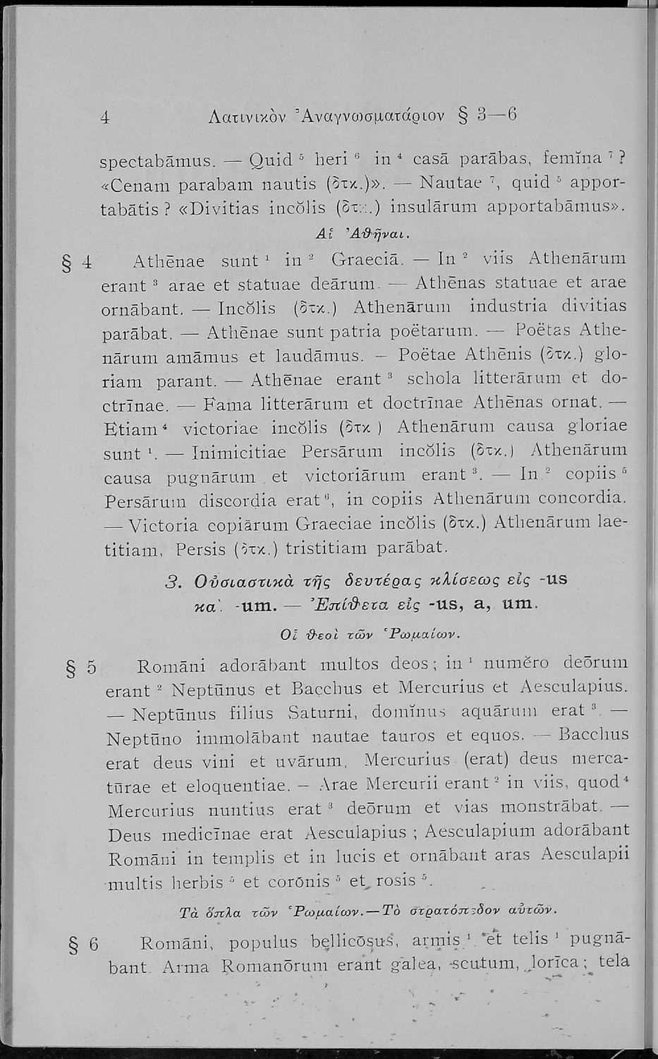 LDR 01102 2200193 4500 035 ## _a01-45176b 040 ## _aΙνστιτούτο Εκπαιδευτικής Πολιτικής 041 ## _ael 100 ## _aΚυριάκος Κοσμάς (σχόλια) 110 ## _a45176b 245 0# _aΛατινικόν Αναγνωσματάριο. Δια την Γ΄ Τάξιν των Γυμνασίων 260 ## _aΑθήνα _bΙωάννης Δ. Κολλάρος, Βιβλιοπωλείο της "Εστίας" _c1936 300 ## _a80 520 ## _aΣχολικό εγχειρίδιο Λατινικών Γ΄ Γυμνασίου που περιλαμβάνει κείμενα για τη διδασκαλία των γραμματικών και συντακτικών φαινομένων, ερμηνευτικά και πραγματολογικά σχόλια και λεξιλόγιο. 521 ## _aΓ' Γυμνασίου 522 ## _aΕλλάδα 546 ## _aΚαθαρεύουσα 563 ## _aΣκληρό Εξώφυλλο 650 #4 _aΕπίθετα _aΚλίση _aΛατινικά _aΡήματα _aΥποκείμενα