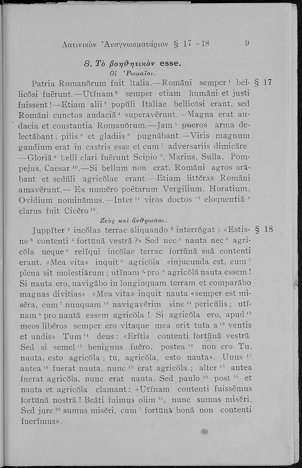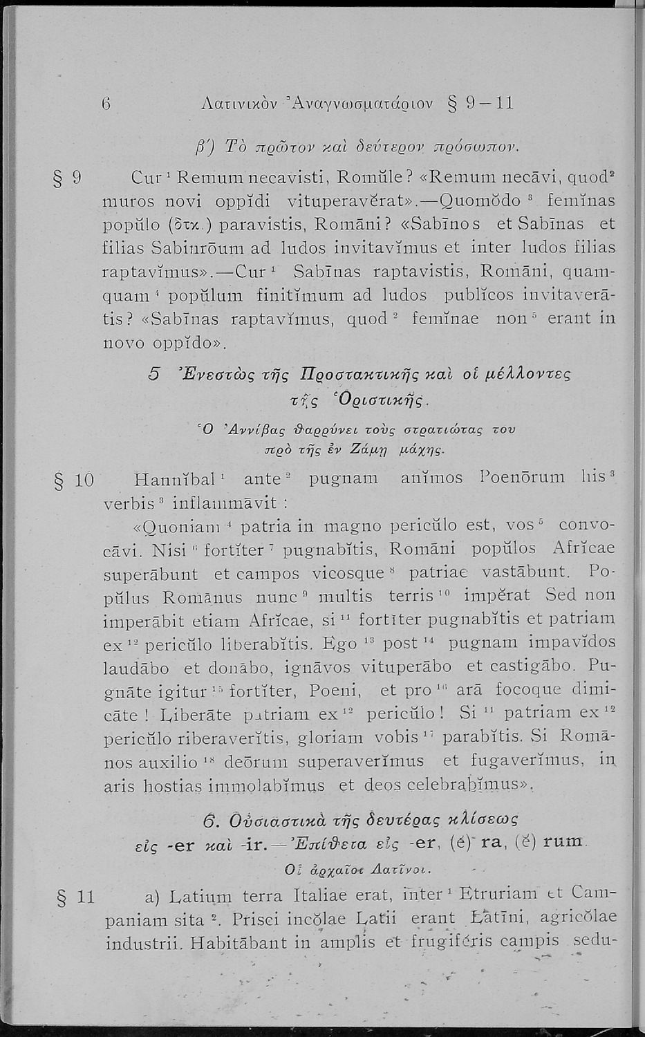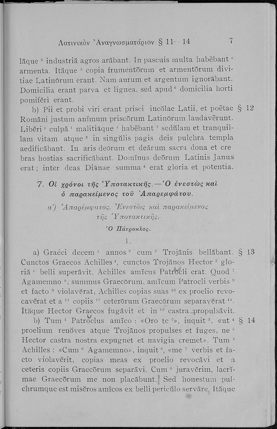 Βαθμίδα εκπαίδευσης: Δευτεροβάθμια Τάξη: Γ' Γυμνασίου Μάθημα: Αρχαία Ελληνικά Γλώσσα: Καθαρεύουσα Παρουσίαση περιεχομένου: Σχολικό εγχειρίδιο Λατινικών Γ΄ Γυμνασίου που περιλαμβάνει κείμενα για τη διδασκαλία των γραμματικών και συντακτικών φαινομένων, ερμηνευτικά και πραγματολογικά σχόλια και λεξιλόγιο. |