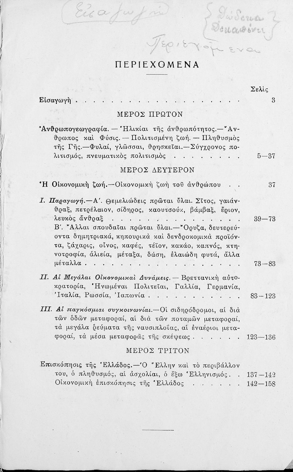 Σχολικό εγχειρίδιο Γεωγραφίας για την Ε' Γυμνασίου. Βιβλίο ανθρωπογεωγραφίας με μελέτη της παγκόσμιας οικονομικής ζωής και αναφορά στα κράτη που θεωρούνται μεγάλες οικονομικές δυνάμεις. Γίνεται γεωγραφική και οικονομική επισκόπηση της Ελλάδας.