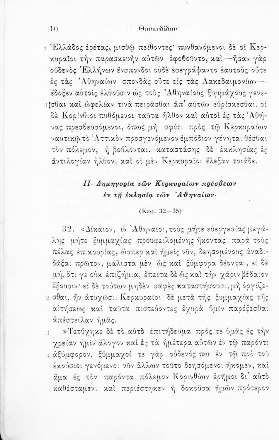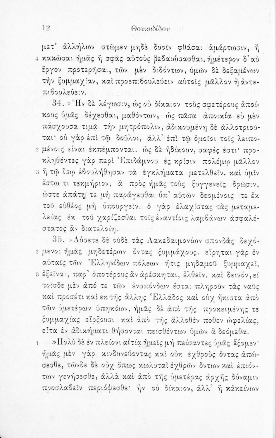 Σχολικό εγχειρίδιο Αρχαίων Ελληνικών για τις Β΄ και Γ΄ Γυμνασίου που περιλαμβάνει σύντομο βιογραφικό σημείωμα του Θουκυδίδη, εισαγωγικά σχόλια στο έργο, κείμενο και ετυμολογικό λεξιλόγιο.