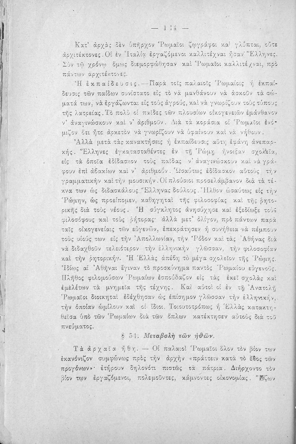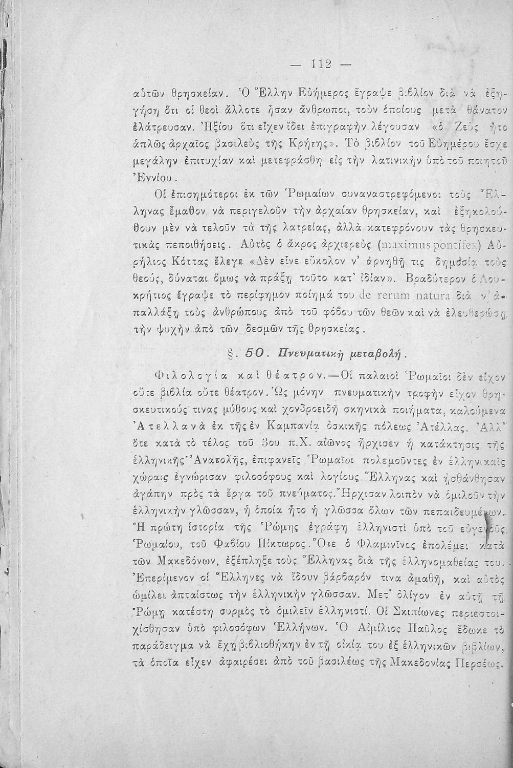 Βαθμίδα εκπαίδευσης: Δευτεροβάθμια Τάξη: Β' Γυμνασίου Μάθημα: Ιστορία Γλώσσα: Απλή καθαρεύουσα Παρουσίαση περιεχομένου: Σχολικό εγχειρίδιο Ιστορίας Β΄ Γυμνασίου που καλύπτει την περίοδο από την κατάρρευση της Μακεδονικής Ηγεμονίας μέχρι τα χρόνια του Μ. Κωνσταντίνου και του Θεοδοσίου του Μεγάλου. Περιέχει χρονολογικό πίνακα των πιο σημαντικών γεγονότων. |
