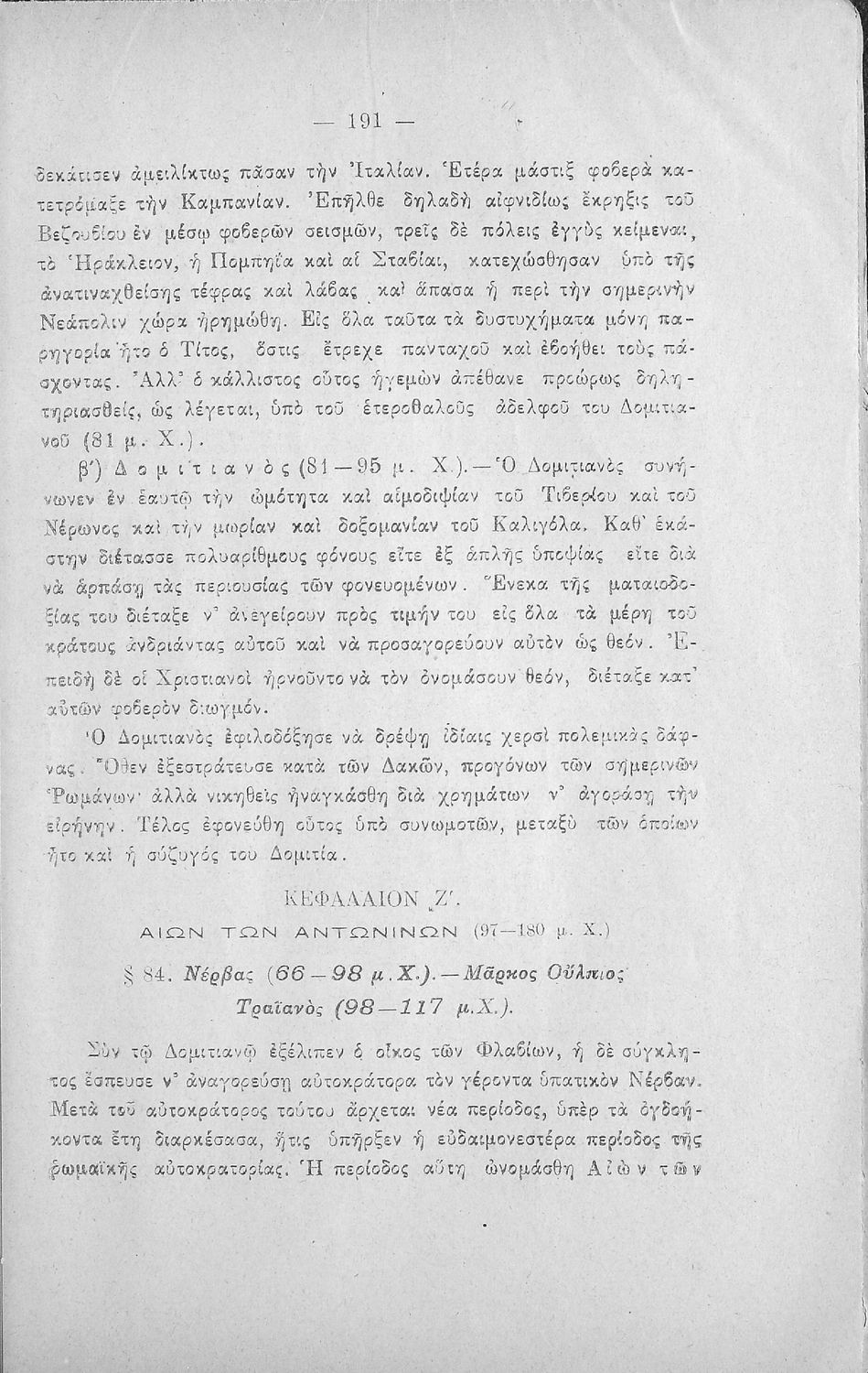 Βαθμίδα εκπαίδευσης: Δευτεροβάθμια Τάξη: Β' Γυμνασίου Μάθημα: Ιστορία Γλώσσα: Απλή καθαρεύουσα Παρουσίαση περιεχομένου: Σχολικό εγχειρίδιο Ιστορίας Β΄ Γυμνασίου που καλύπτει την περίοδο από την κατάρρευση της Μακεδονικής Ηγεμονίας μέχρι τα χρόνια του Μ. Κωνσταντίνου και του Θεοδοσίου του Μεγάλου. Περιέχει χρονολογικό πίνακα των πιο σημαντικών γεγονότων. |
