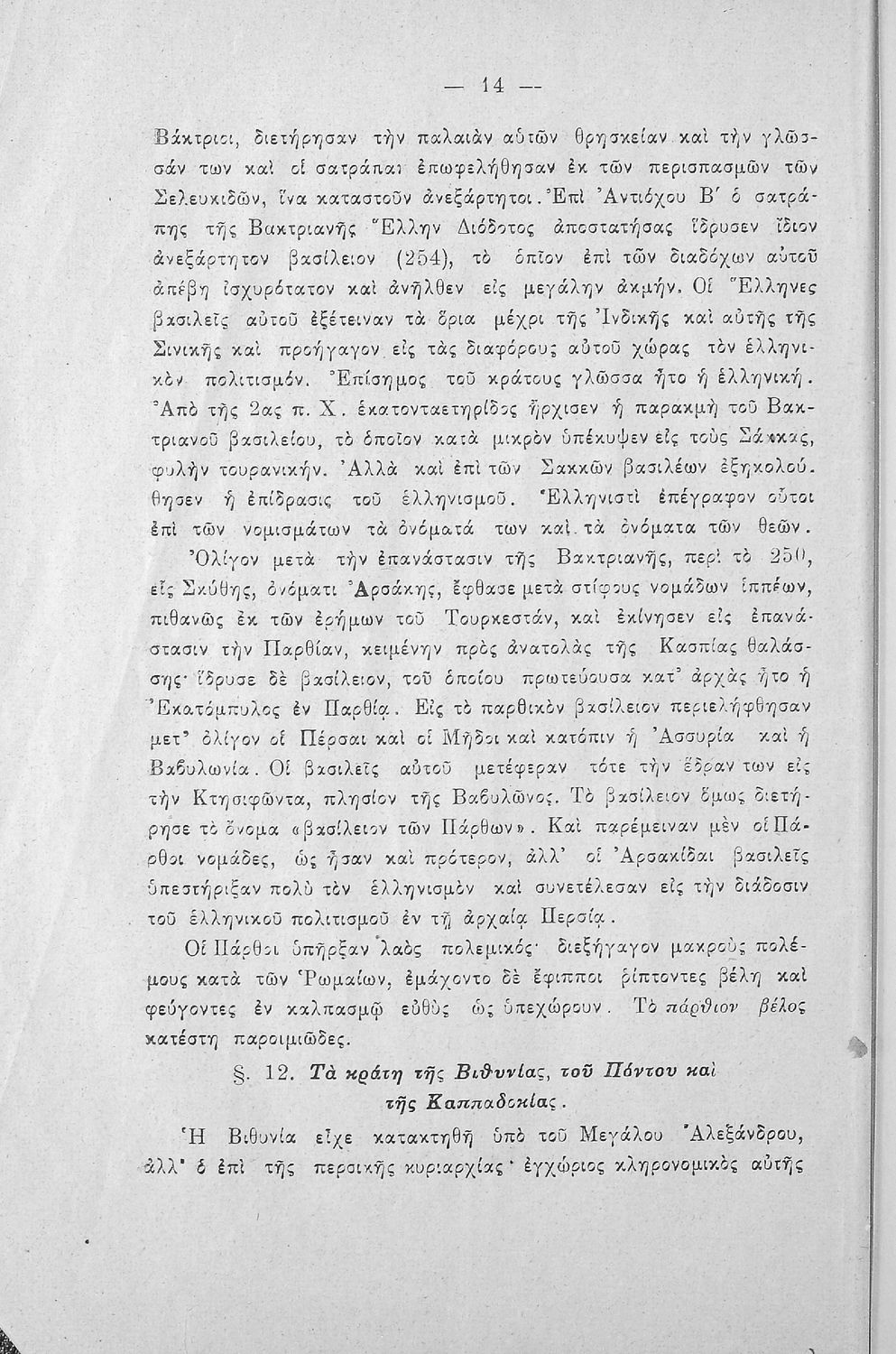 Βαθμίδα εκπαίδευσης: Δευτεροβάθμια Τάξη: Β' Γυμνασίου Μάθημα: Ιστορία Γλώσσα: Απλή καθαρεύουσα Παρουσίαση περιεχομένου: Σχολικό εγχειρίδιο Ιστορίας Β΄ Γυμνασίου που καλύπτει την περίοδο από την κατάρρευση της Μακεδονικής Ηγεμονίας μέχρι τα χρόνια του Μ. Κωνσταντίνου και του Θεοδοσίου του Μεγάλου. Περιέχει χρονολογικό πίνακα των πιο σημαντικών γεγονότων. |