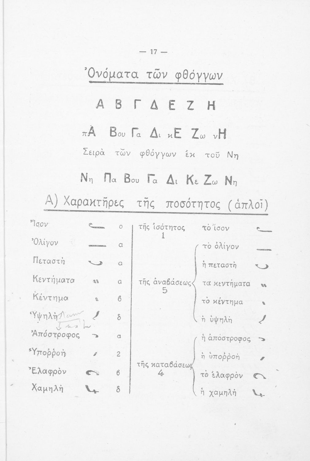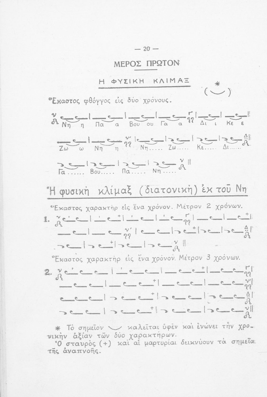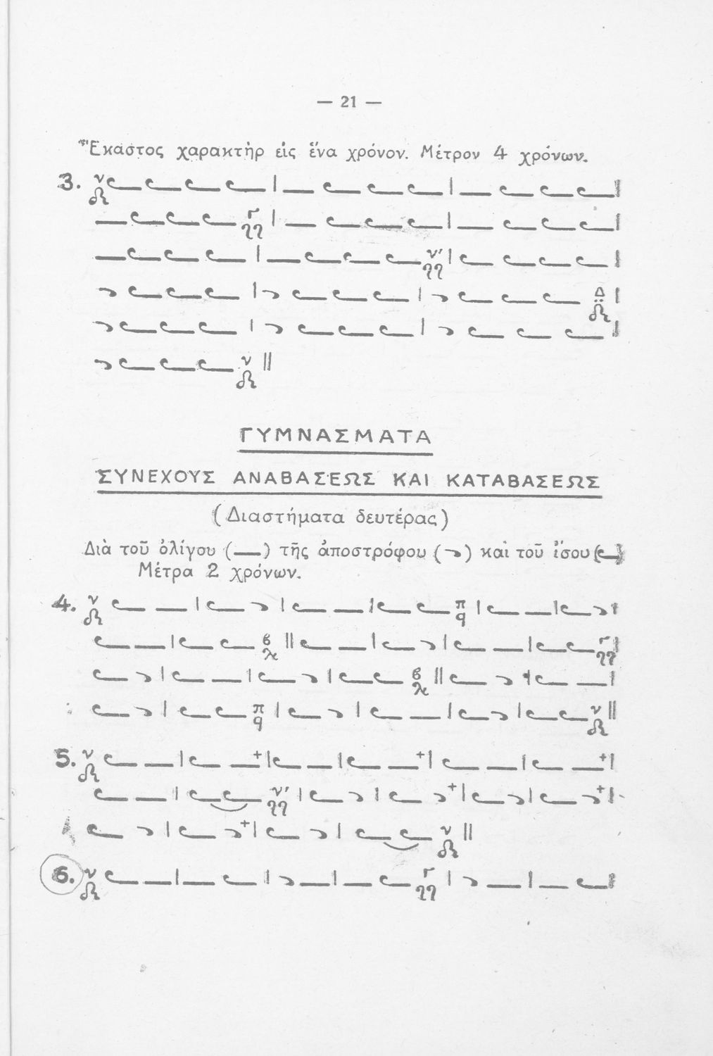 Σχολικό εγχειρίδιο Μουσικής για Γυμνάσια, Παρθεναγωγεία και Διδασκαλεία. Περιέχει ασκήσεις μελωδικές, χωρίς θεωρία.