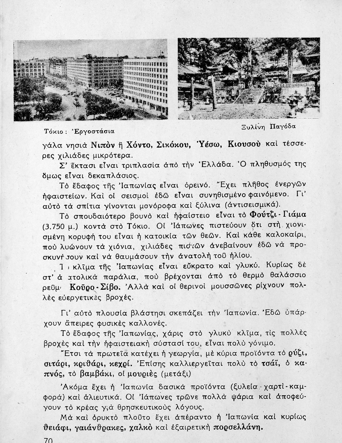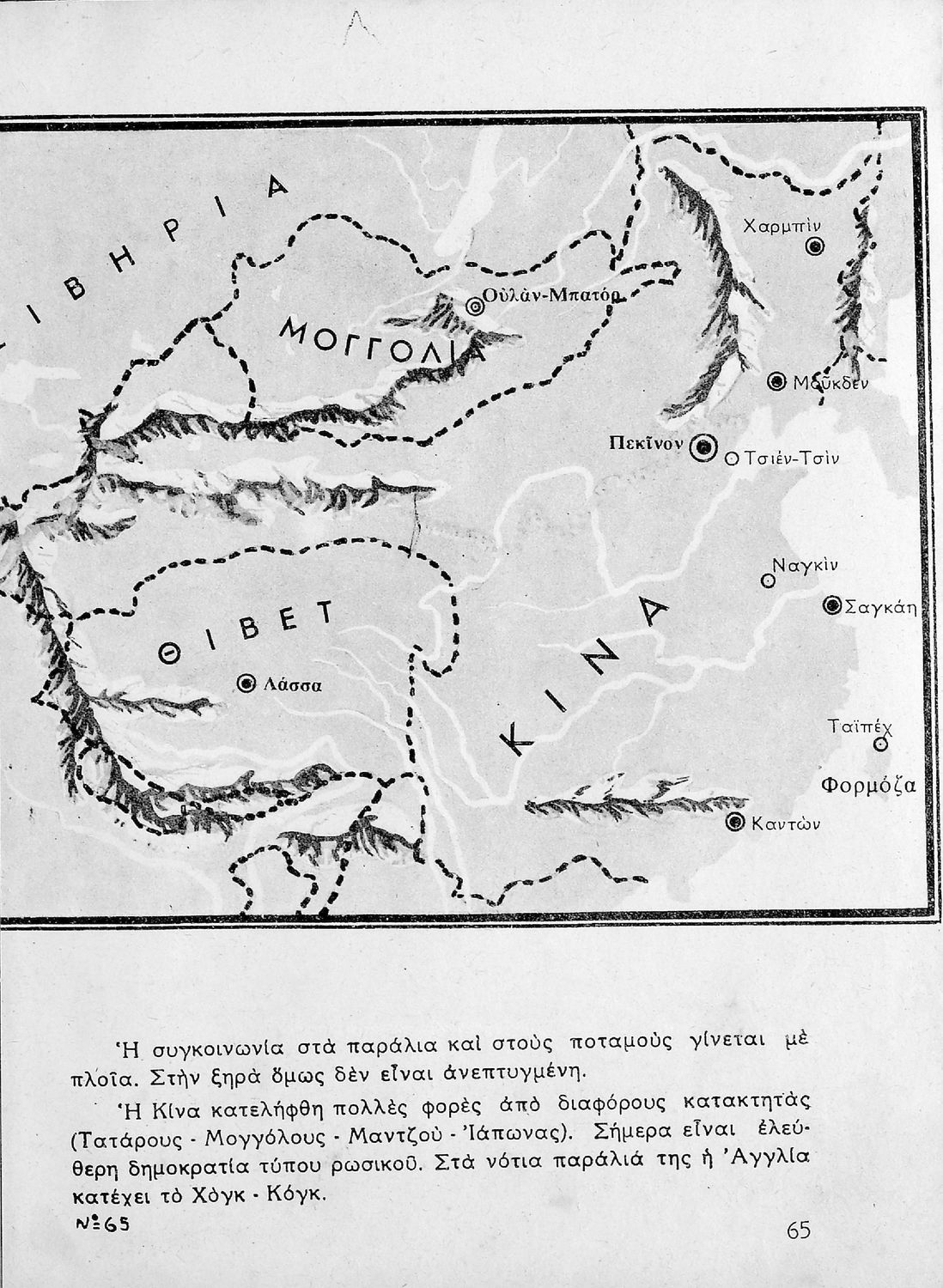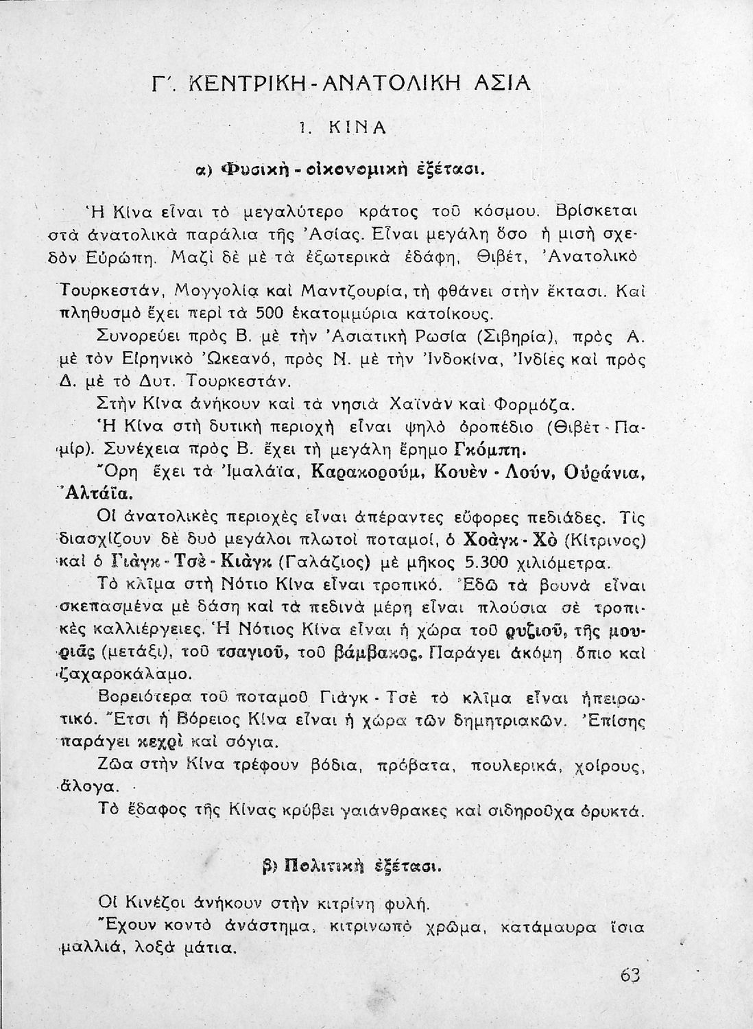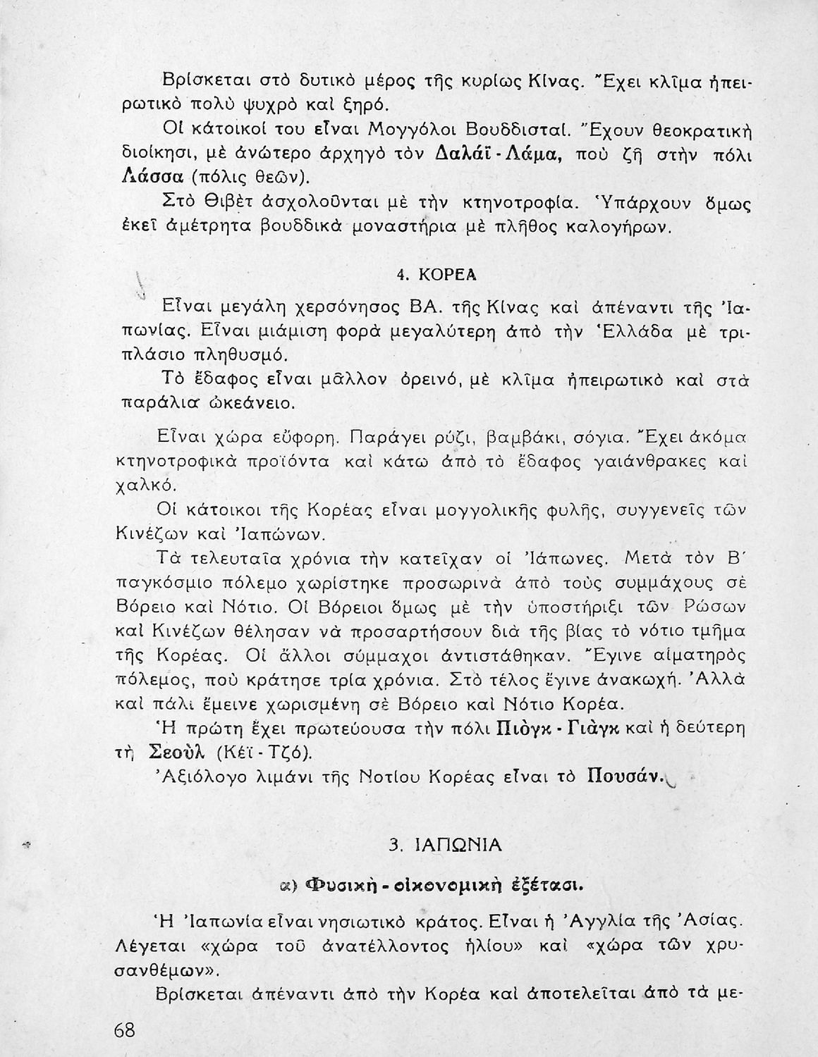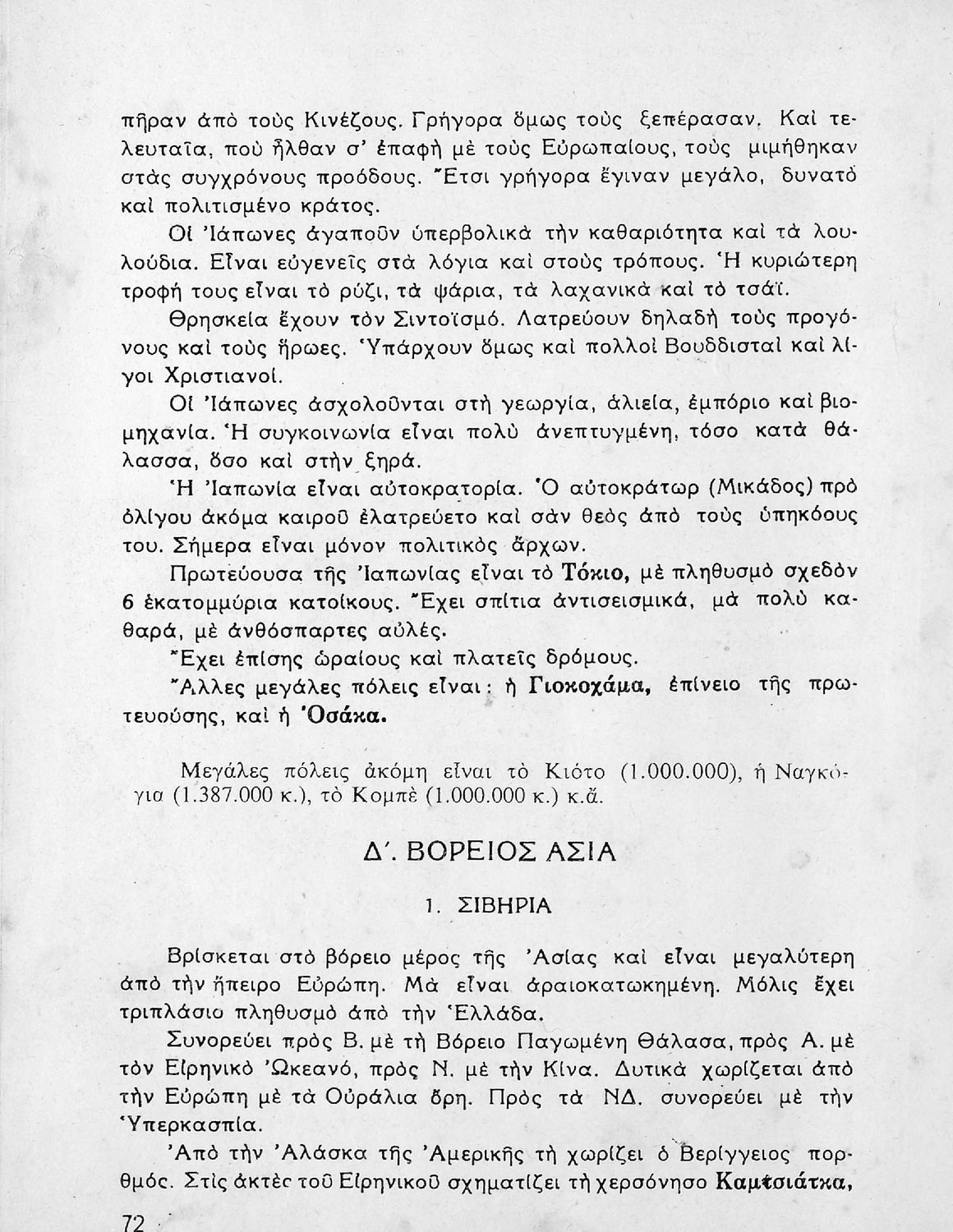 Σχολικό εγχειρίδιο Γεωγραφίας για τις Γ΄, Δ΄, Ε΄, ΣΤ΄ Δημοτικού που περιλαμβάνει εισαγωγή στην πατριδογνωσία και παρουσιάζει την φυσική και πολιτική γεωγραφία της Παλαιάς και Νέας Ελλάδας.