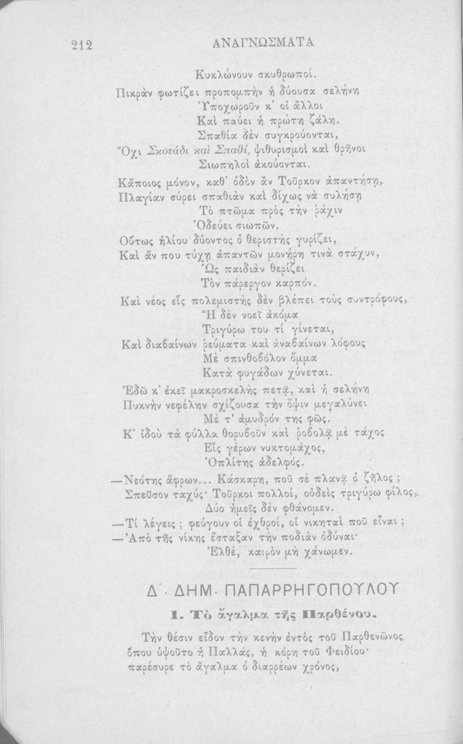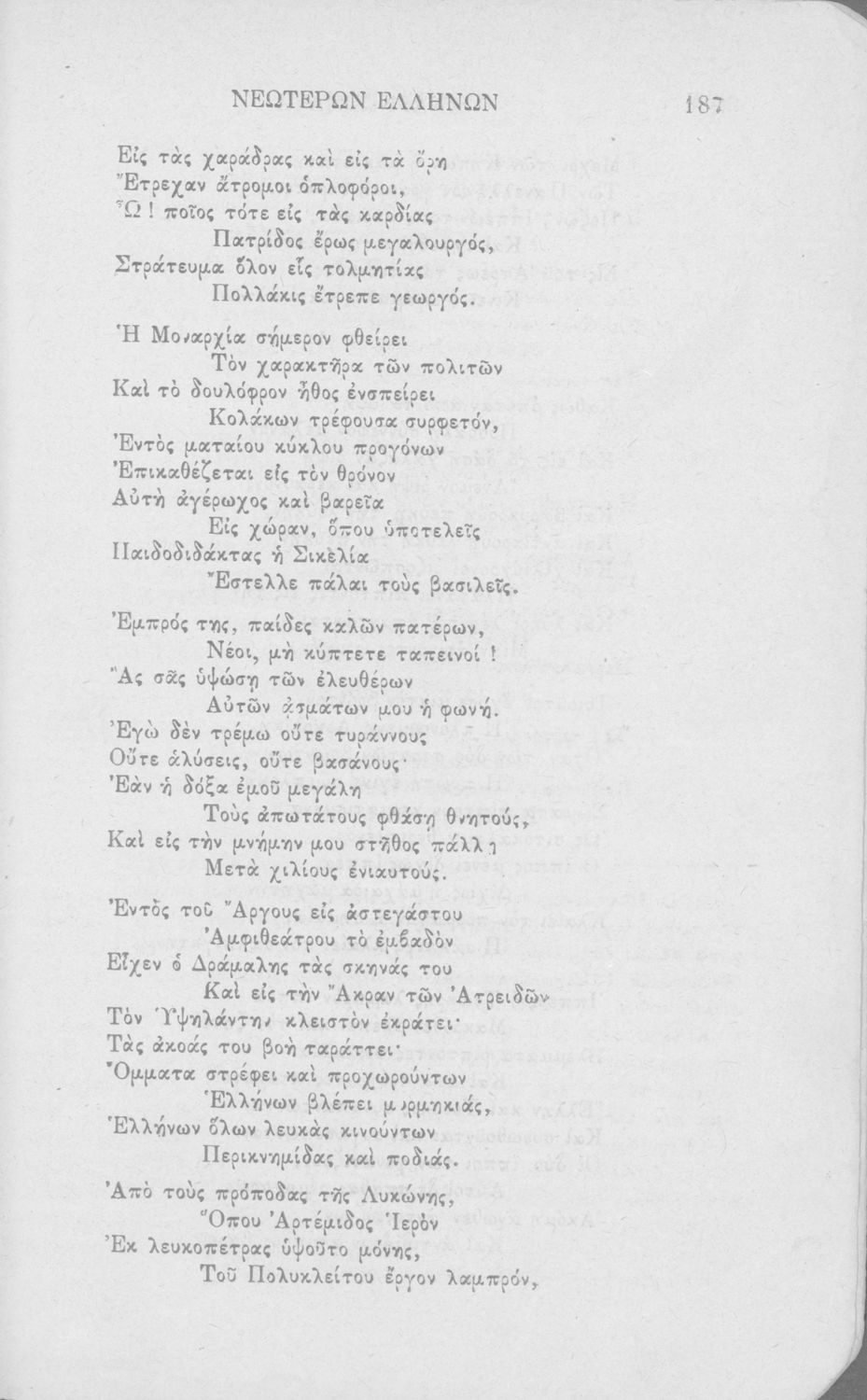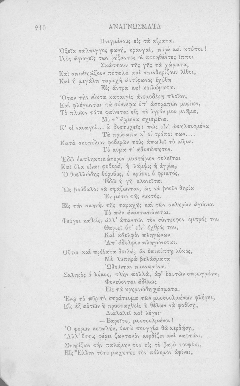 Βαθμίδα εκπαίδευσης: Δευτεροβάθμια Τάξη: Β' Ελληνικού Σχολείου Μάθημα: Νέα Ελληνικά Γλώσσα: Καθαρεύουσα Παρουσίαση περιεχομένου: Σχολικό εγχειρίδιο Νέων Ελληνικών Β' Ελληνικού Σχολείου που περιέχει πεζά και ποιήματα με θεματολογία από τη θρησκευτική, ιστορική και κοινωνική ζωή του τόπου καθώς και βιογραφίες των συγγραφέων. |