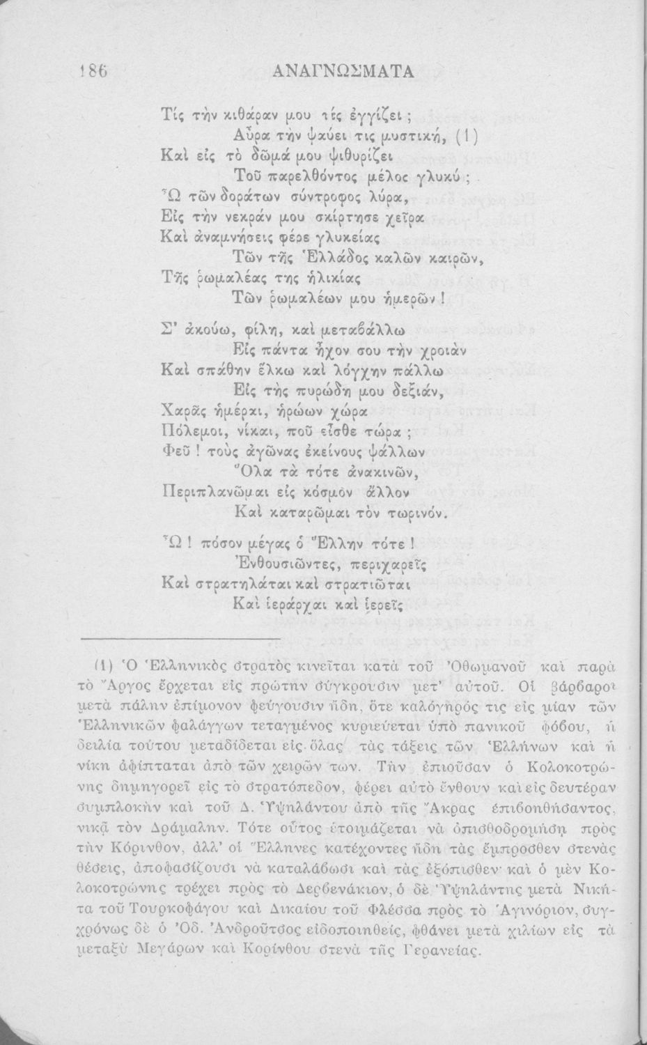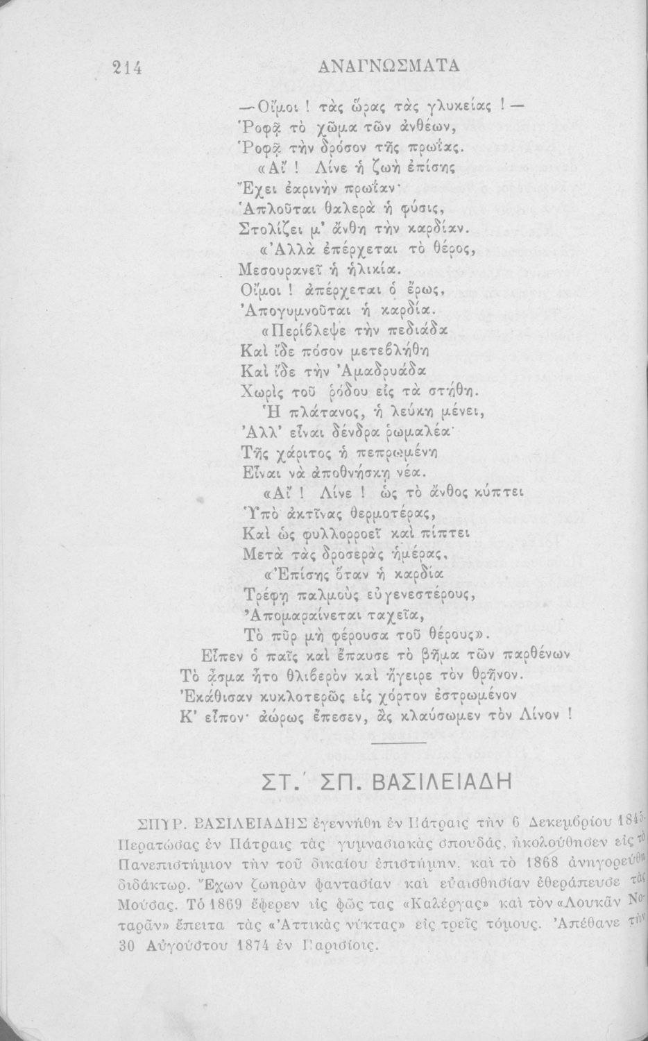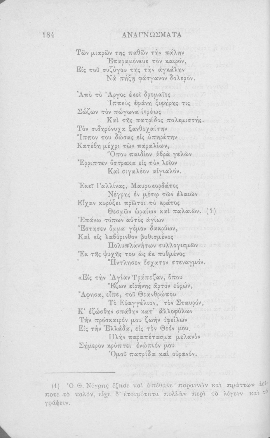 Βαθμίδα εκπαίδευσης: Δευτεροβάθμια Τάξη: Β' Ελληνικού Σχολείου Μάθημα: Νέα Ελληνικά Γλώσσα: Καθαρεύουσα Παρουσίαση περιεχομένου: Σχολικό εγχειρίδιο Νέων Ελληνικών Β' Ελληνικού Σχολείου που περιέχει πεζά και ποιήματα με θεματολογία από τη θρησκευτική, ιστορική και κοινωνική ζωή του τόπου καθώς και βιογραφίες των συγγραφέων. |