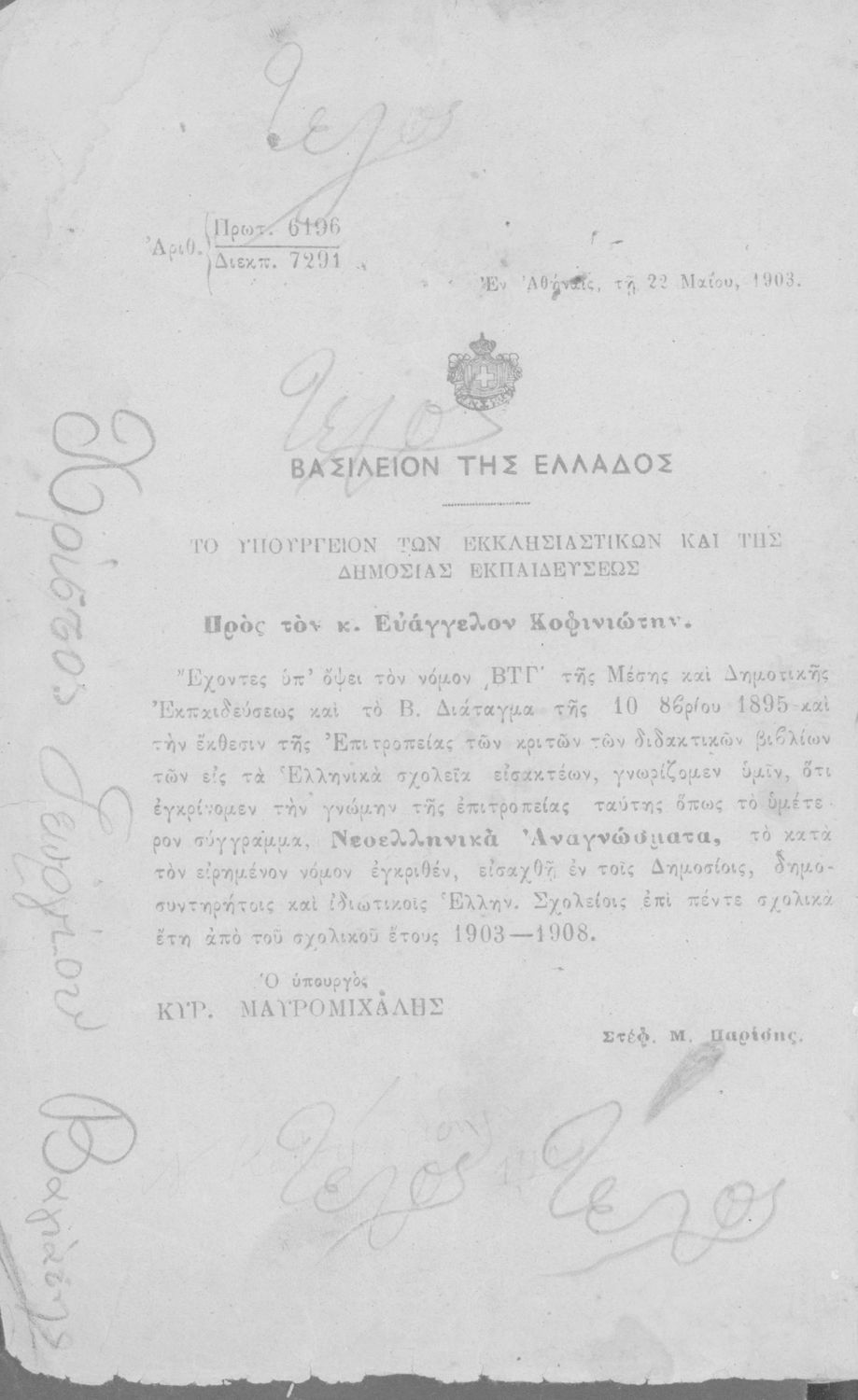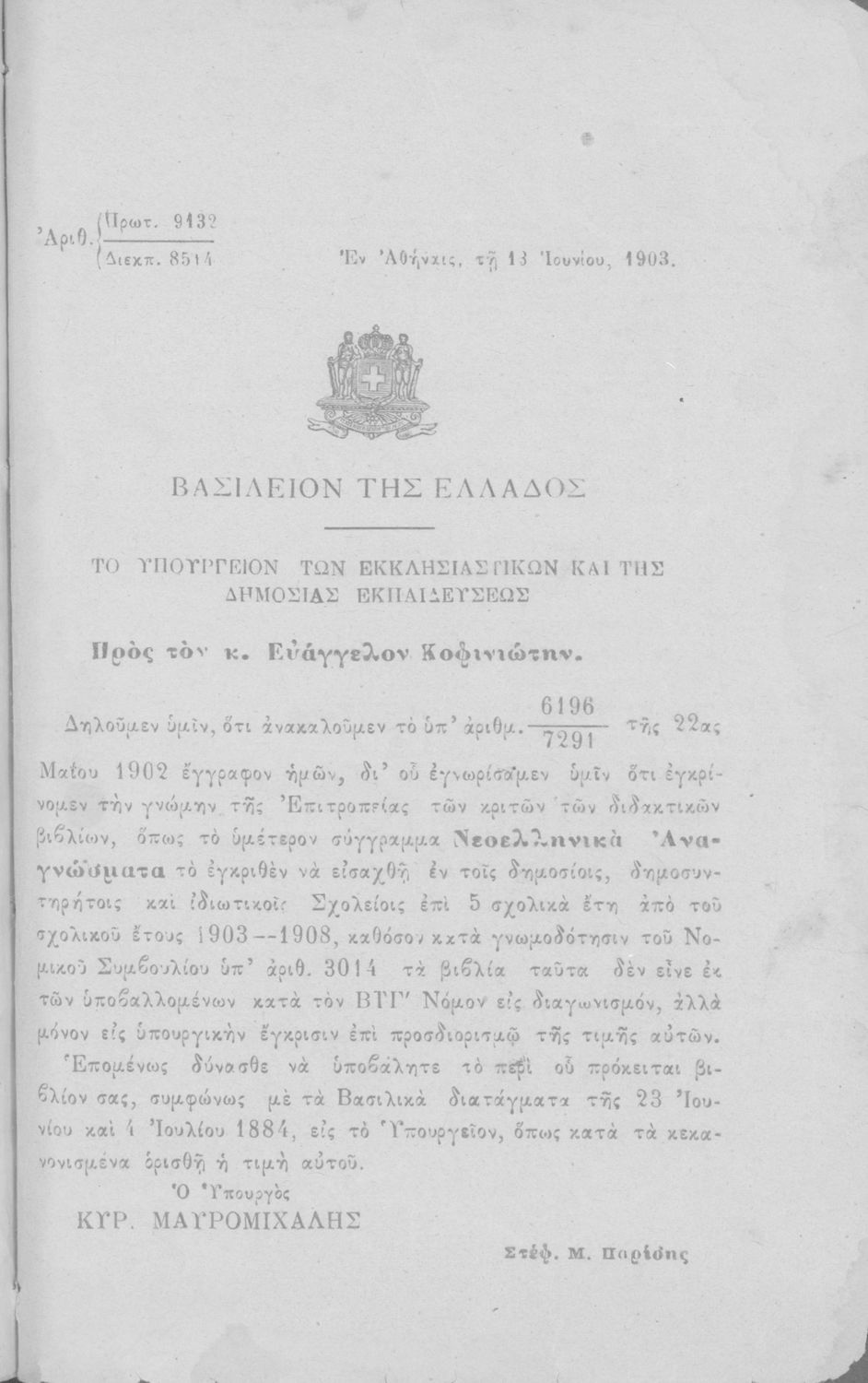 Υπουργική απόφαση / Σύμβαση: 9132/13-6-1903