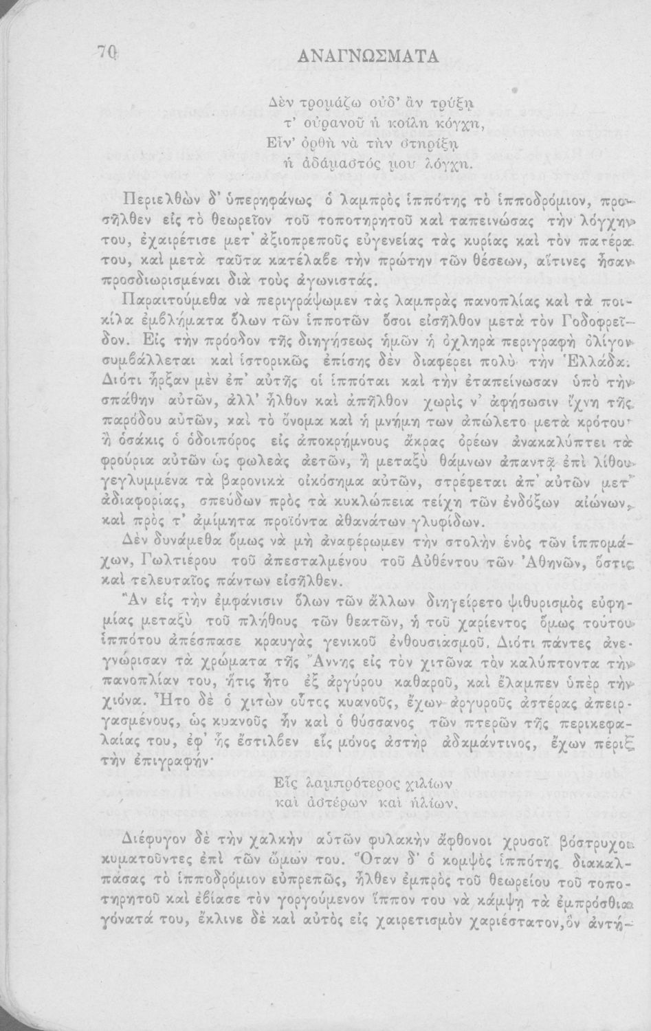 Κωδικός αναγνώρισης: 01-45185 Τίτλος: Αναγνώσματα νεωτέρων Ελλήνων λογογράφων και ποιητών, μετά βιογραφιών, σημειώσεων και εικόνων, Τόμος Β΄ Συγγραφέας: Ευάγ. Κ. Κοφινιώτης Μέγεθος και υπόστρωμα: Σχολικό εγχειρίδιο, 21εκ., μαλακό εξώφυλλο, 240 σελίδες. Σκίτσα (ασπρόμαυρα). |