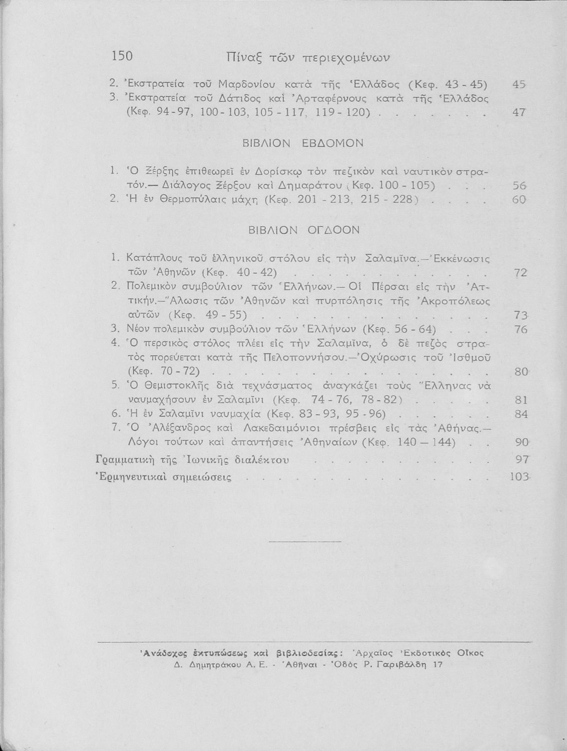 Εκλογαί εκ των Ιστοριών του Ηροδότου. Δια την Δ΄ Τάξιν των Εξατάξιων Γυμνασίων Νέου Τύπου