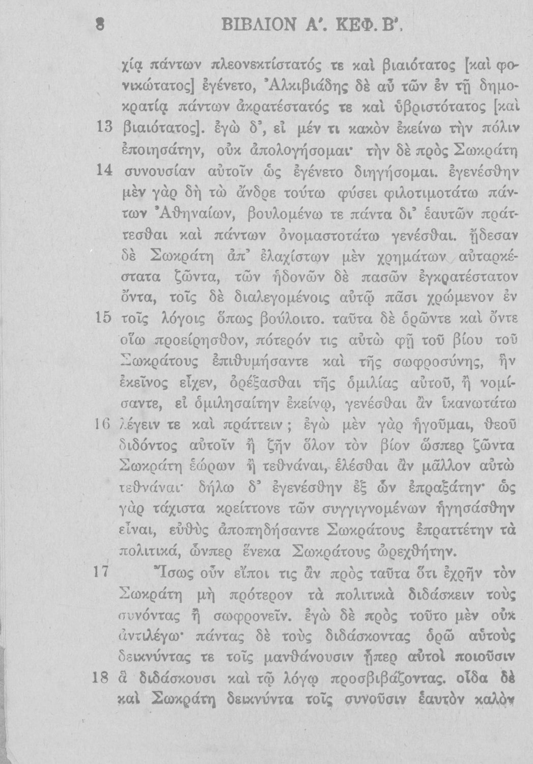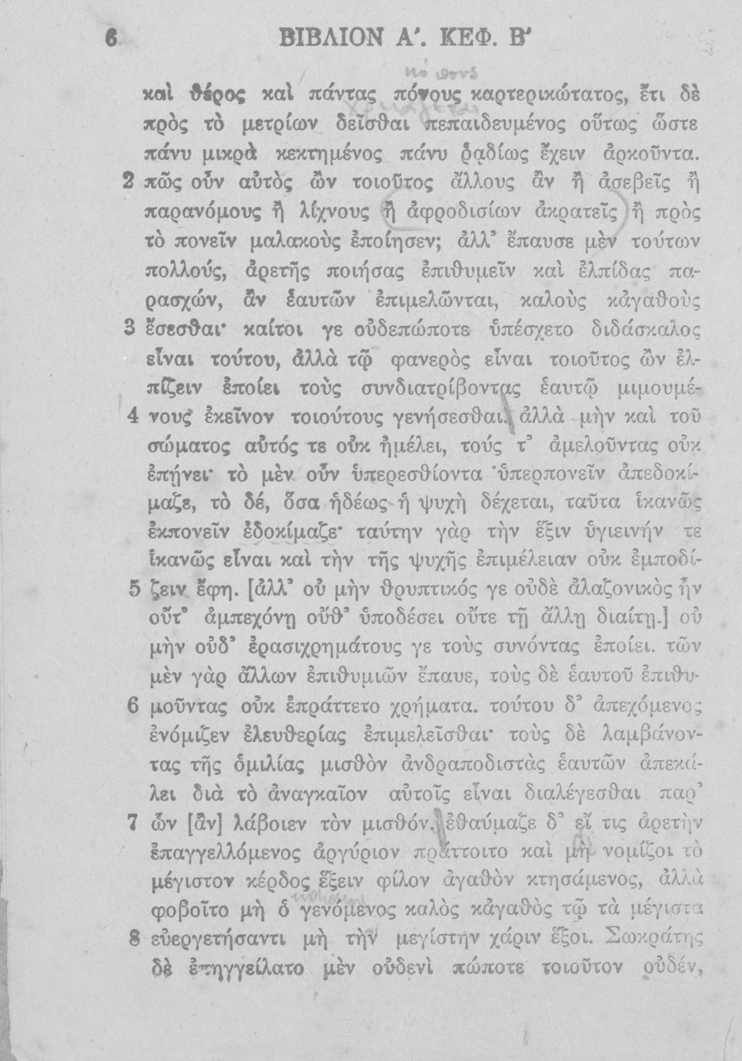 Βαθμίδα εκπαίδευσης: Δευτεροβάθμια Μάθημα: Αρχαία Ελληνικά Γλώσσα: Αρχαία Ελληνικά Παρουσίαση περιεχομένου: Σχολικό εγχειρίδιο Αρχαίων Ελληνικών για τη Δευτεροβάθμια Εκπαίδευση που περιέχει τα Απομνημονεύματα του Ξενοφώντα. |