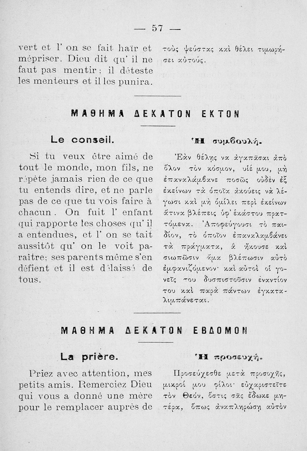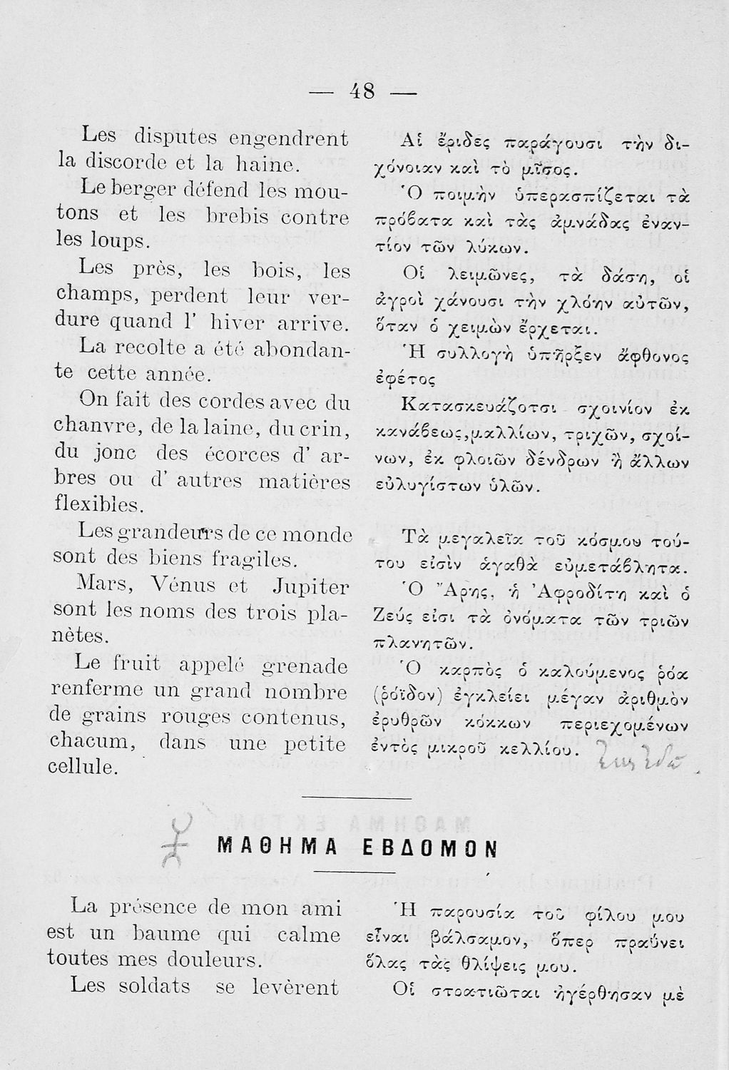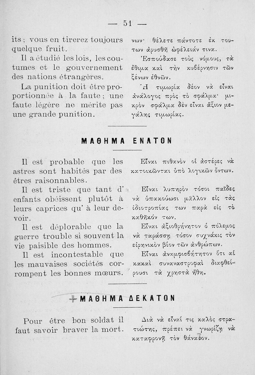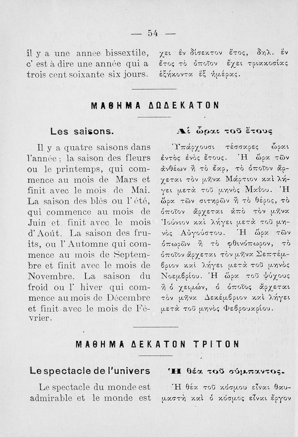 Αναγνωστικό Γαλλικών που περιλαμβάνει κείμενα στα γαλλικά και ελληνικά, θεωρία και λεξιλόγιο.