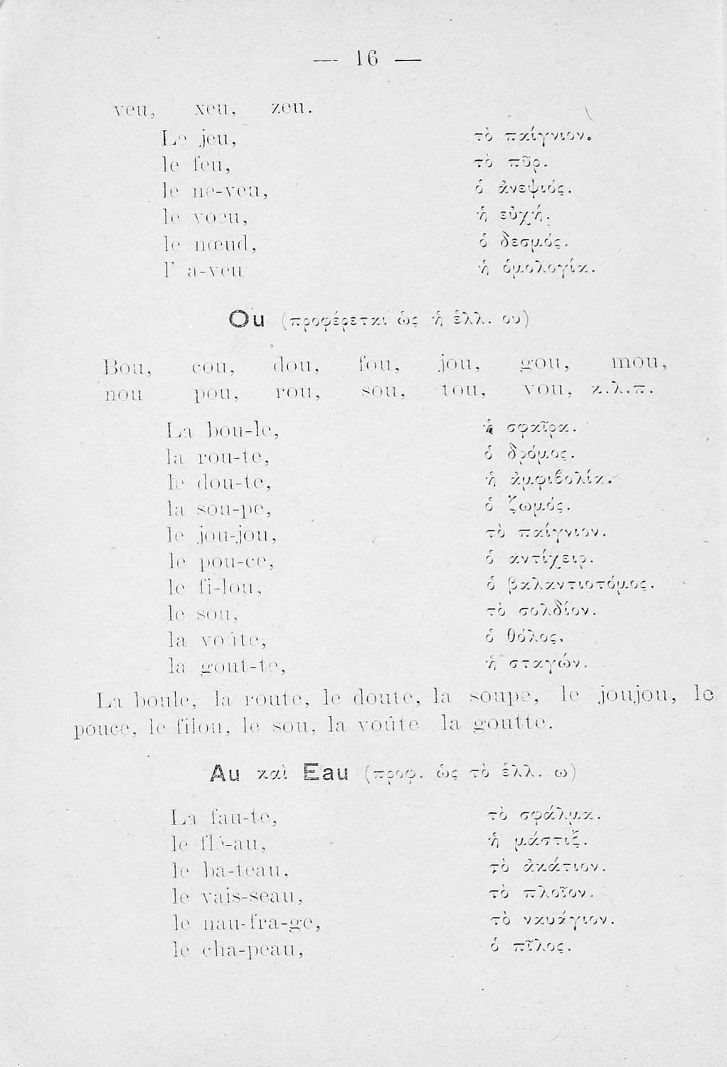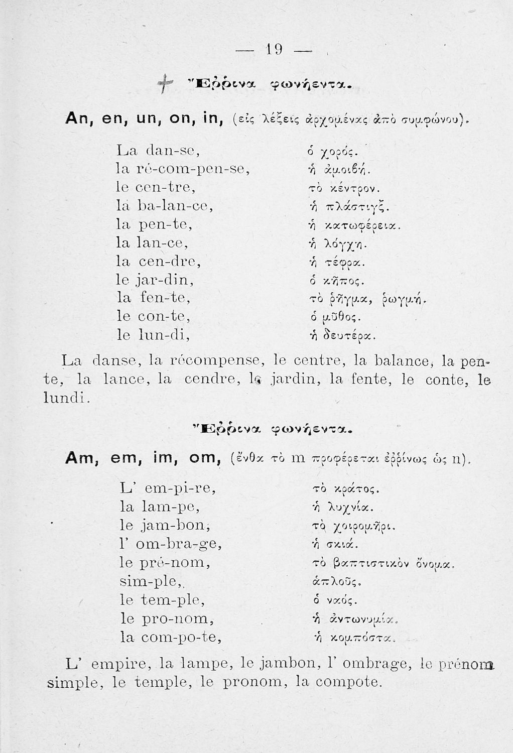Αναγνωστικό Γαλλικών που περιλαμβάνει κείμενα στα γαλλικά και ελληνικά, θεωρία και λεξιλόγιο.