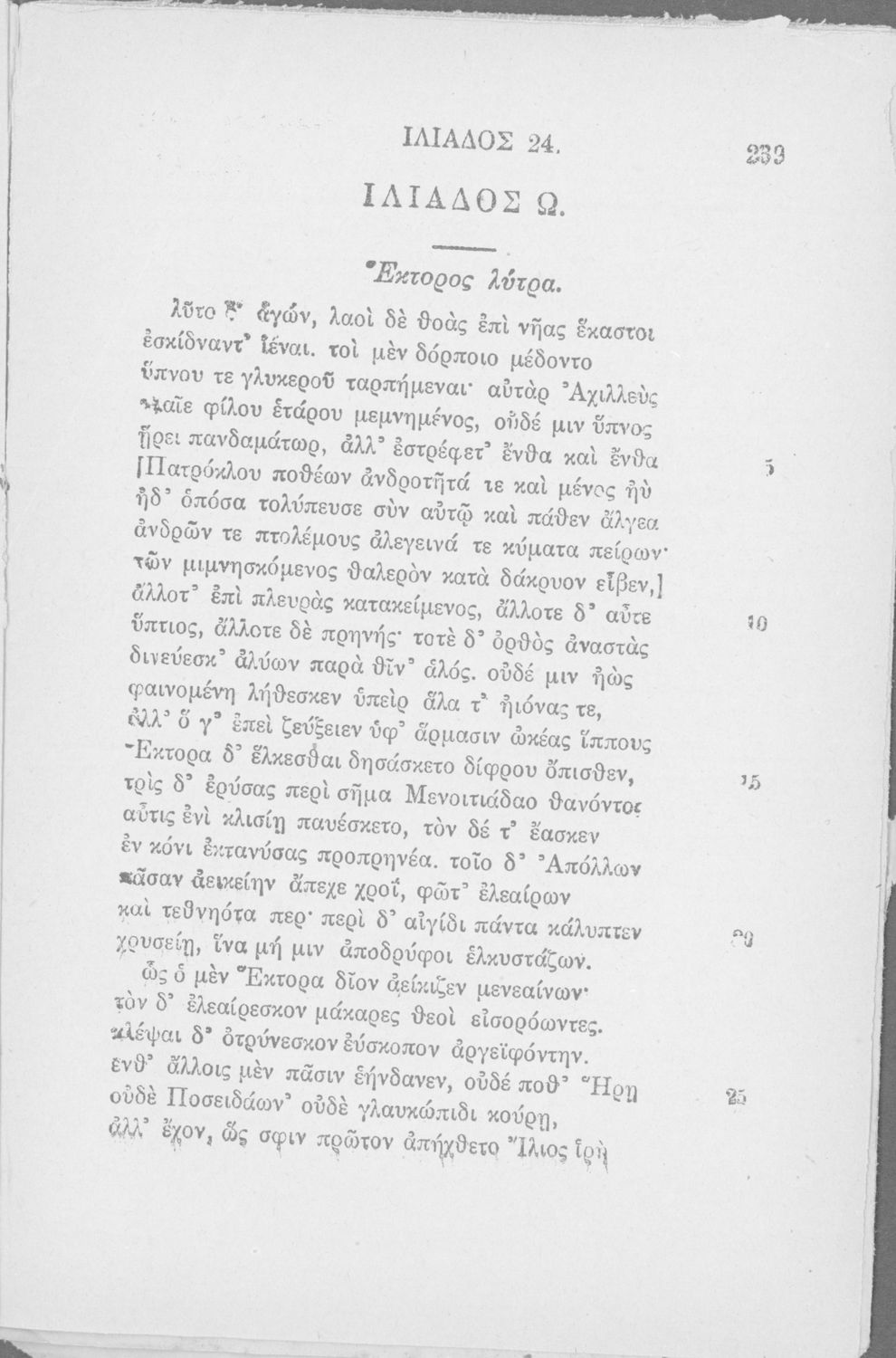 Έκδοση που περιλαμβάνει τις ραψωδίες Ν-Ω με ερμηνευτικές παρατηρήσεις κατά την έκδοση Guilielmi Dindorfil.
