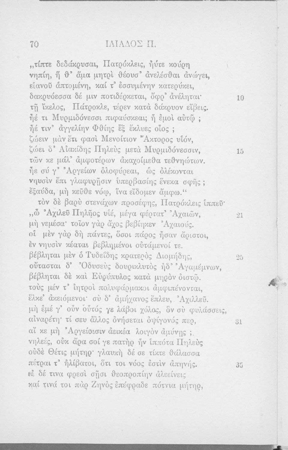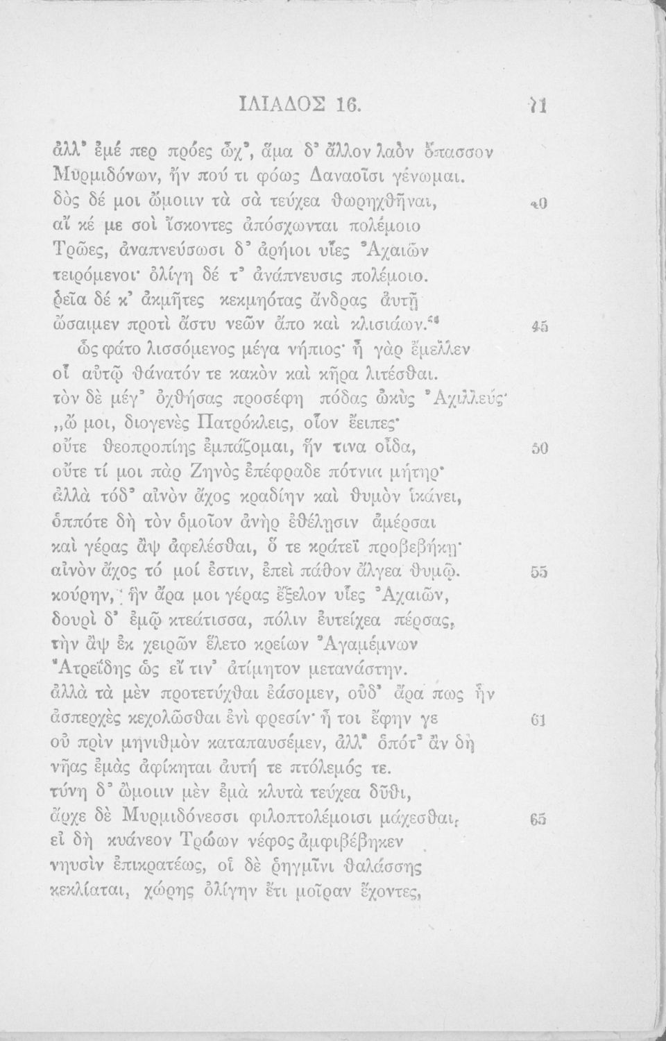 Σχολικό εγχειρίδιο Αρχαίων Ελληνικών Ε΄ Γυμνασίου που περιλαμβάνει αποσπάσματα από την Ιλιάδα, εισαγωγή και ασκήσεις. Περιέχει και παράρτημα εικόνων.