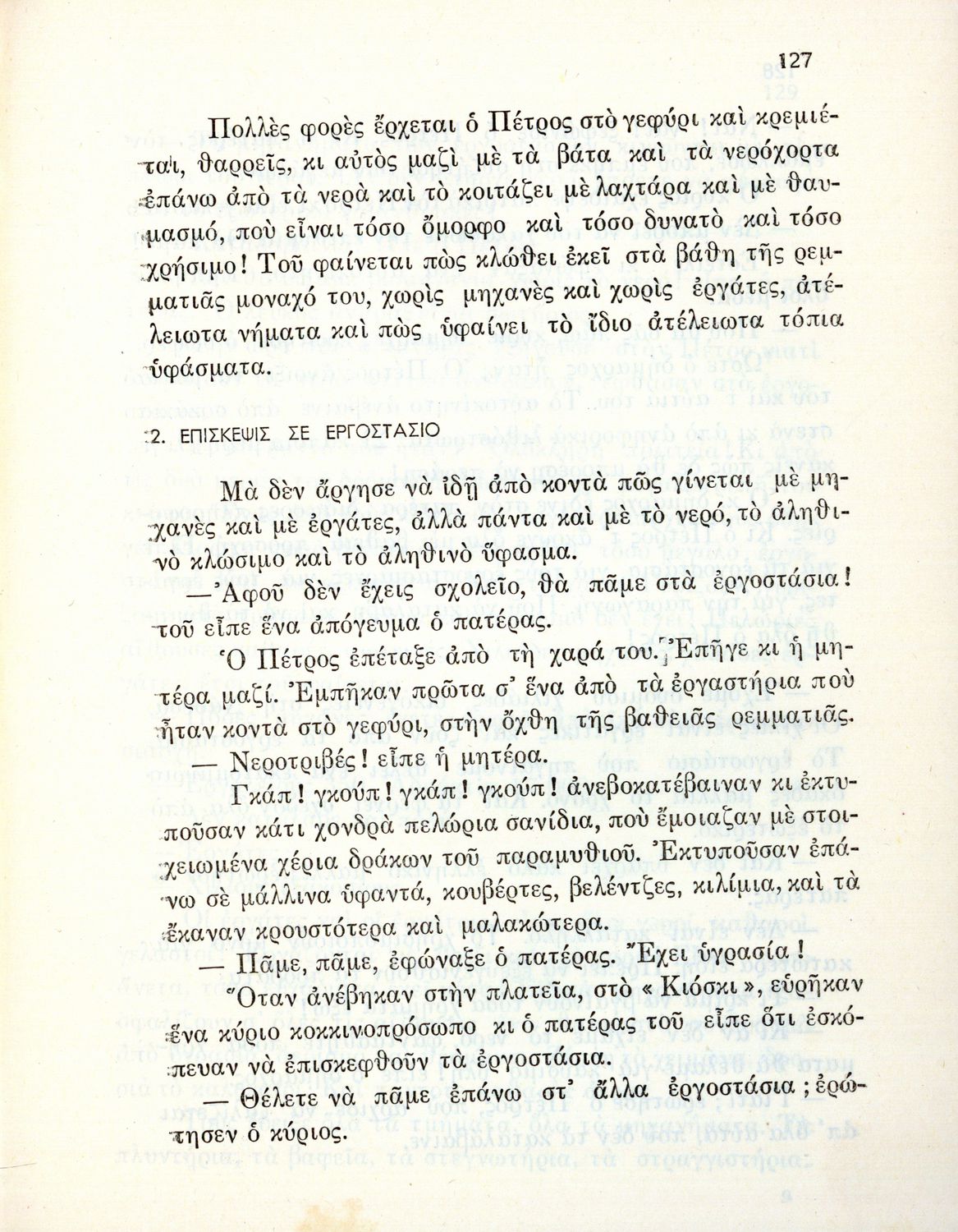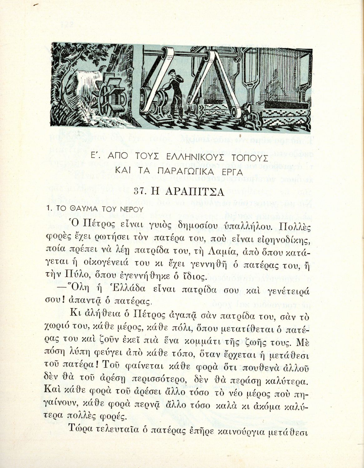 Αναγνωστικό Ε΄ Δημοτικού που περιέχει κείμενα εμπνευσμένα από την εθνική, κοινωνική και οικογενειακή ζωή και την ελληνική φύση, μυθολογία και ιστορία. Φέρει το σύμβολο της δικτατορίας.