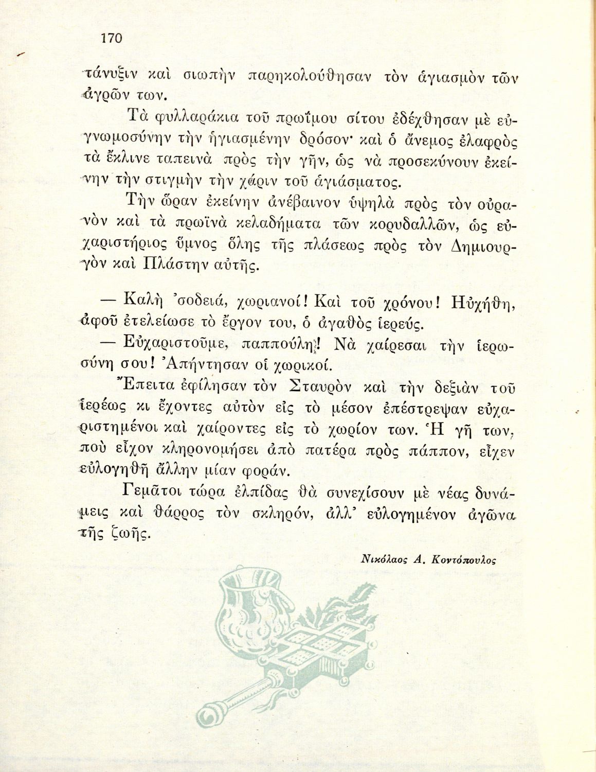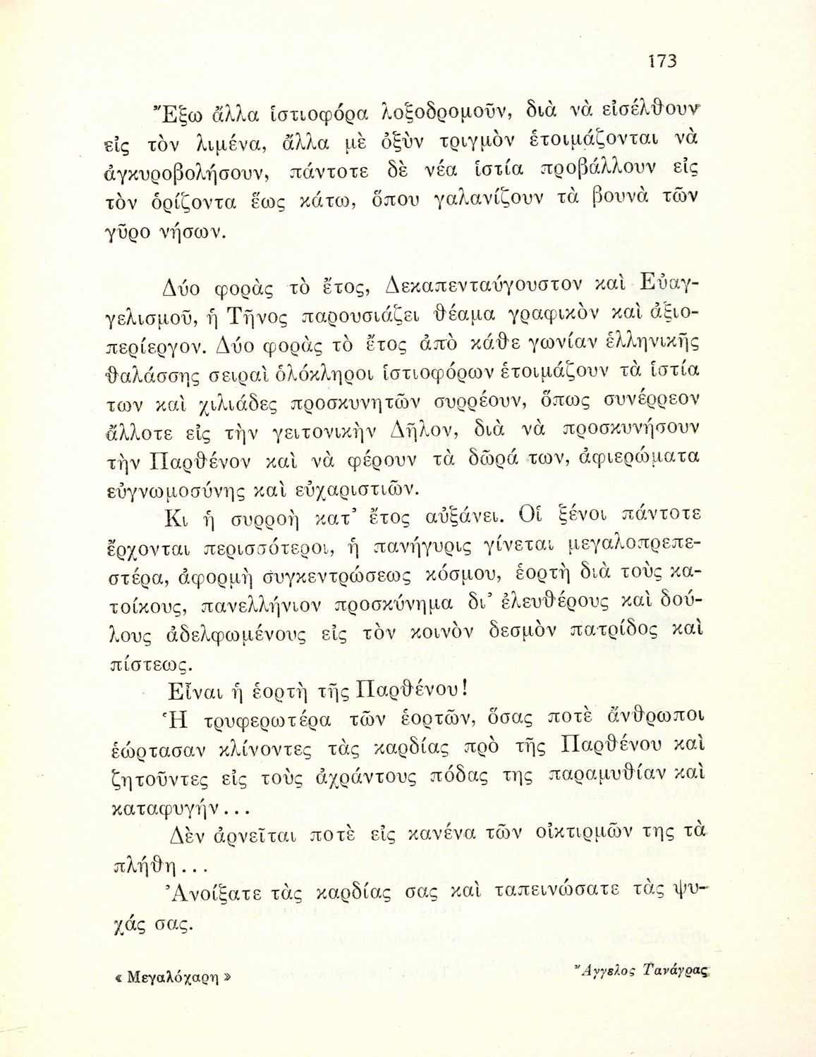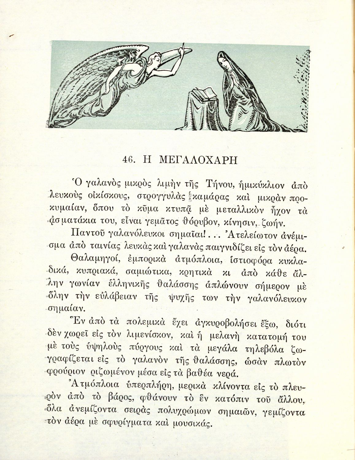Αναγνωστικό Ε΄ Δημοτικού που περιέχει κείμενα εμπνευσμένα από την εθνική, κοινωνική και οικογενειακή ζωή και την ελληνική φύση, μυθολογία και ιστορία.