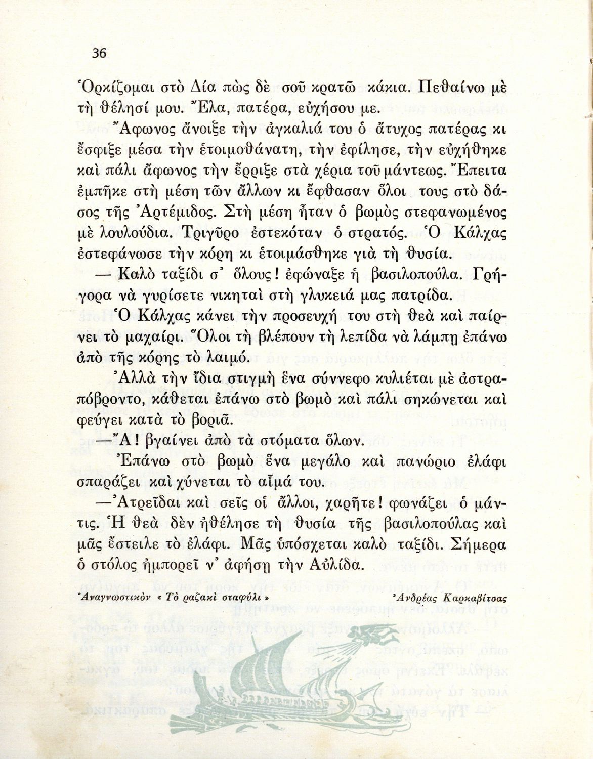 Αναγνωστικό Ε΄ Δημοτικού που περιέχει κείμενα εμπνευσμένα από την εθνική, κοινωνική και οικογενειακή ζωή και την ελληνική φύση, μυθολογία και ιστορία.