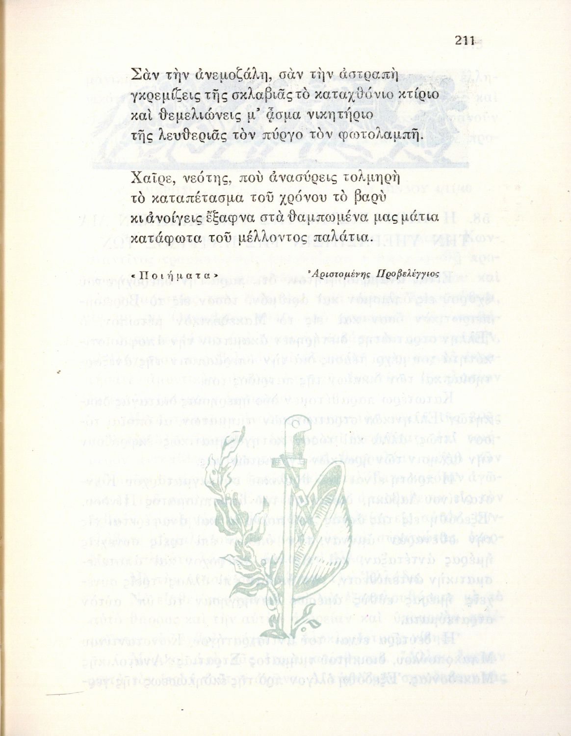 Αναγνωστικό Ε΄ Δημοτικού που περιέχει κείμενα εμπνευσμένα από την εθνική, κοινωνική και οικογενειακή ζωή και την ελληνική φύση, μυθολογία και ιστορία.