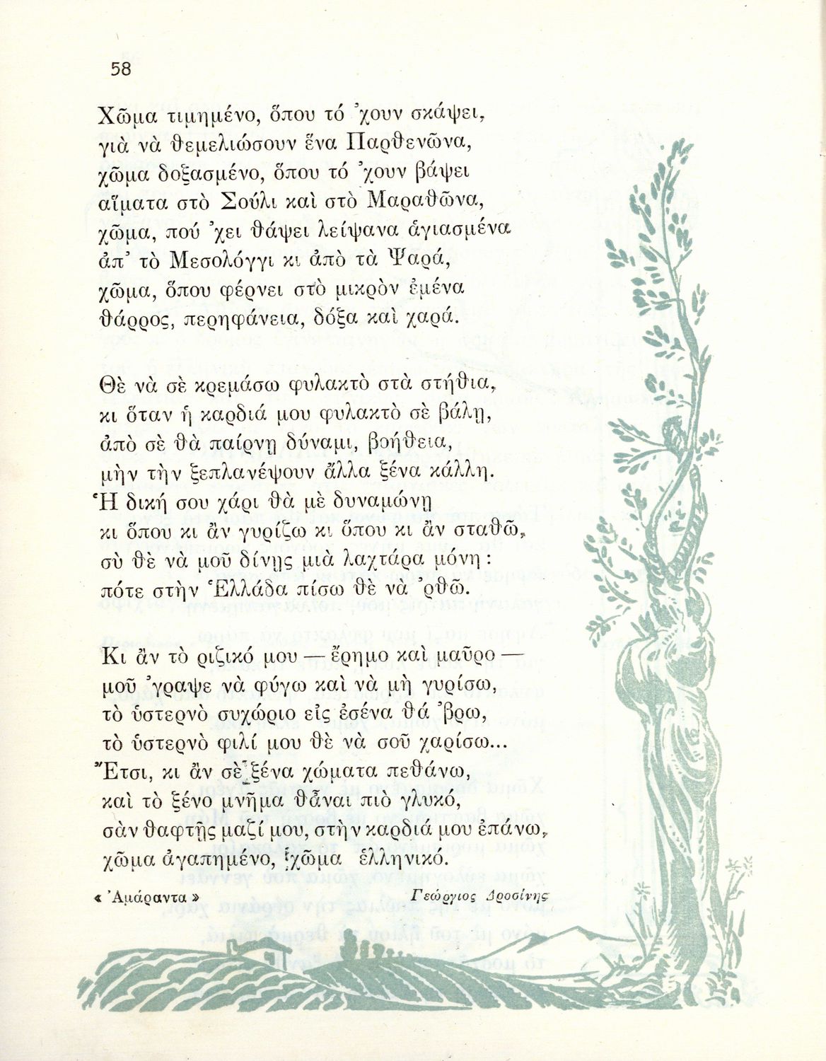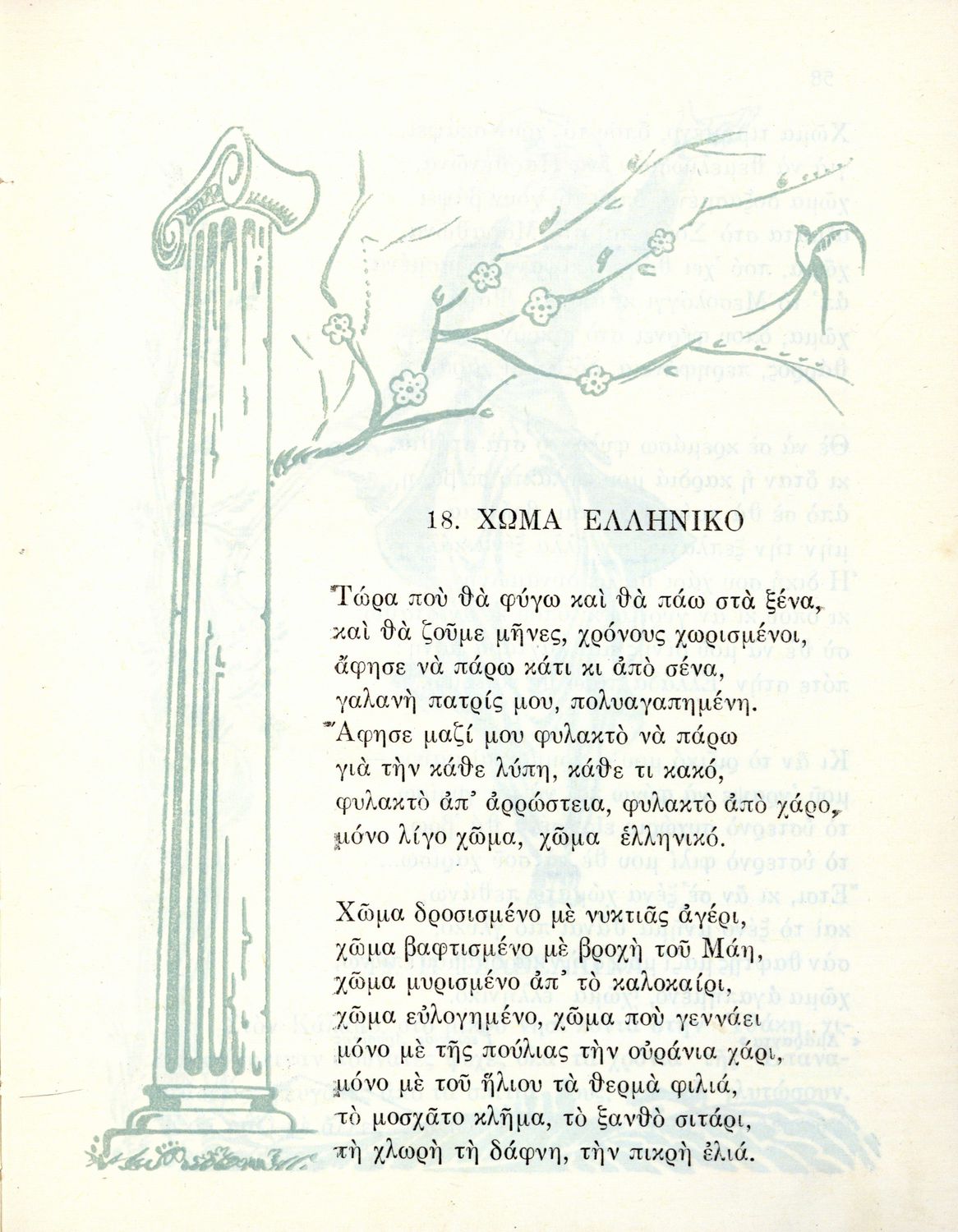 Αναγνωστικό για τους μαθητές της Ε΄ Δημοτικού που περιλαμβάνει ποιήματα και πεζά με θέματα από την οικογενειακή, κοινωνική, πολιτιστική και ιδιωτική ζωή των Ελλήνων, τη φύση, την ιστορία και την θρησκεία τους.