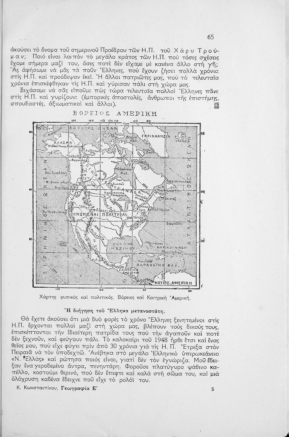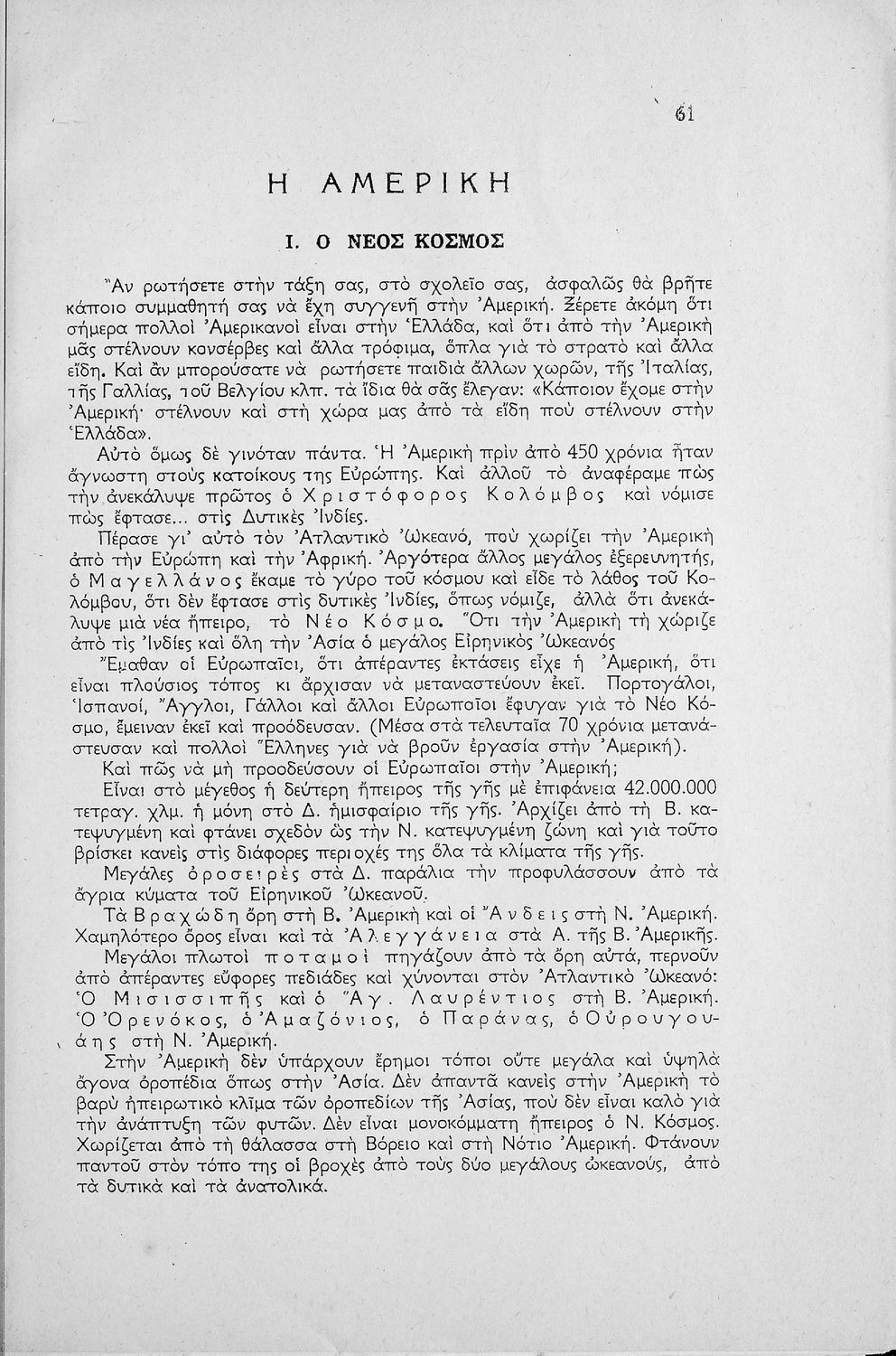 Πρόκειται για σχολικό εγχειρίδιο το οποίο μέσα από πλούσια εικονογράφηση προοριζόταν για τη διδασκαλία του μαθήματος της Γεωγραφίας στην Ε΄ και ΣΤ΄ Δημοτικού. Φέρει την υπογραφή του συγγραφέα και τη σφραγίδα ...