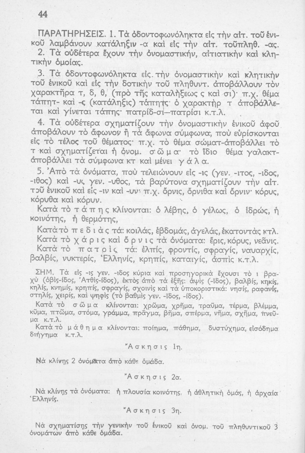 Παρουσίαση περιεχομένου: Μαθητικό βοήθημα Δημοτικού που περιέχει θεωρία και ασκήσεις της γραμματικής για την εκμάθηση της καθαρεύουσας.