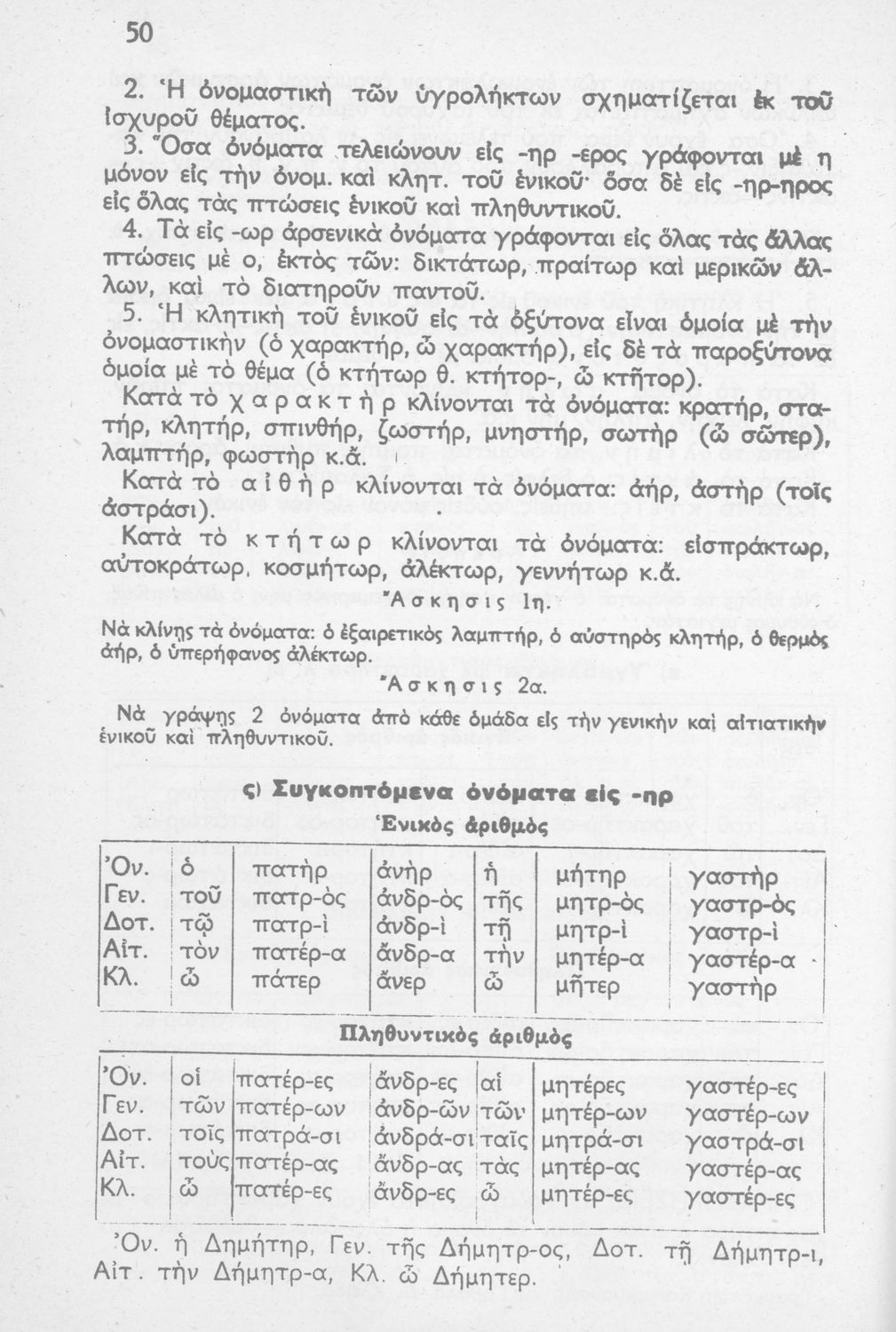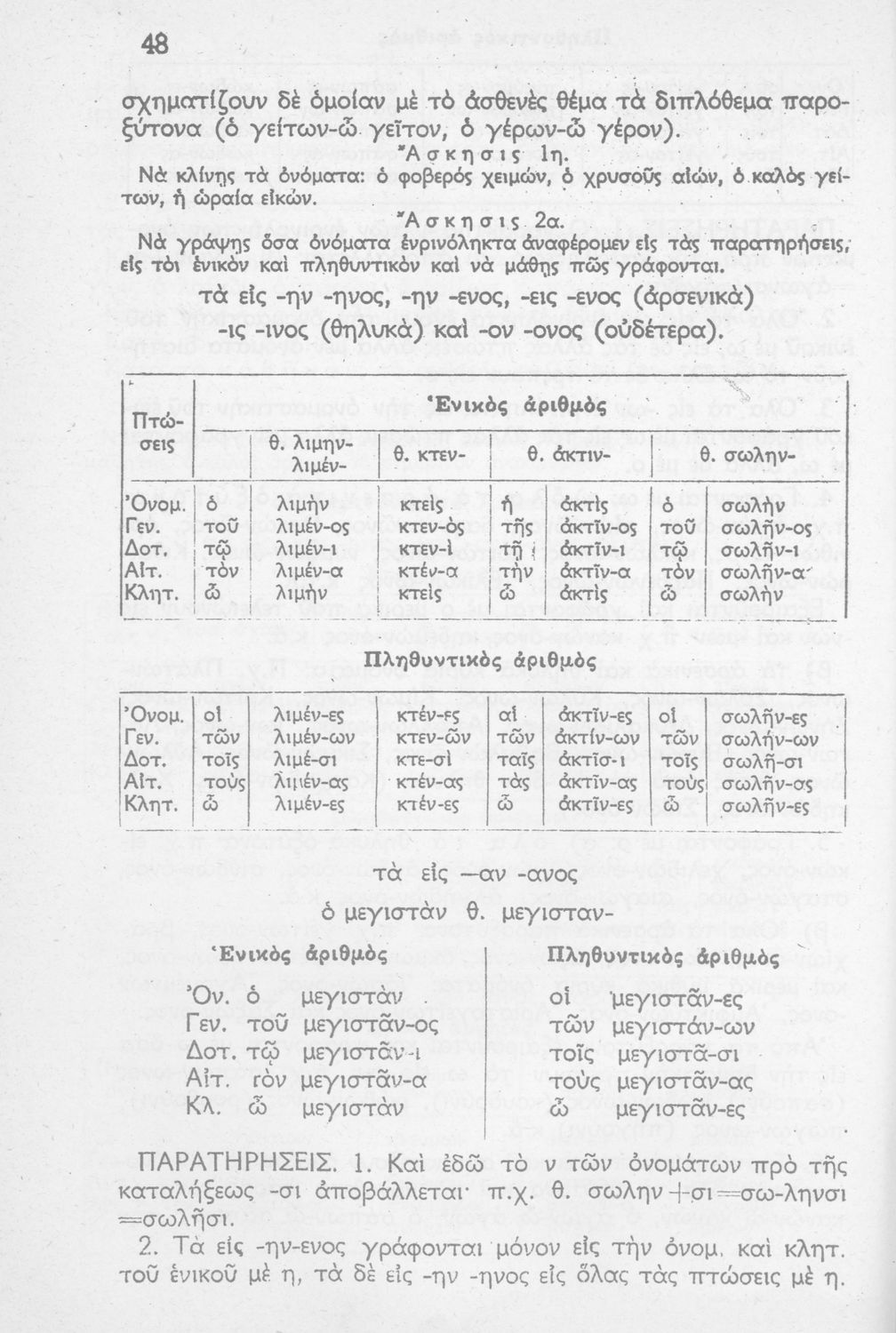 Μαθητικό βοήθημα Δημοτικού που περιέχει θεωρία και ασκήσεις της γραμματικής για την εκμάθηση της καθαρεύουσας.