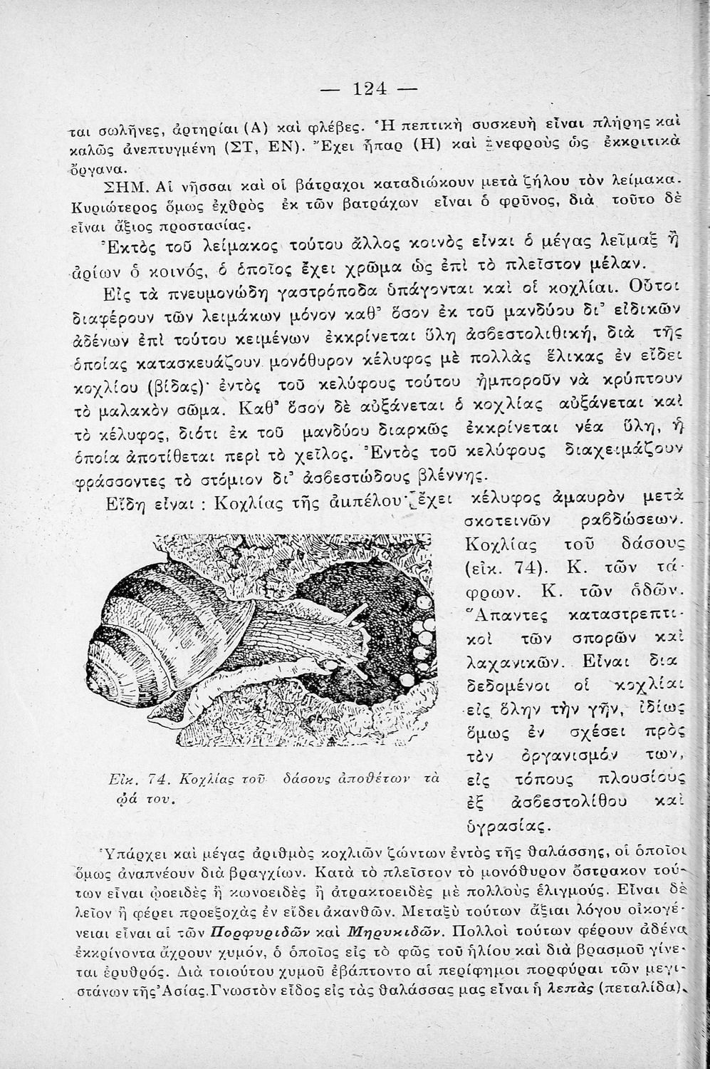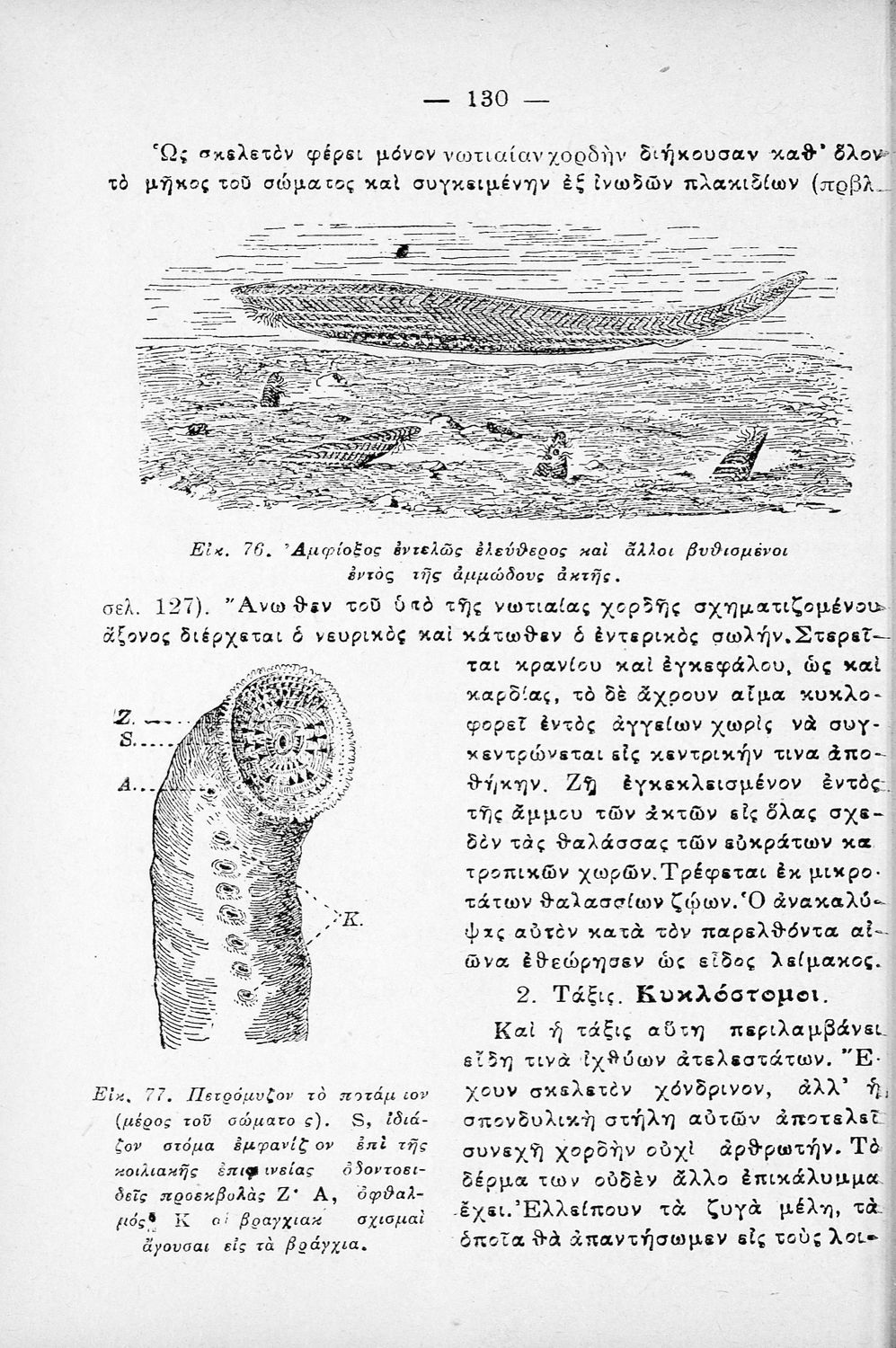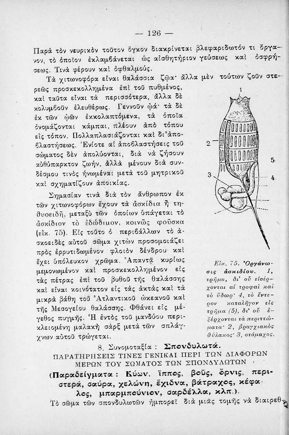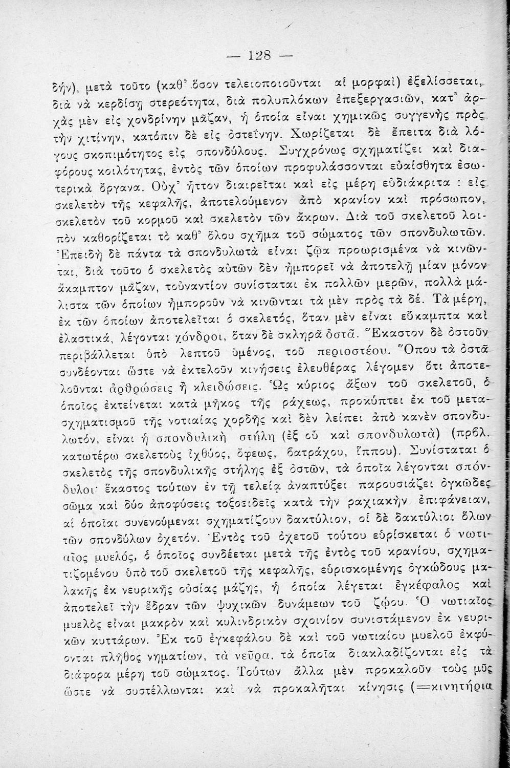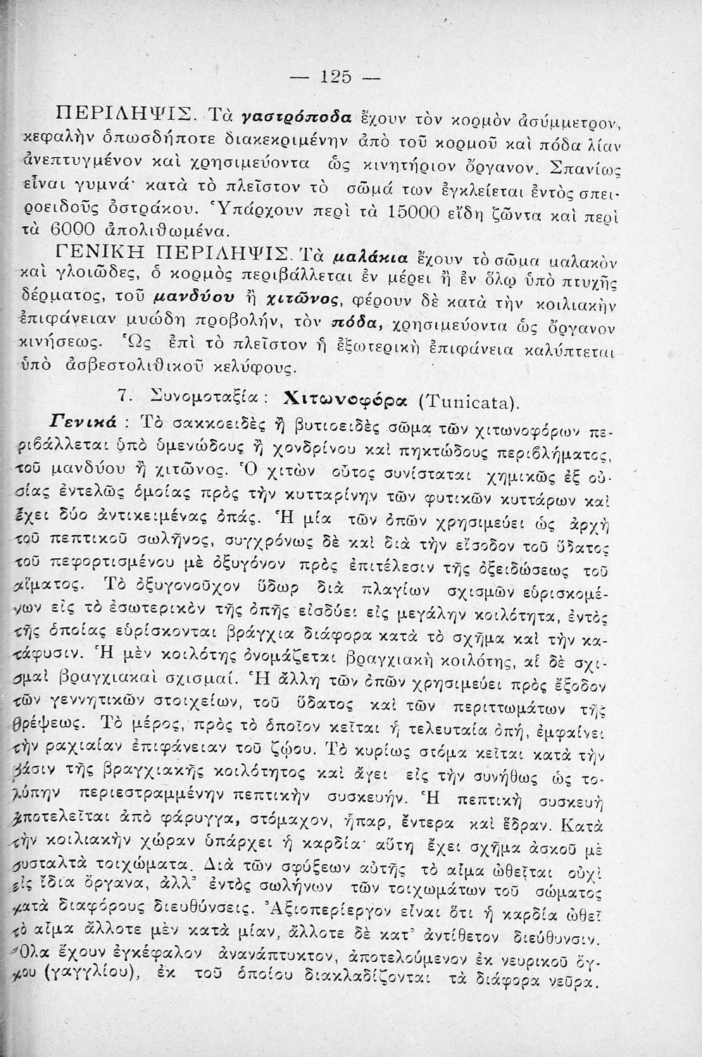 Βαθμίδα εκπαίδευσης: Δευτεροβάθμια Τάξη: Γ’ Γυμνασίου Μάθημα: Ζωολογία Γλώσσα: Καθαρεύουσα Παρουσίαση περιεχομένου: Σχολικό εγχειρίδιο Ζωολογίας Γ΄ Γυμνασίου που παρουσιάζει τα διάφορα ζώα ανάλογα με την συνομοταξία στην οποία ανήκουν. |