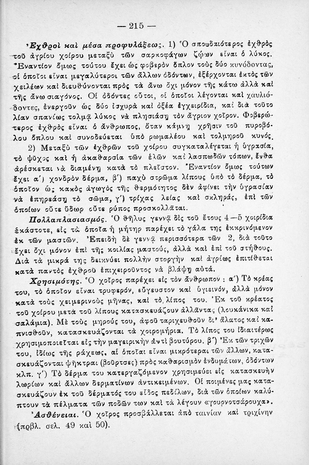 Βαθμίδα εκπαίδευσης: Δευτεροβάθμια Τάξη: Γ’ Γυμνασίου Μάθημα: Ζωολογία Γλώσσα: Καθαρεύουσα Παρουσίαση περιεχομένου: Σχολικό εγχειρίδιο Ζωολογίας Γ΄ Γυμνασίου που παρουσιάζει τα διάφορα ζώα ανάλογα με την συνομοταξία στην οποία ανήκουν. |