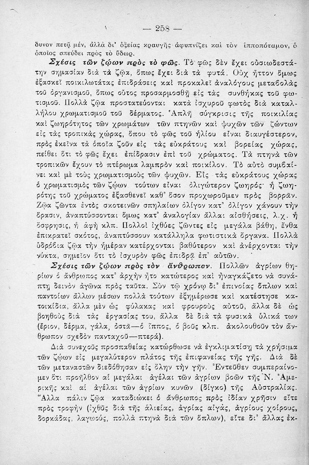 Σχολικό εγχειρίδιο Ζωολογίας για τα Γυμνάσια και τα Διδασκαλεία που εστιάζει στην ανθρώπινη φυσιολογία και παρουσιάζει τα διάφορα ζώα ανάλογα με την συνομοταξία στην οποία ανήκουν.
