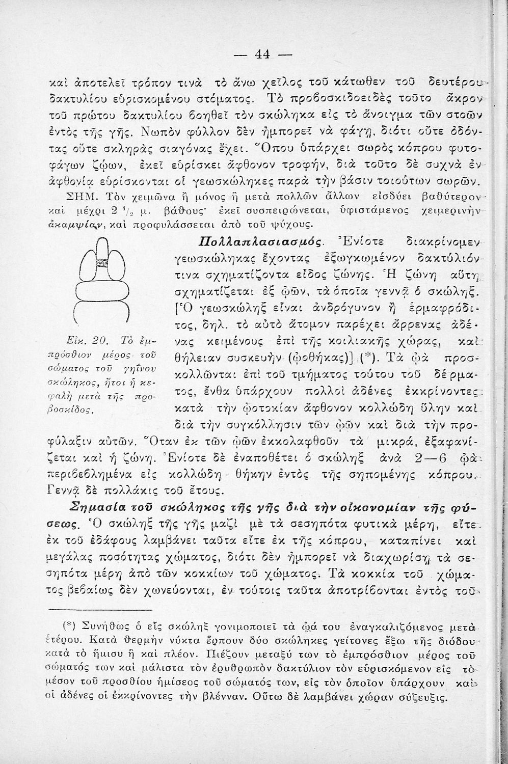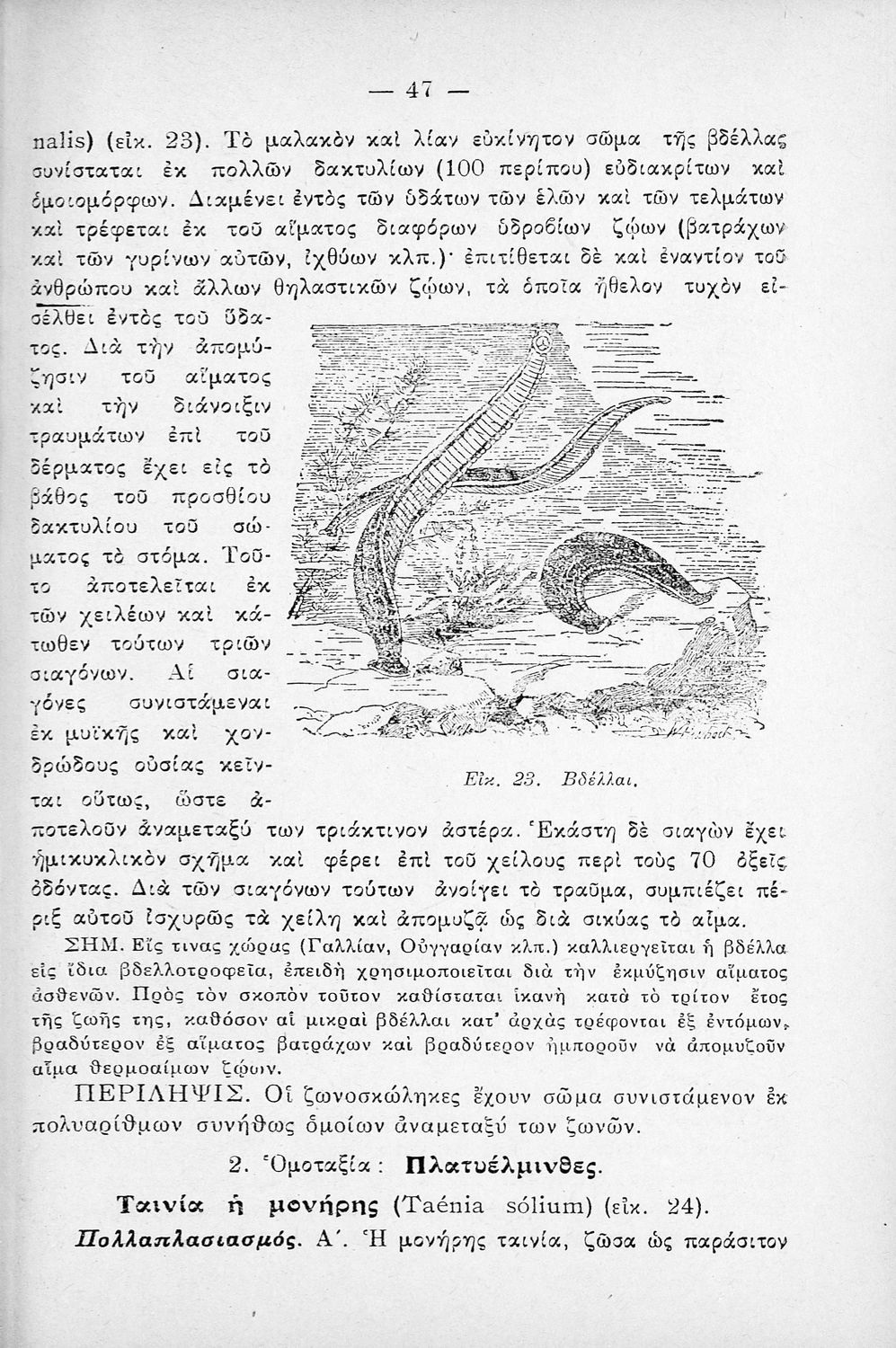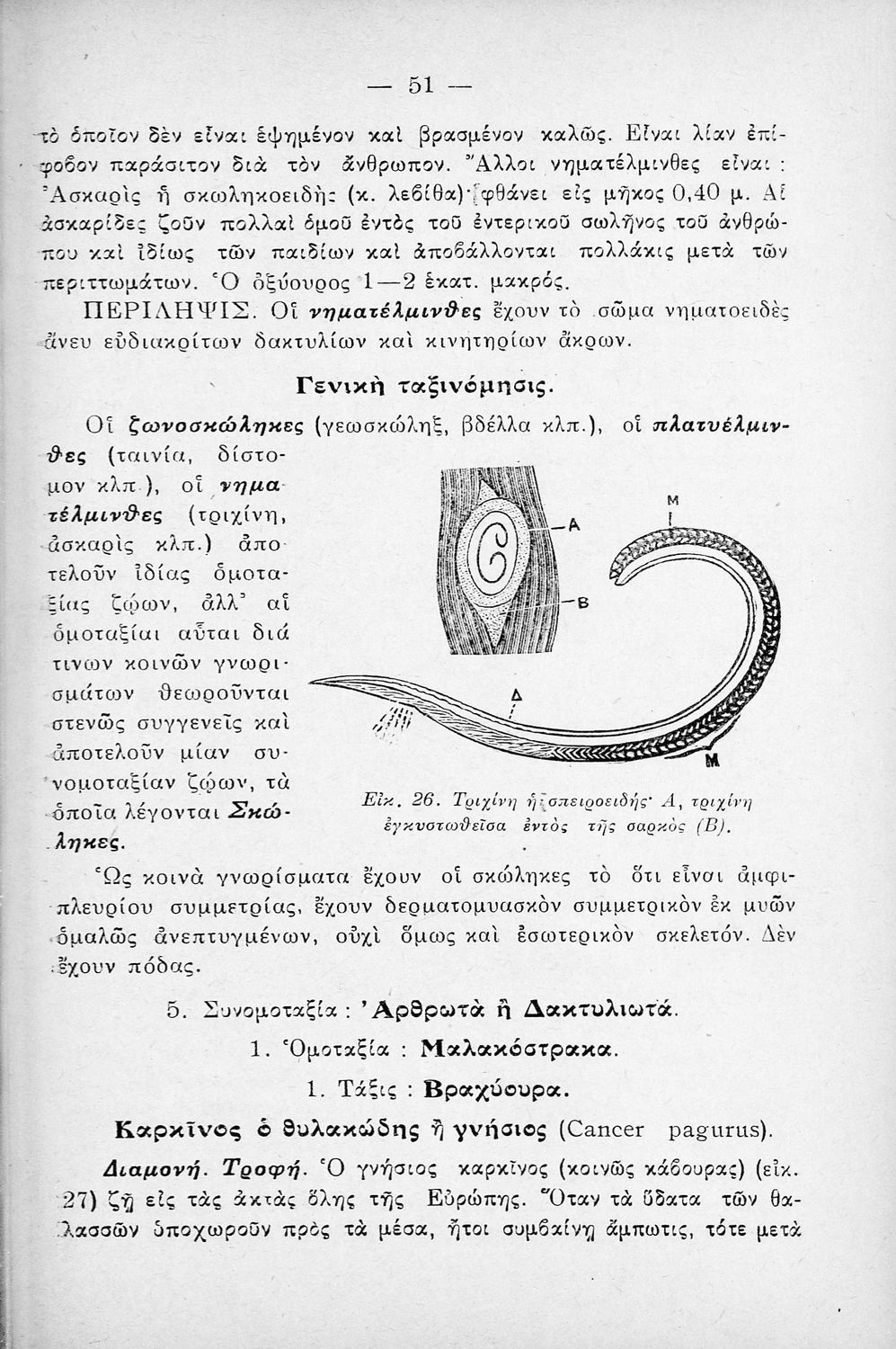 Κωδικός αναγνώρισης: 01-45197 Τίτλος: Μεθοδικόν εγχειρίδιον ζωολογίας προς χρήσιν των μαθητών της τρίτης τάξεως των Εξαταξίων Γυμνασίων Συγγραφέας: Π. Γ. Τσιλήθρας Μέγεθος και υπόστρωμα: Σχολικό εγχειρίδιο, 20εκ., σκληρό εξώφυλλο, 263 σελίδες. Σκίτσα (ασπρόμαυρα). |