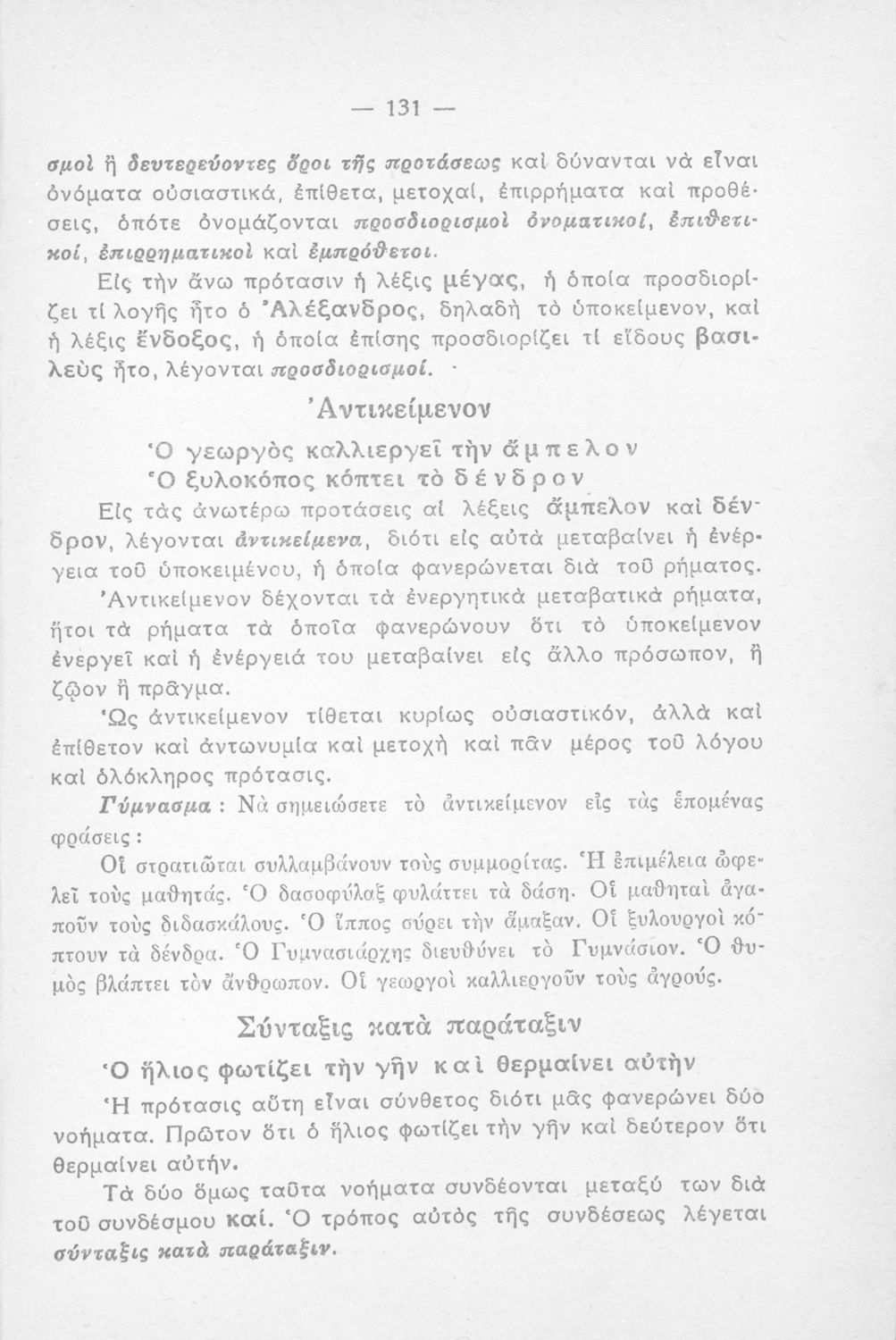Βαθμίδα εκπαίδευσης: Πρωτοβάθμια Τάξη: Ε' Δημοτικού / ΣΤ' Δημοτικού Μάθημα: Νέα Ελληνικά Γλώσσα: Απλή καθαρεύουσα Παρουσίαση περιεχομένου: Μαθητικό βοήθημα Ε' και ΣΤ΄ Δημοτικού που περιλαμβάνει τους κανόνες γραμματικής της καθαρεύουσας. |