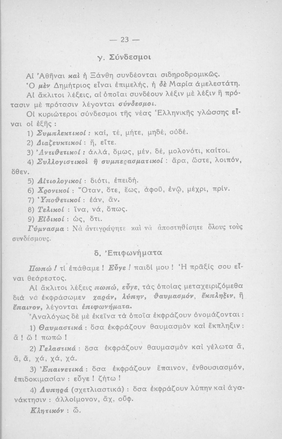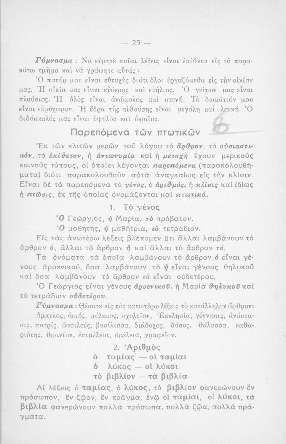 Μαθητικό βοήθημα Γλώσσας Ε΄ και ΣΤ ΄ Δημοτικού που περιλαμβάνει της γραμματική της καθαρεύουσας και ασκήσεις. Ο συγγραφέας ήταν πρώην Επιθεωρητής Δημοτικών Σχολείων