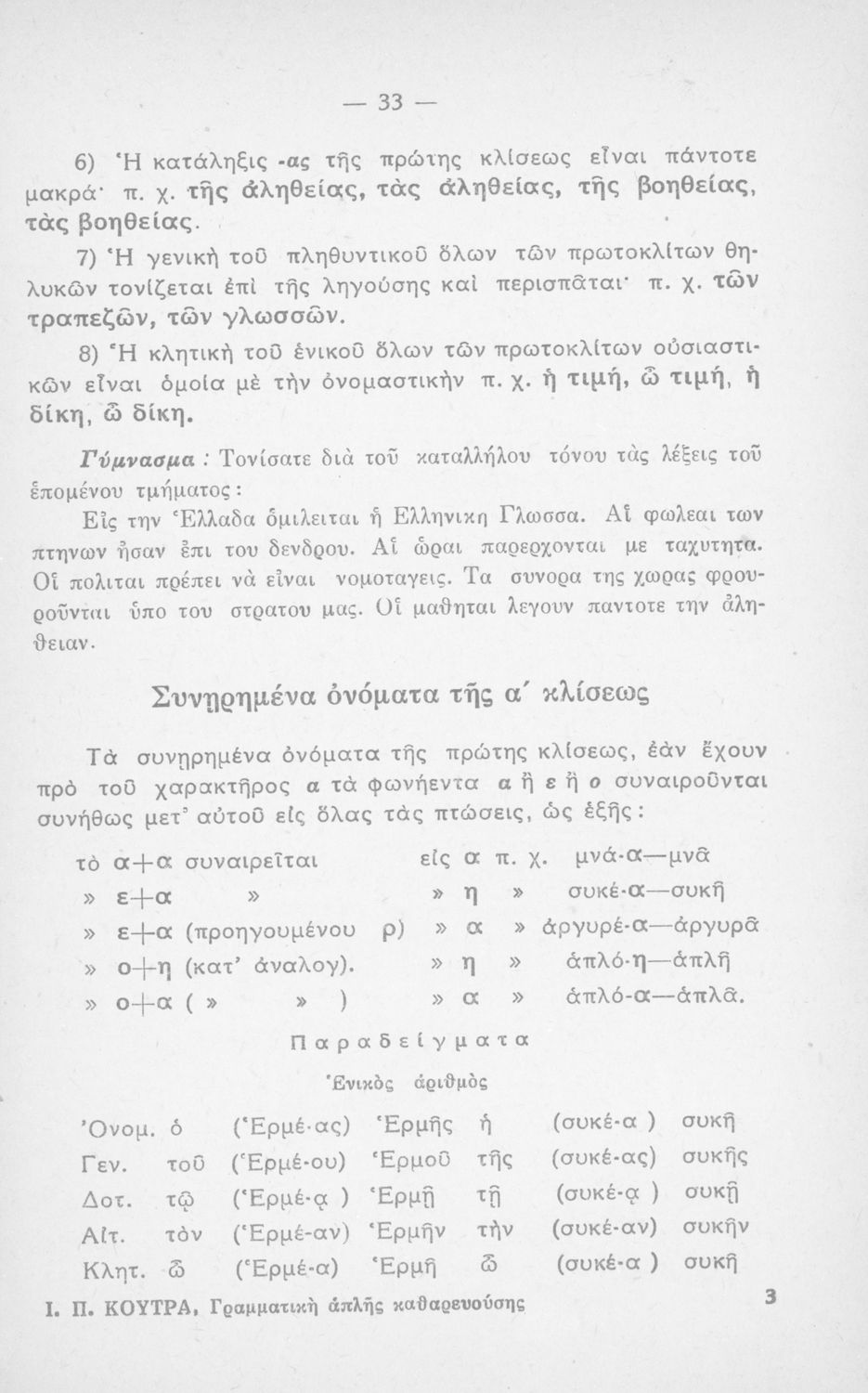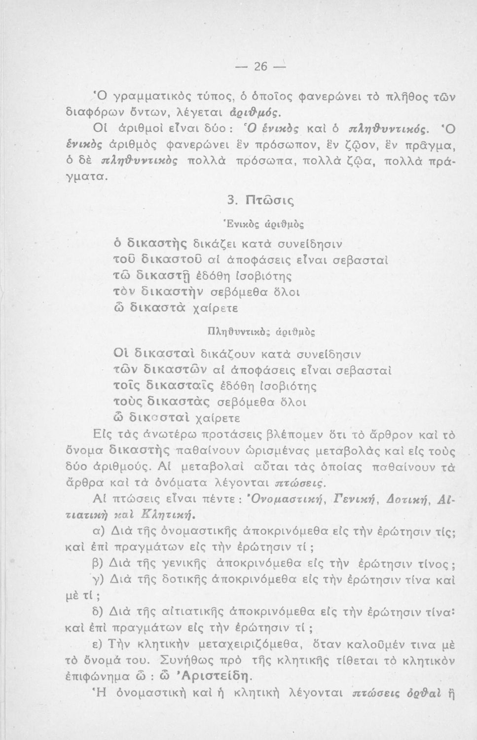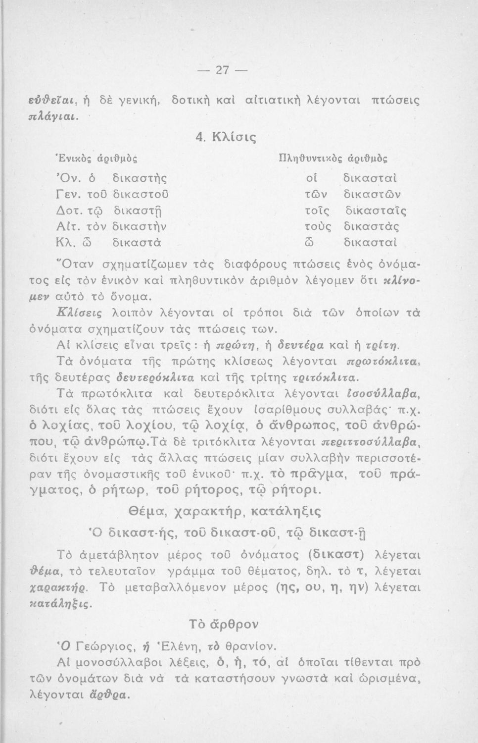 Μαθητικό βοήθημα Ε΄ και ΣΤ΄ Δημοτικού που περιέχει τη γραμματικής της απλής Καθαρεύουσας.