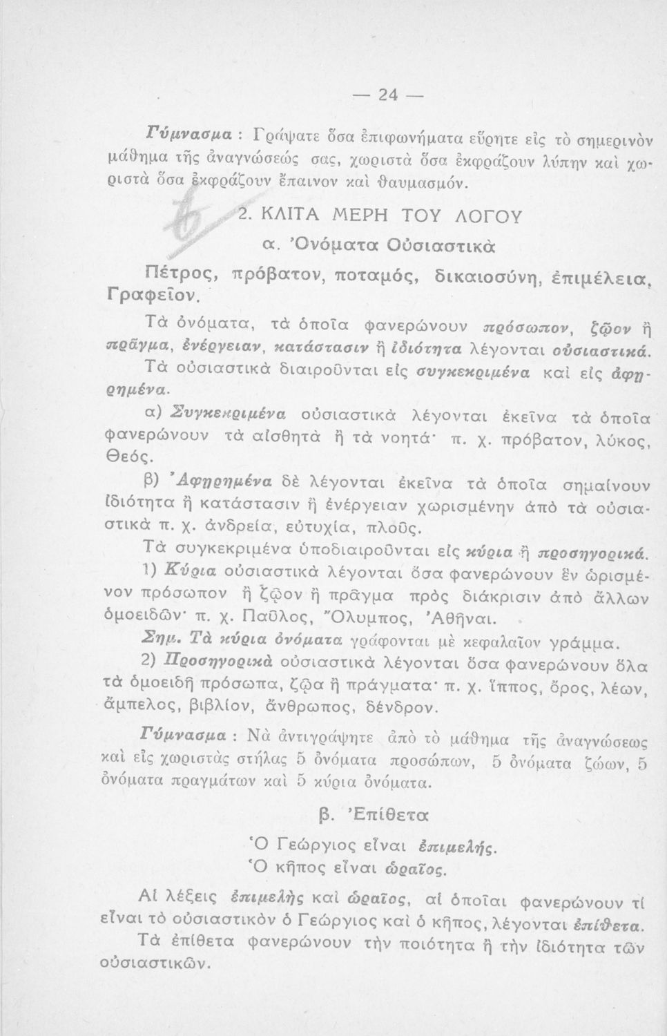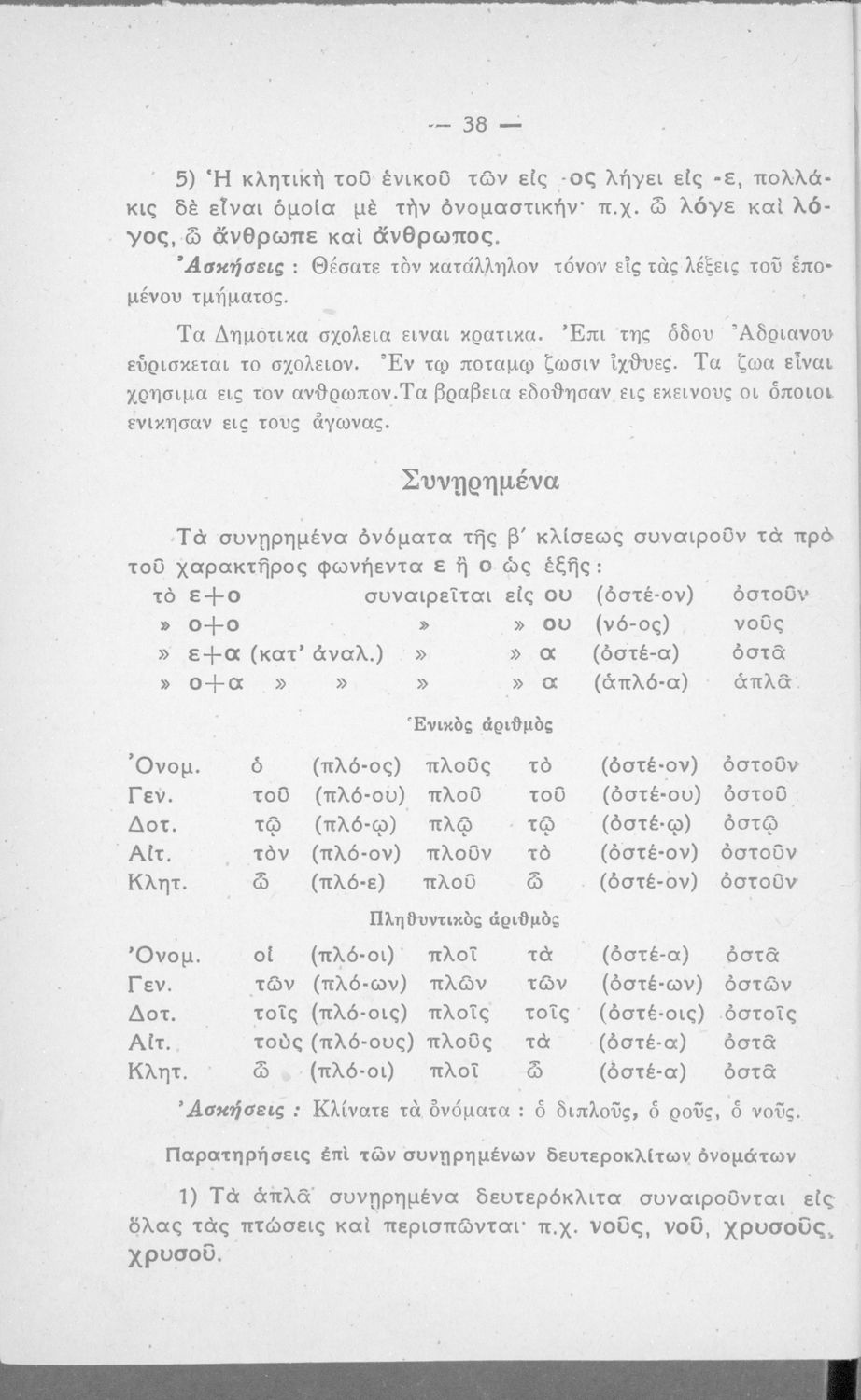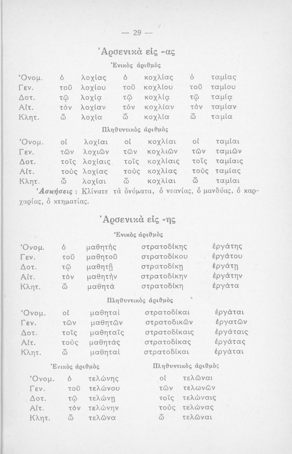 Μαθητικό βοήθημα Ε΄ και ΣΤ΄ Δημοτικού που περιέχει τη γραμματικής της απλής Καθαρεύουσας.