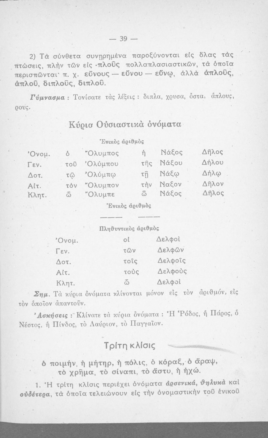 Σχετιζόμενοι όροι:  πτώσεις, ουσιαστικά, επίθετα, ρήματα