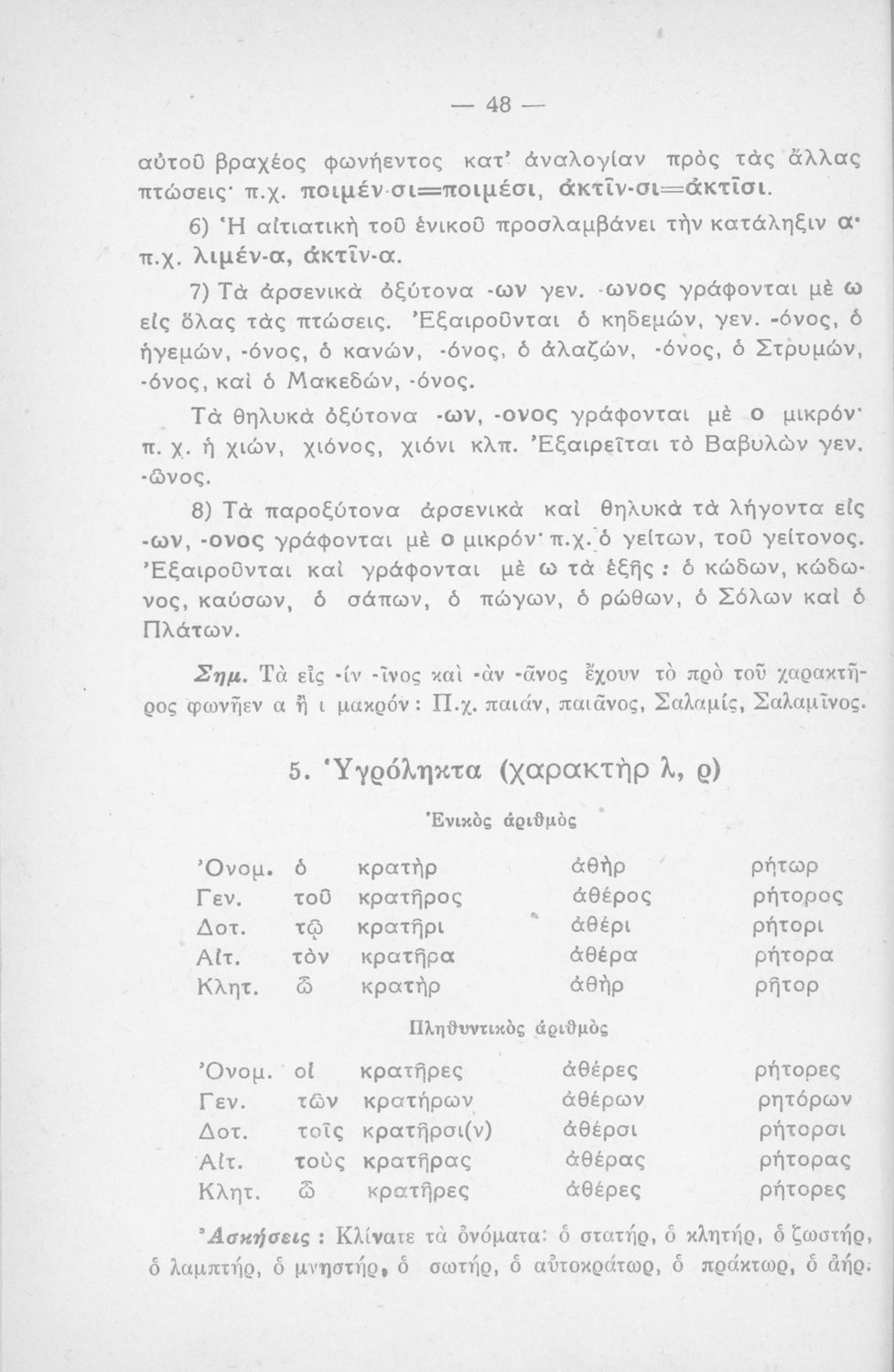 Μαθητικό βοήθημα Ε' και ΣΤ΄ Δημοτικού που περιλαμβάνει τους κανόνες γραμματικής της καθαρεύουσας.