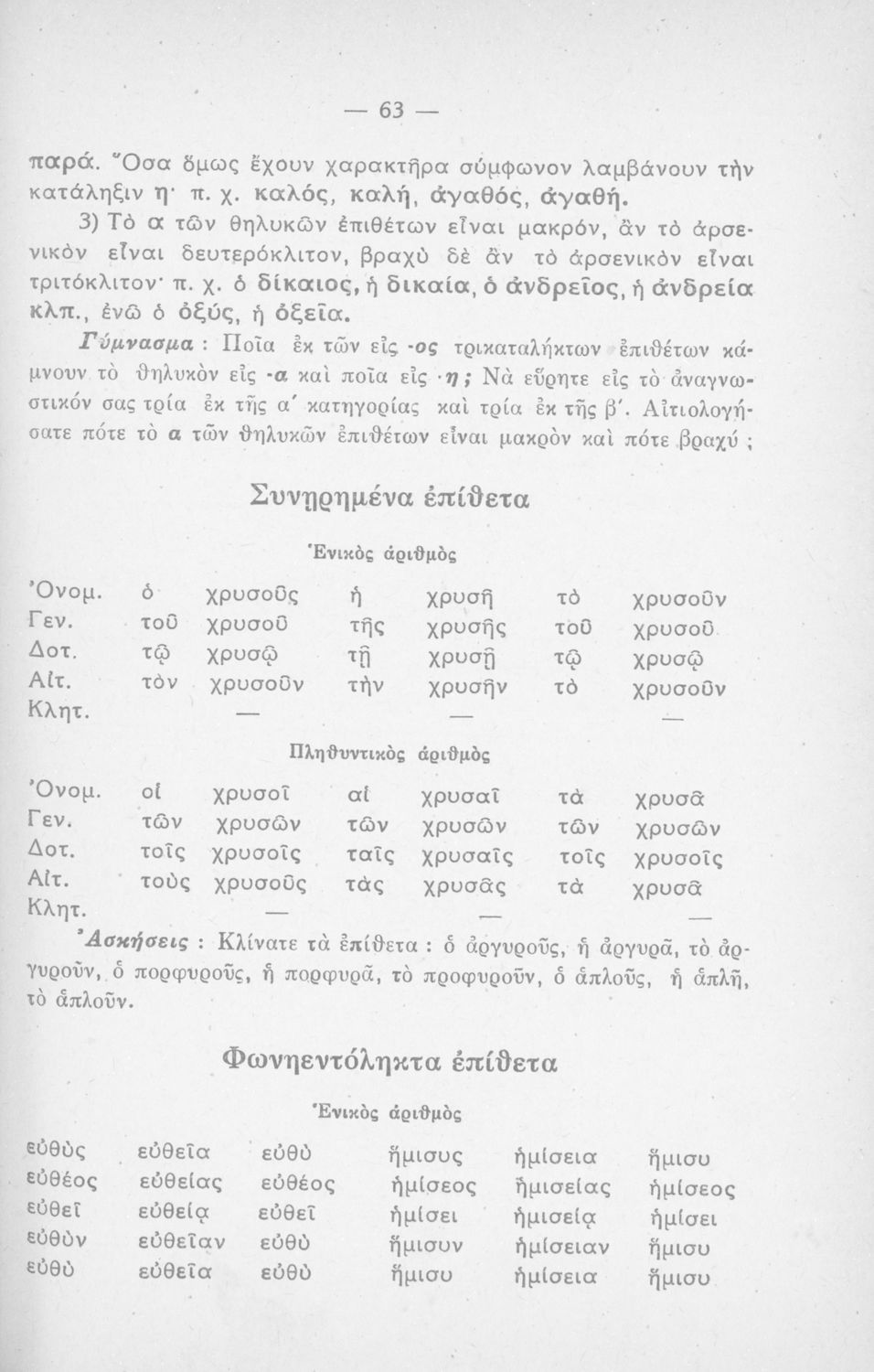 Μαθητικό βοήθημα Γραμματικής Ε΄ και ΣΤ΄ Δημοτικού που περιέχει θεωρία και ασκήσεις της γραμματικής για την εκμάθηση της καθαρεύουσας.
