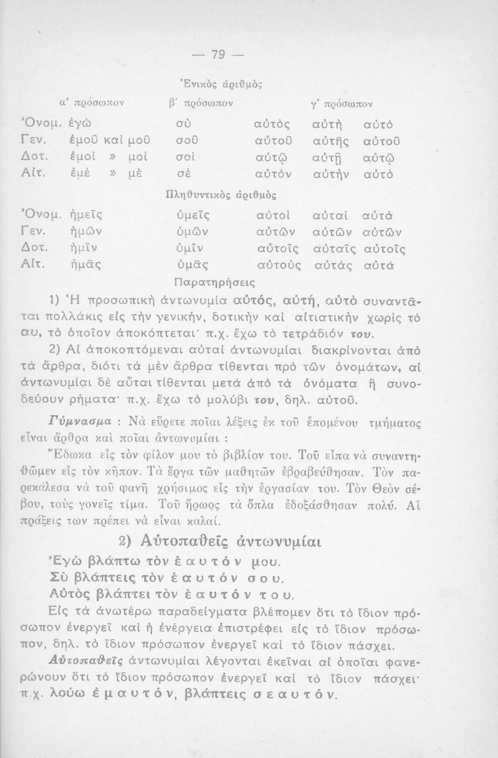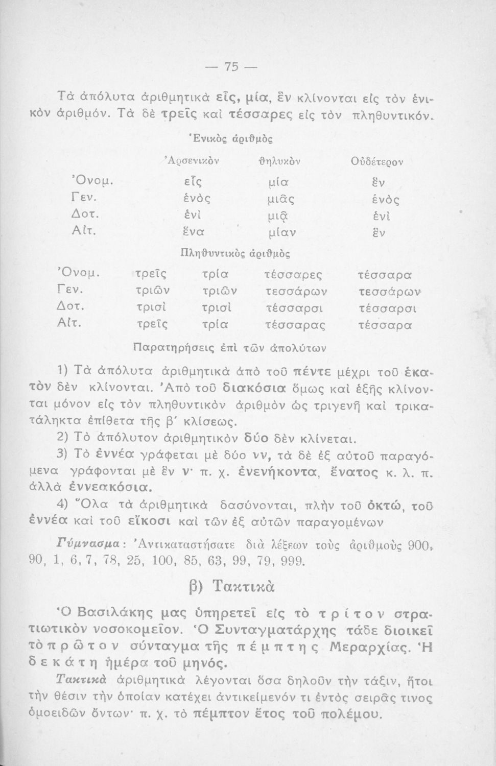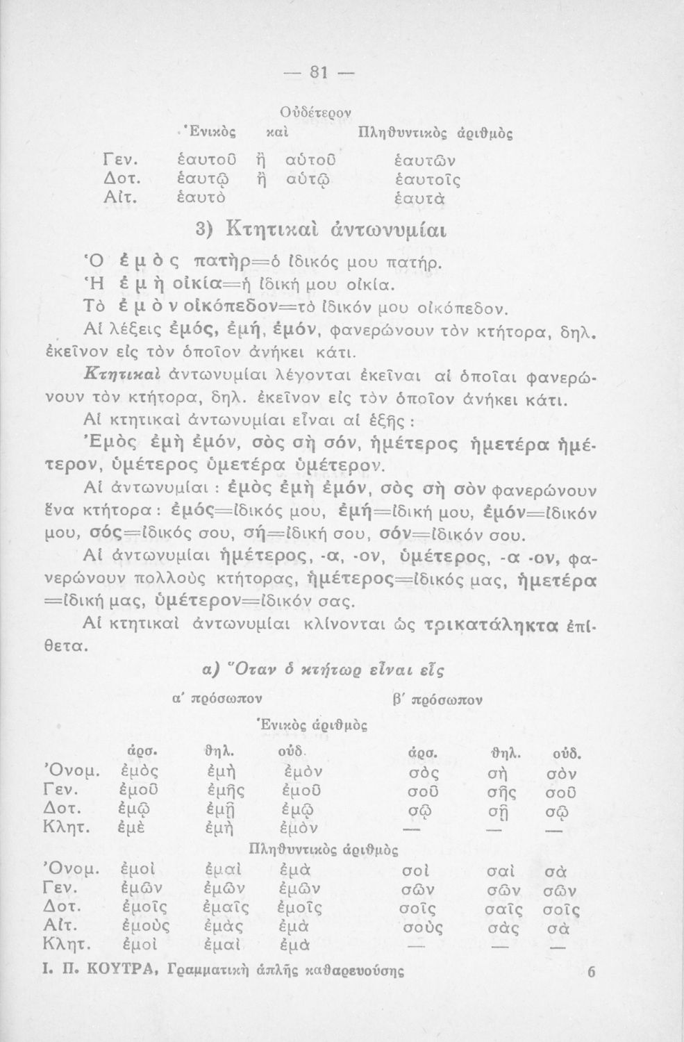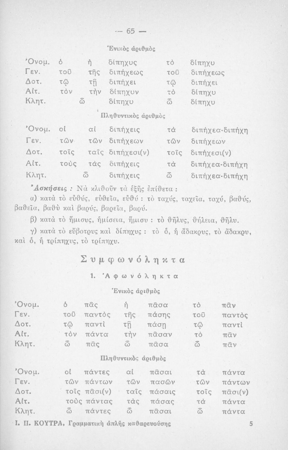 Μαθητικό βοήθημα Ε΄ και ΣΤ΄ Δημοτικού που περιέχει τη γραμματικής της απλής Καθαρεύουσας.