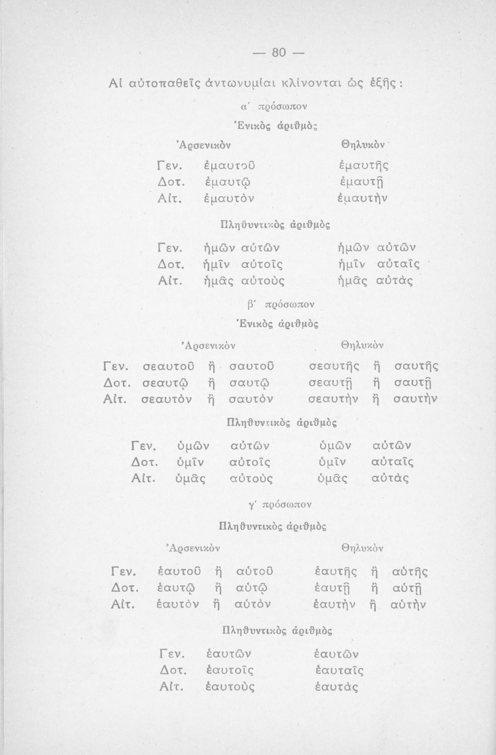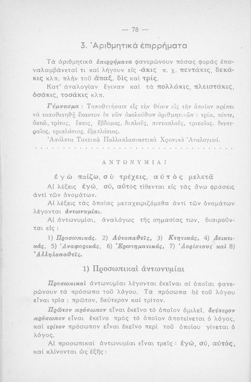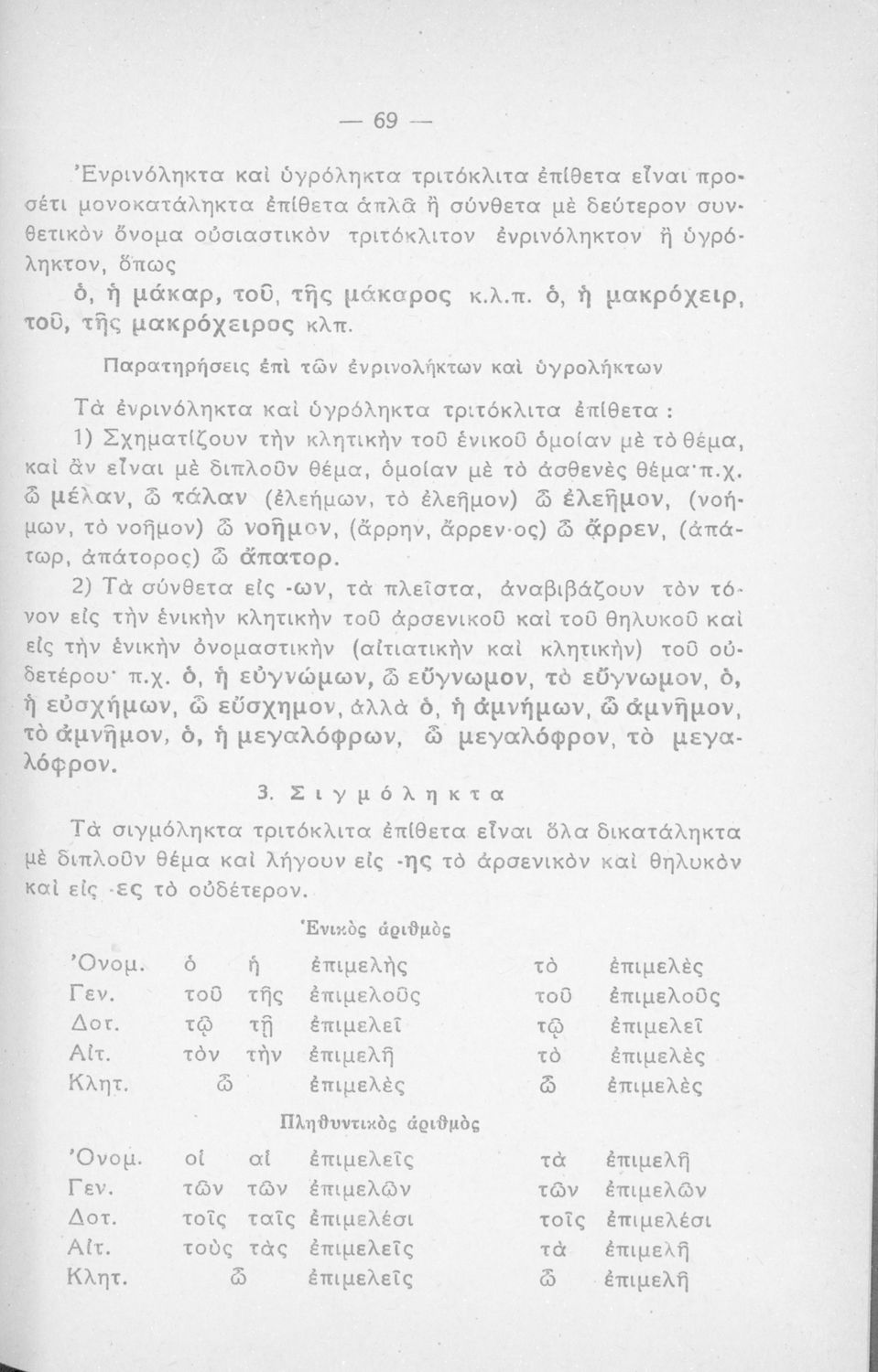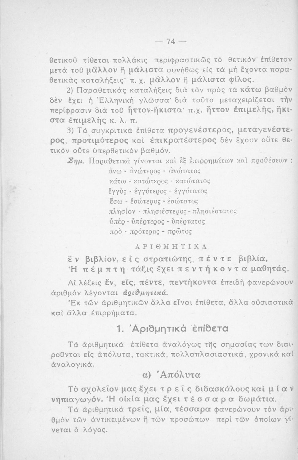 Μαθητικό βοήθημα Ε΄ και ΣΤ΄ Δημοτικού που περιέχει τη γραμματικής της απλής Καθαρεύουσας.