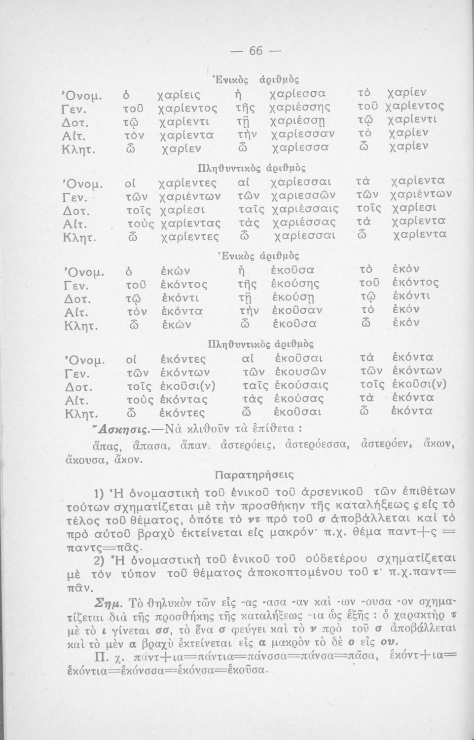 Σχετιζόμενοι όροι:  πτώσεις, ουσιαστικά, επίθετα, ρήματα