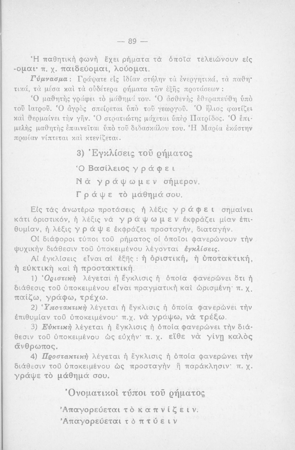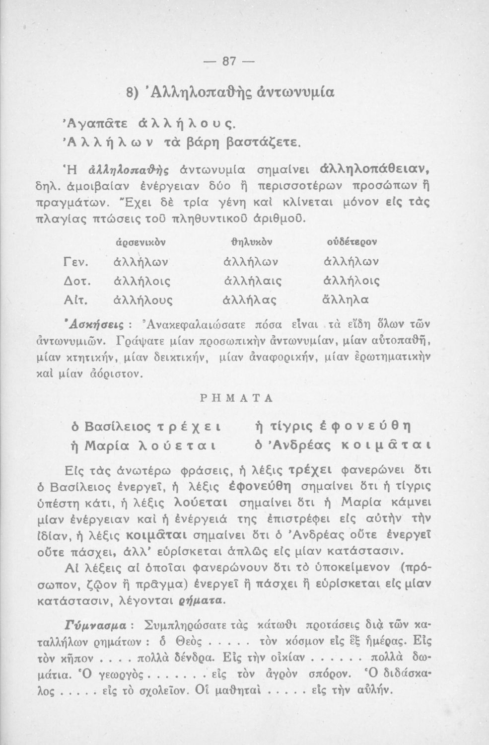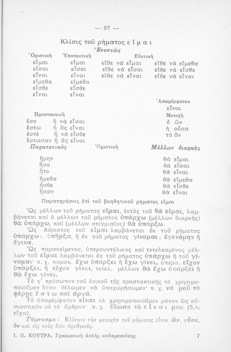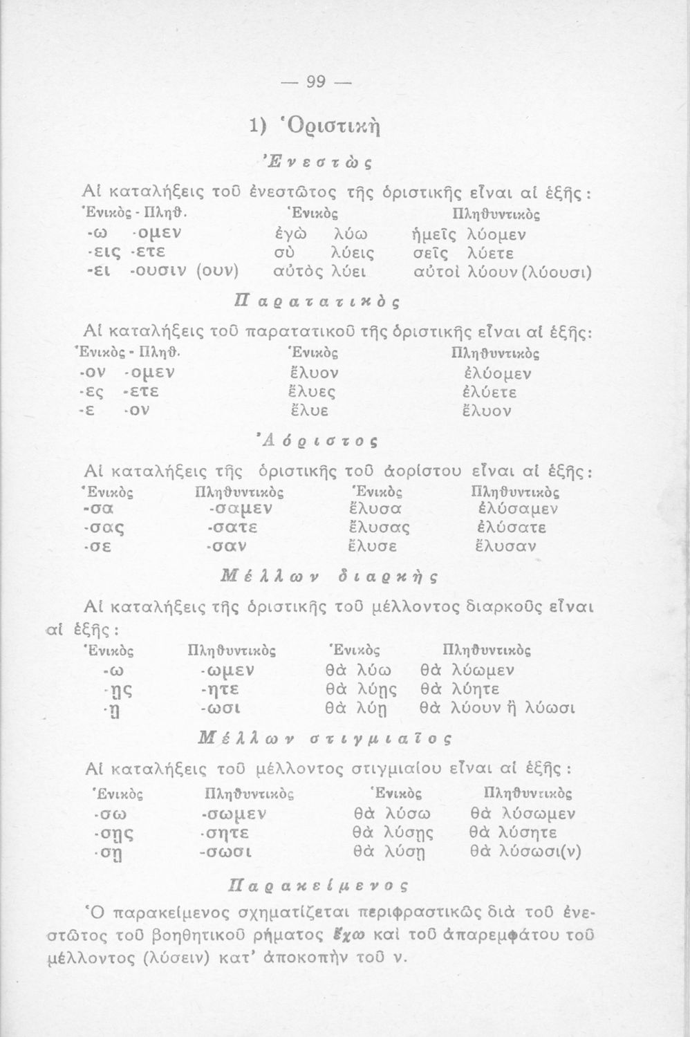 Μαθητικό βοήθημα Ε΄ και ΣΤ΄ Δημοτικού που περιέχει τη γραμματικής της απλής Καθαρεύουσας.