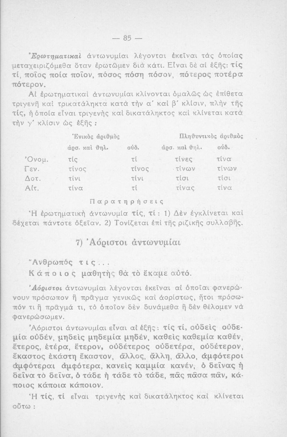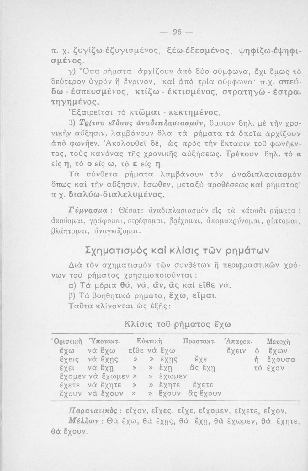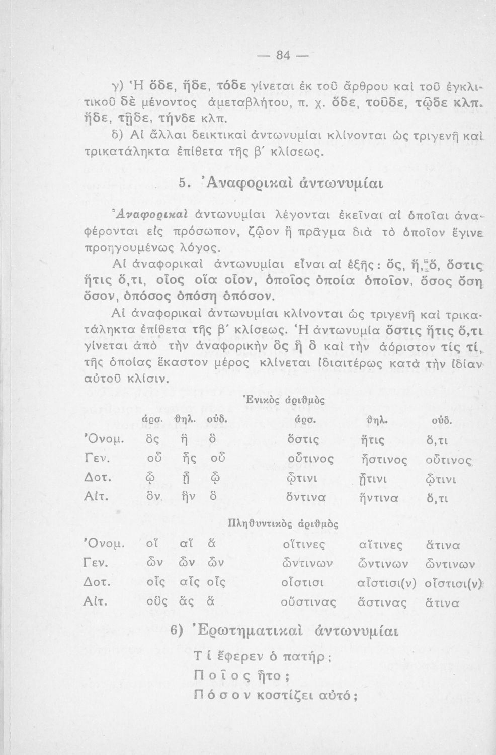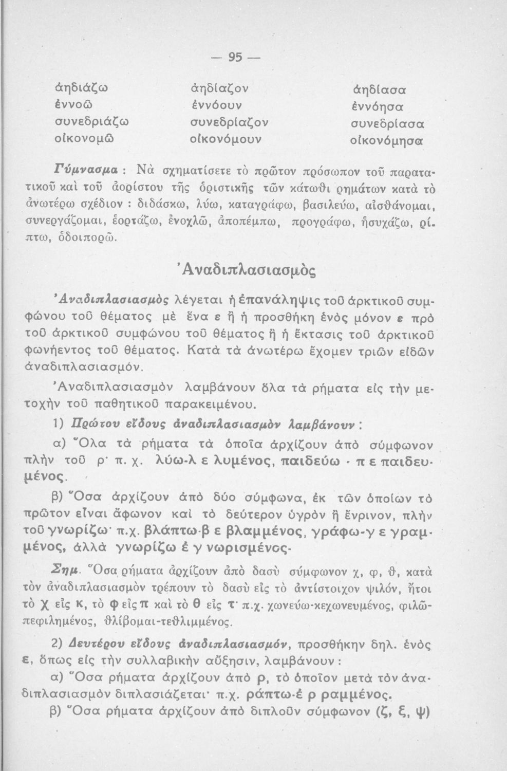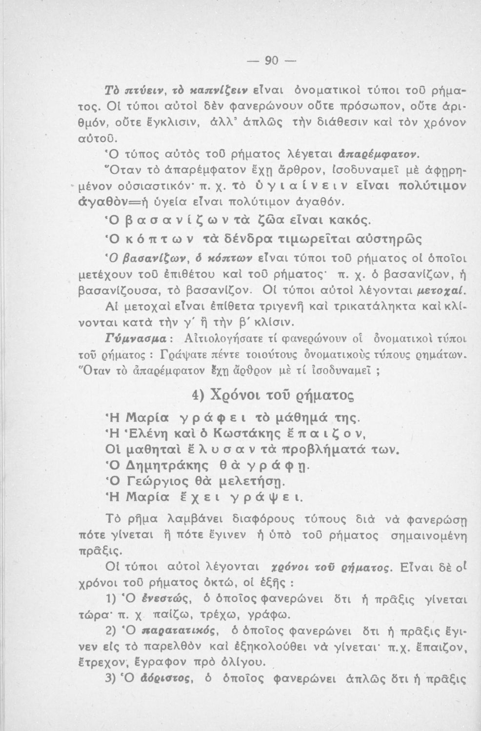 Μαθητικό βοήθημα Ε΄ και ΣΤ΄ Δημοτικού που περιέχει τη γραμματικής της απλής Καθαρεύουσας.