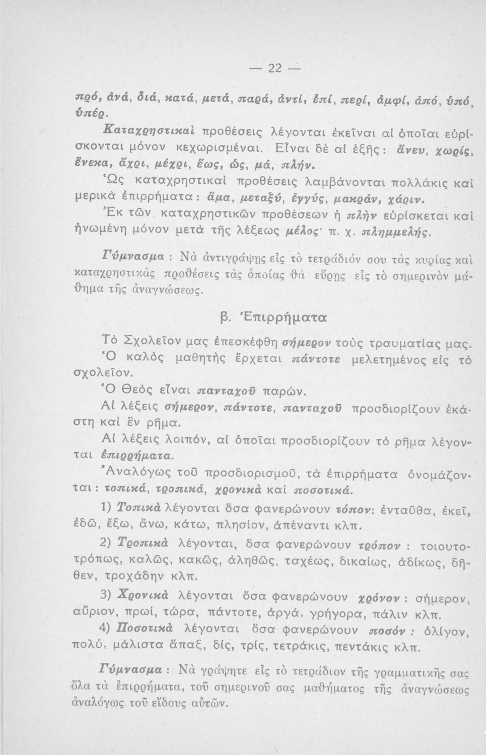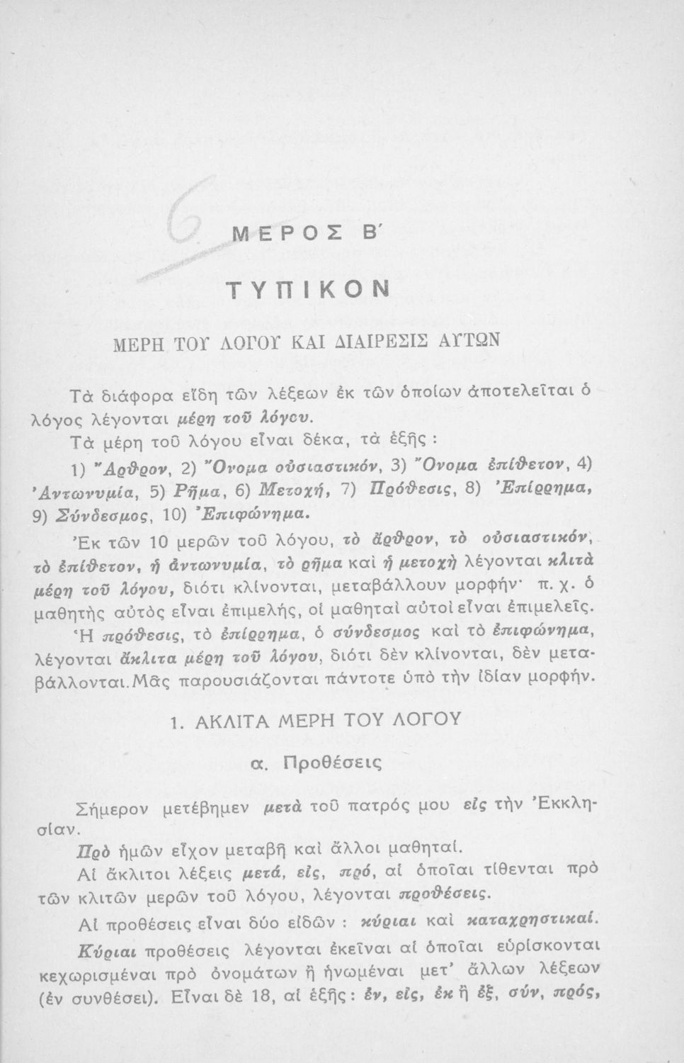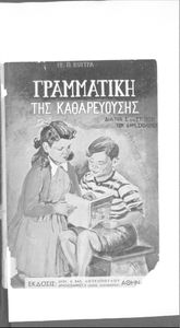 Μαθητικό βοήθημα Ε΄ και ΣΤ΄ Δημοτικού που περιέχει τη γραμματικής της απλής Καθαρεύουσας.